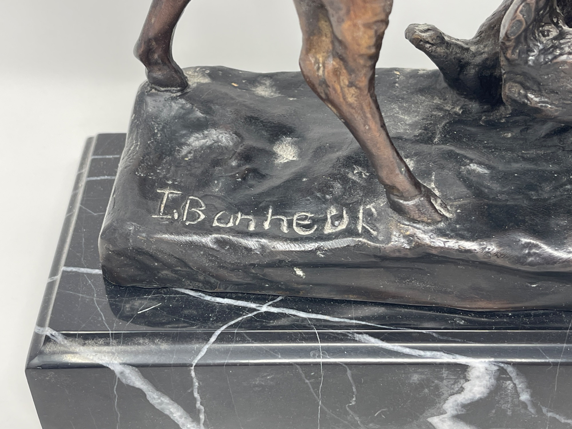 Isidore Jules Bonheur, born in 1827 in Bordeaux, France, is celebrated as one of the 19th century's most prominent animalier sculptors. Known for his precision and realism, Bonheur specialized in creating dynamic animal sculptures that capture the essence and movement of his subjects with remarkable fidelity. His works, often embodying the struggle and grace of animals, reflect a deep observation of nature and a mastery of sculptural form, making him a favored artist in both public commissions and private collections.