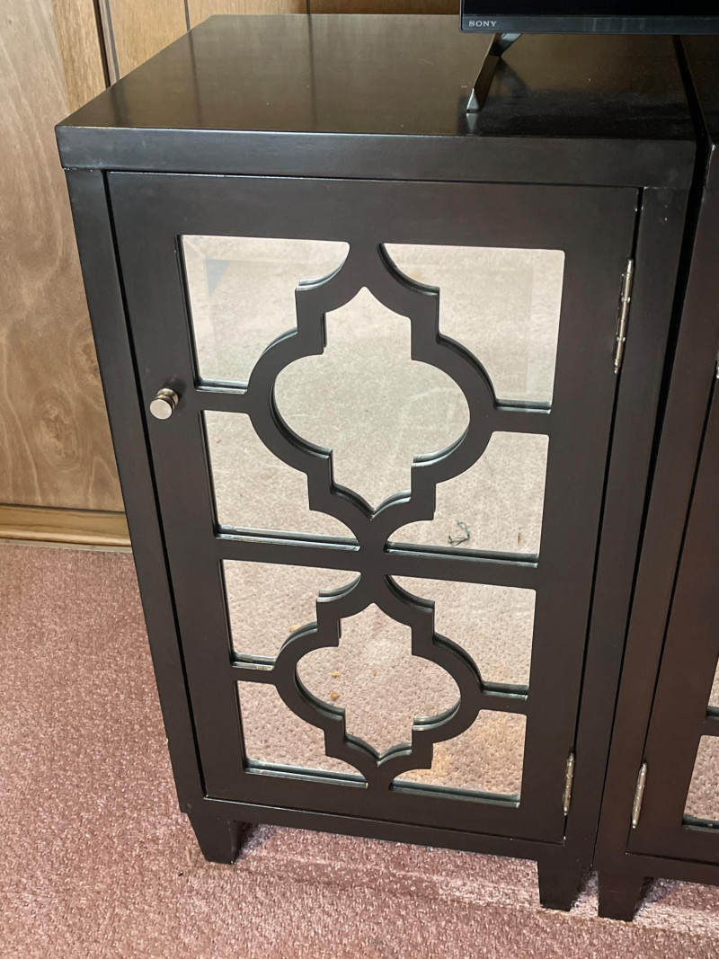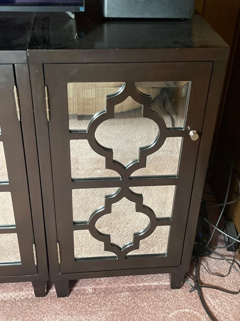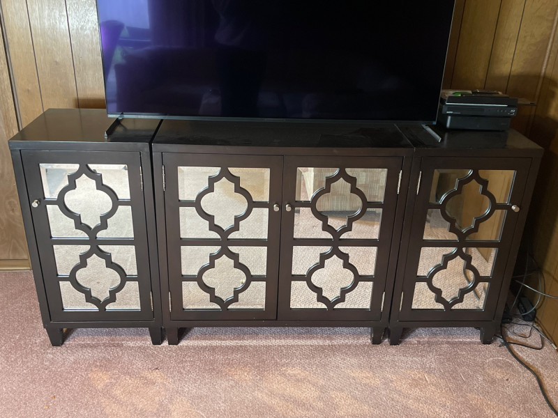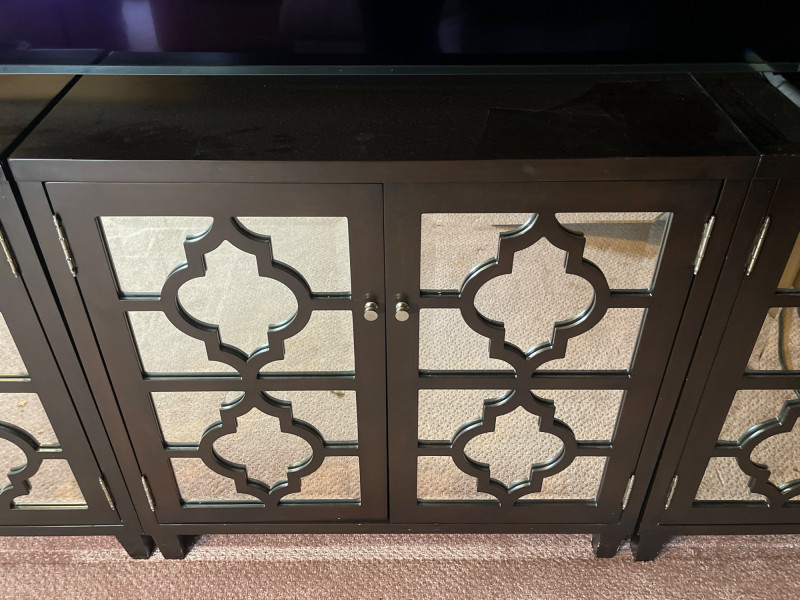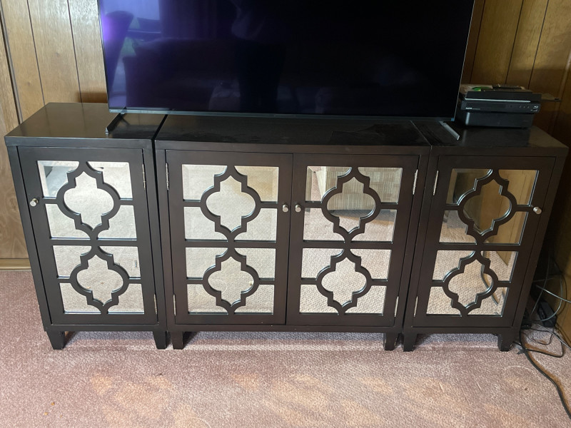 Three-Piece Mirrored Media Console with Decorative Overlay