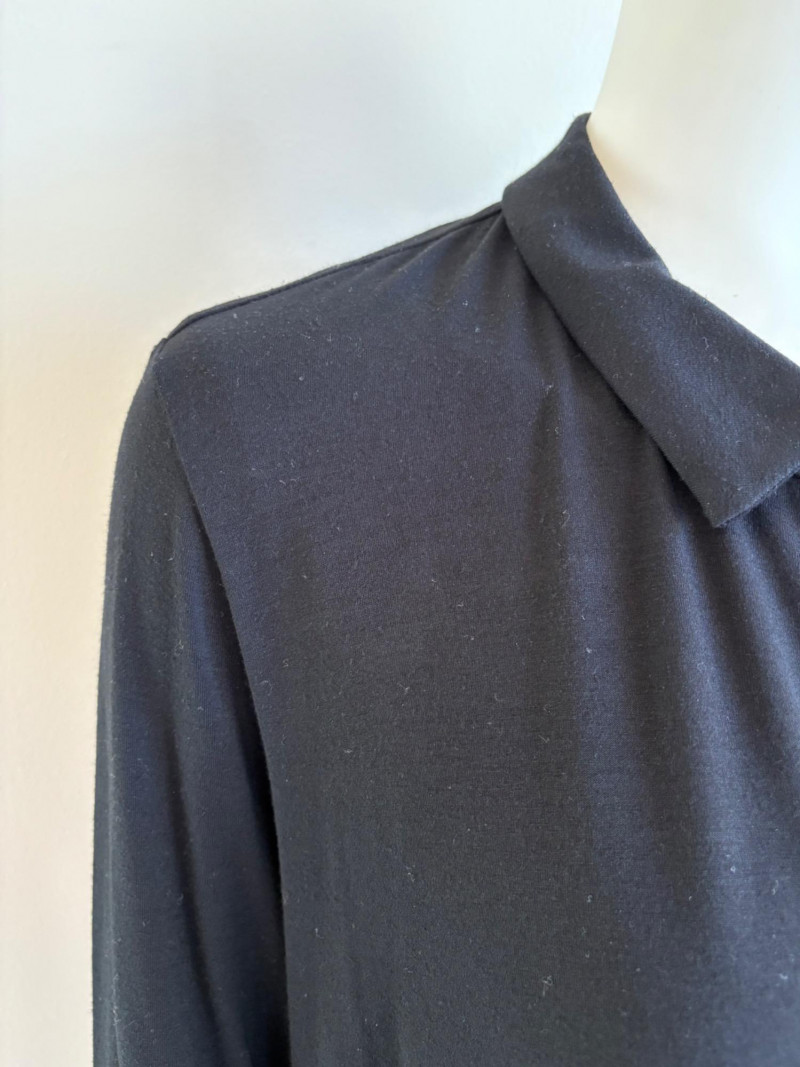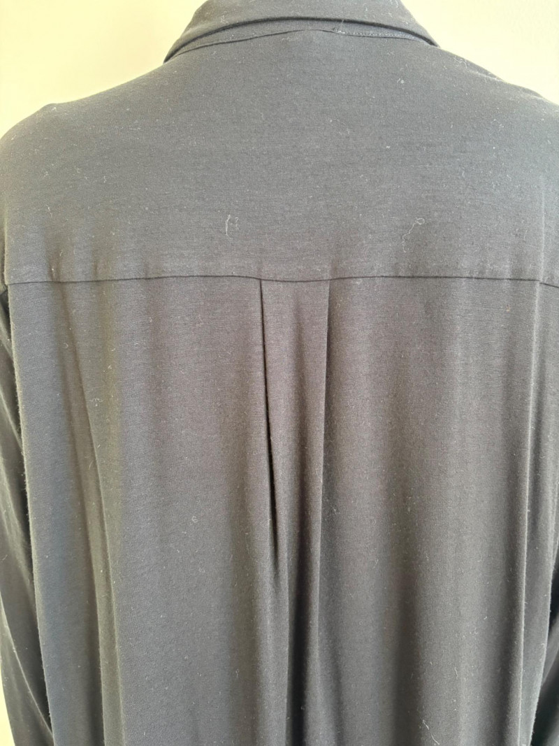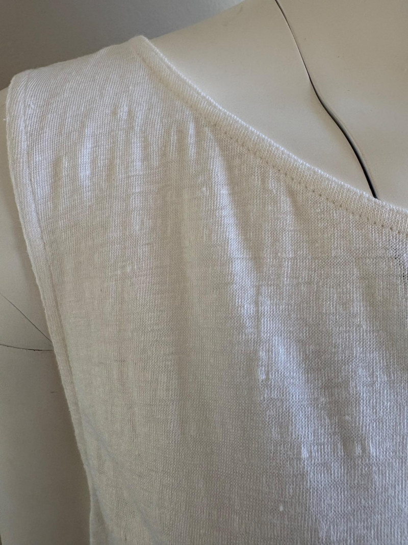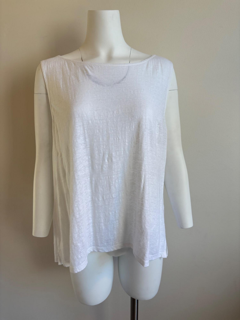 Knit tank & shirt from Eileen Fisher in basic black & white. Scoop neck white shirt has split hem and nubby soft texture. In excellent condition. 100% linen. Measures 22.5" pit to pit and 24" from back neckline to base of hemline. Size tag says XL. Black stretchy shirt/overshirt in smooth soft knit with small collar, button front closure, and back yoke with center pleat. In excellent condition. 95% Viscose with 5% spandex. Measures 22.5" pit to pit and 34" from neckline seam to bottom of back hem. Size tag says XL.