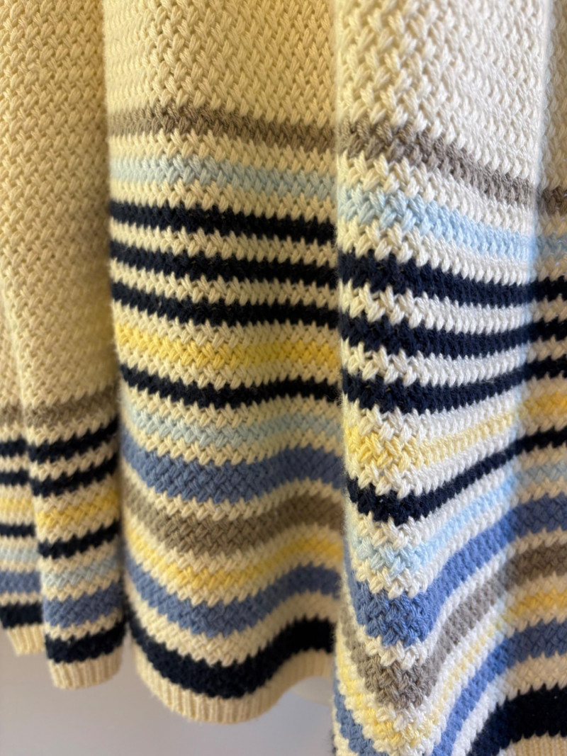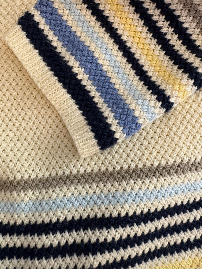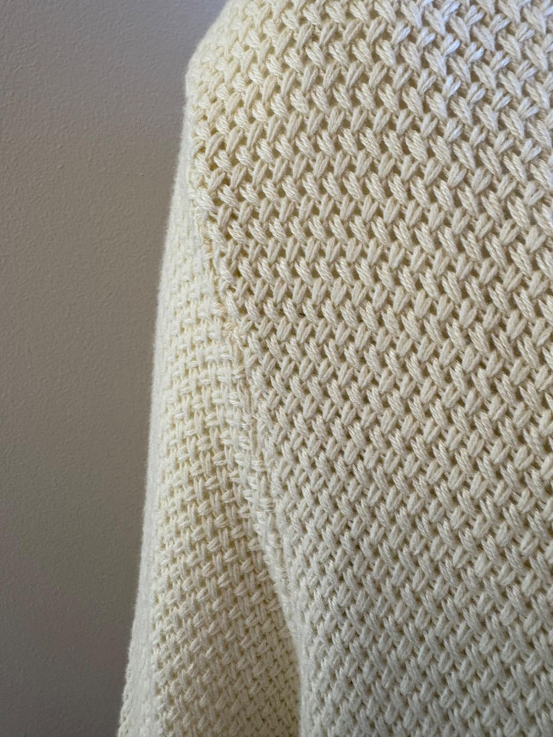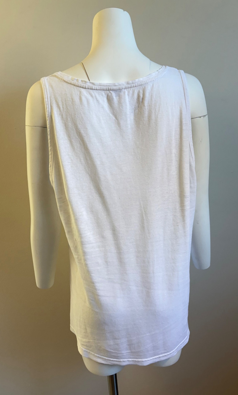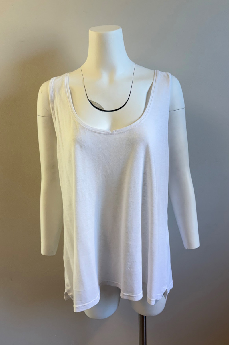 Two versatile pieces from J Jill. Pale brown shirt from J. Jill has front button closure with decorative split placket, single button cuff closures, left breast pocket, and back yoke along with split shirt hem with curves. 100% linen. In excellent condition. Measures 26" pit to pit and 28.5" from back neckline to bottom of back hem. Size tag says 2X. Open front multi-color woolen cardigan from J. Jill. with soft styling and smooth hand. Horizontal blue, beige, and yellow stripes at the waistline and cuffs. No front closure and beautiful open weave with ribbing along neckline, hem, and cuffs. 55% cotton with 25% viscose and 20% nylon. Measures 22" pit to pit and 26" from back neckline to back bottom hemline. Size tag says L. BONUS: White tank from Poetry in 55% hemp with 45% cotton. 2 pin-size small stains and tiny hole at neck; may be able to be laundered out/repaired. Measures 22.5" pit to pit and 27" from back of neck to bottom of hem. Size tag says 16.