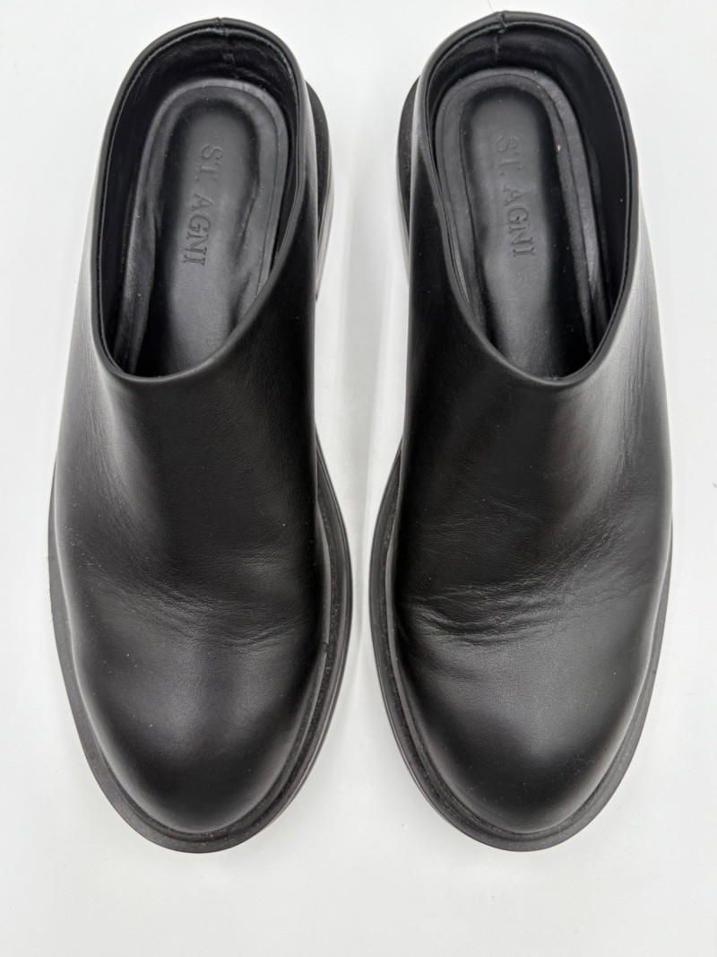 Lot # 70 - Black Leather Slides - Saint Agni