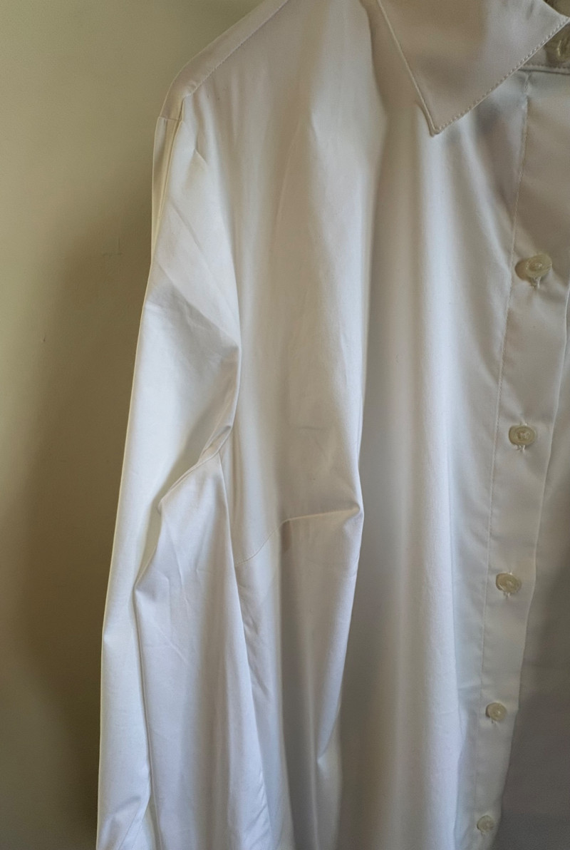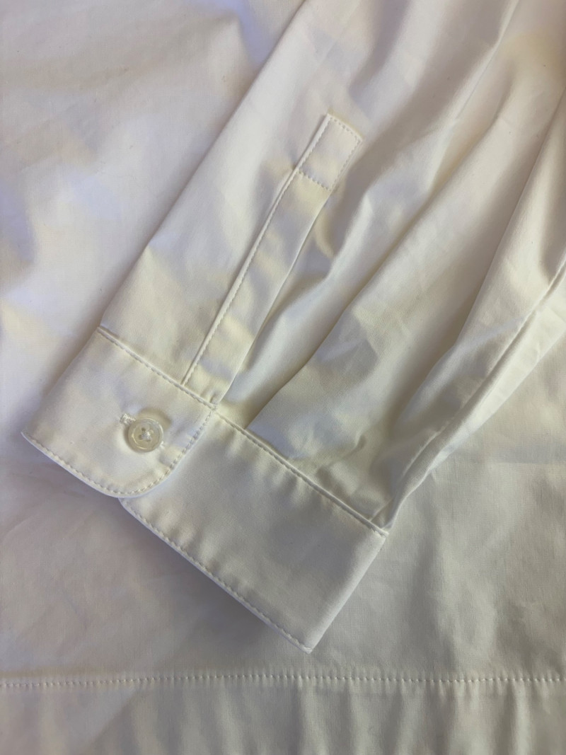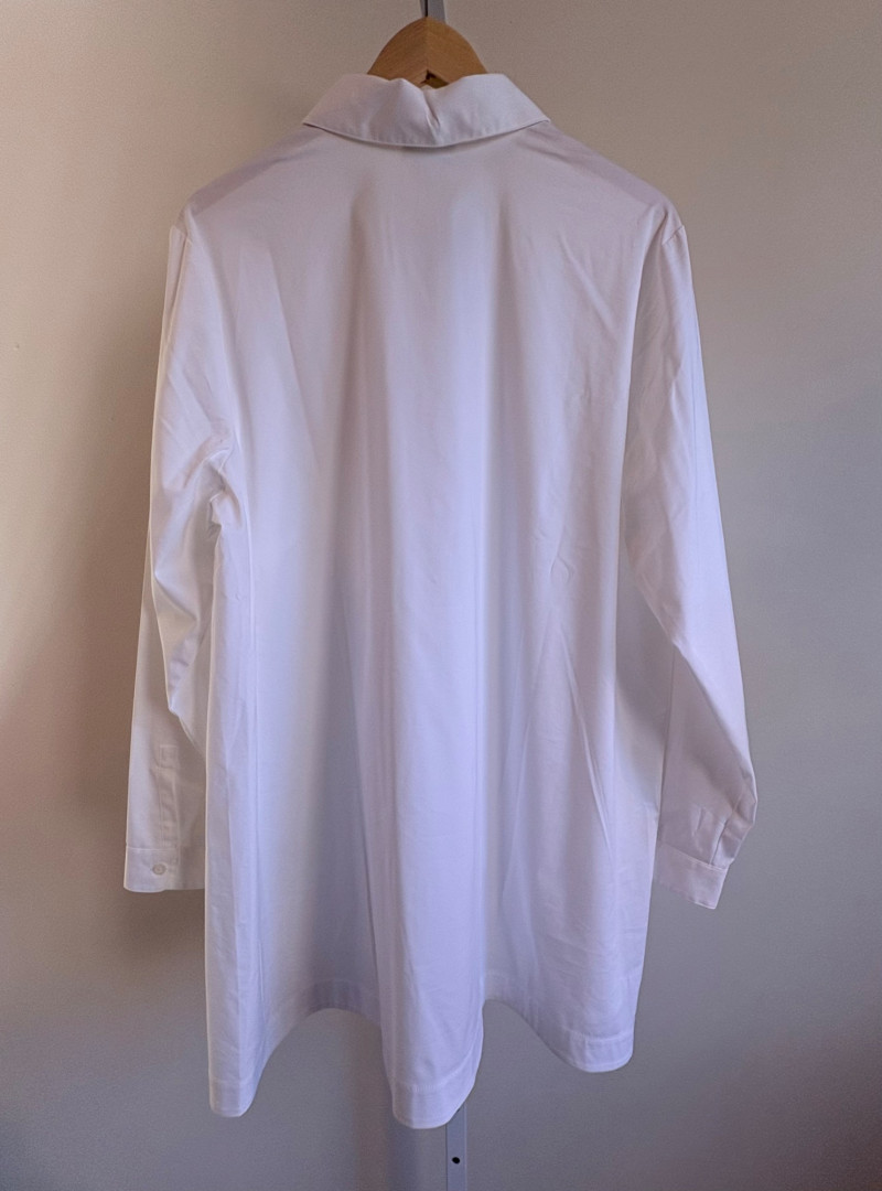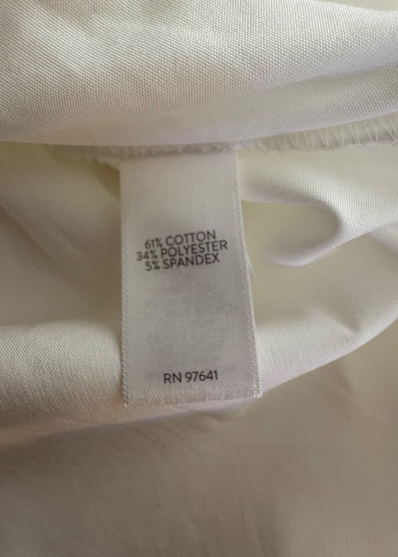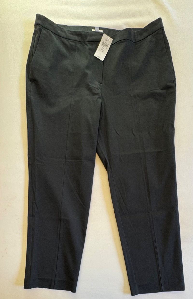 Basic pants & shirt set with subtle details from J. Jill. Both pieces are new with tag. Crisp pure white shirt from J. Jill's classic shirt collection. Shirt has front button closure, bust darts, pleated cuffs with placket and single button closure along with a finished split hem. Back hem is approx. 3" longer than front. 61% cotton with 31% polyester and 5% spandex. Measures 25.5" pit to pit and 31.5" from back neck seam to bottom of back hem. Size tag says 2X. Black pants have subtle stretch to them and a slim cut - perfect for under larger tops like this shirt or sweaters. Front zip fly closure with slides and inside button. Set-in side front pockets and flat waistband with stretch. There is seaming down center front of legs for a more tailored fit. 55% cotton with 41% rayon and 4% spandex. Measures 19.5" side to side at waist with 27" inseam. Size tag says 18.