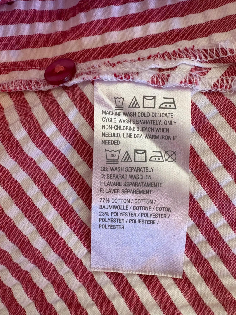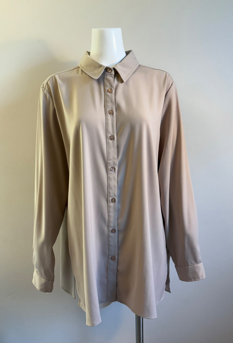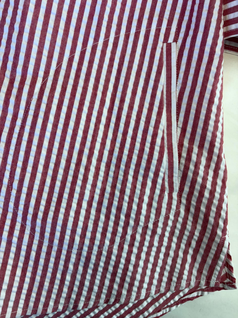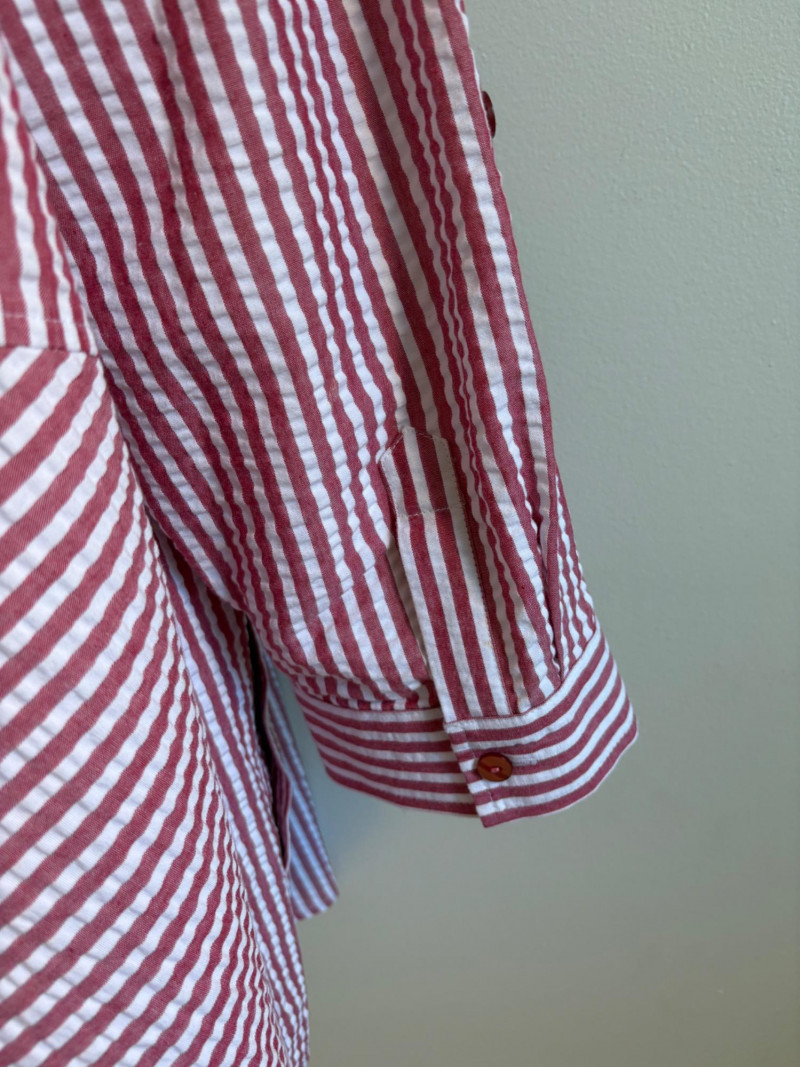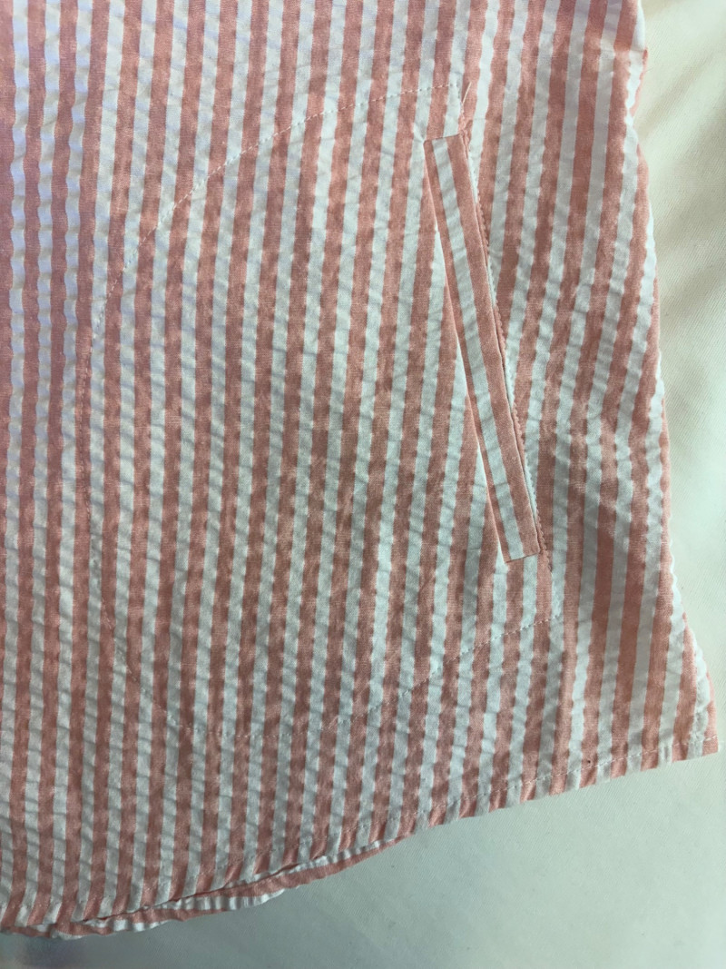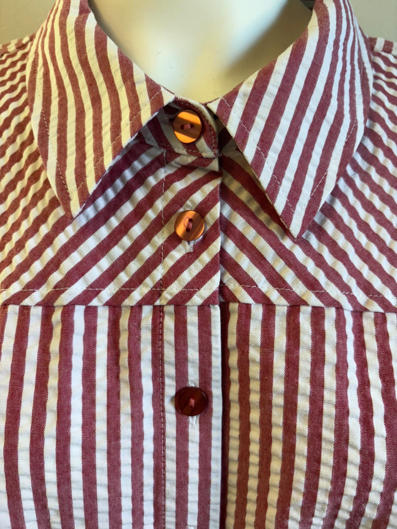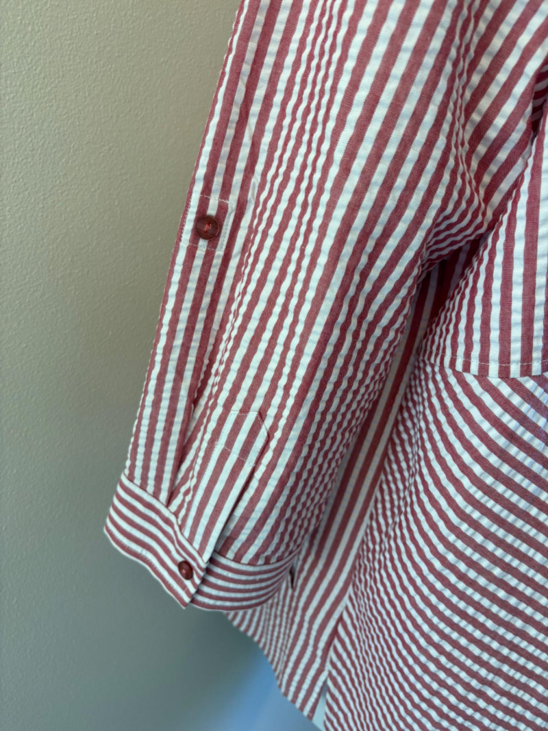 4 shirts with some great features/colors from Joan Rivers & Susan Graver. 2 striped seersucker shirts/shirt jackets from Joan Rivers - one in red & white stripe, the other in pink & white stripe. Both have button front closure, single button closure cuffs with plackets, curved hem, lower back button closure, and in-seam pockets at the hips. 77% cotton with 23% polyester. Both in excellent condition. Measure 25" pit to pit and 31" from center back neckline to back bottom hem. Size tags say XL. Black & gold checked flannel shirt from Joan Rivers has front button closure, pieced shoulder sections, single button closure on banded cuffs, and in-seam pockets at the hips. 100% cotton. Measures 25" pit to pit and 28" from back neckline to back bottom hem. Size tag says XL. Pinkish-beige solid shirt from Susan Graver hangs beautifully. Shirt has front button closure, 2-button cuff closure with placket & pleats, and split hem. In excellent condition. 97% polyester and 3% spandex. Measures 25" pit to pit and 29.5" from center back neckline to back hemline. Size tag says XL.