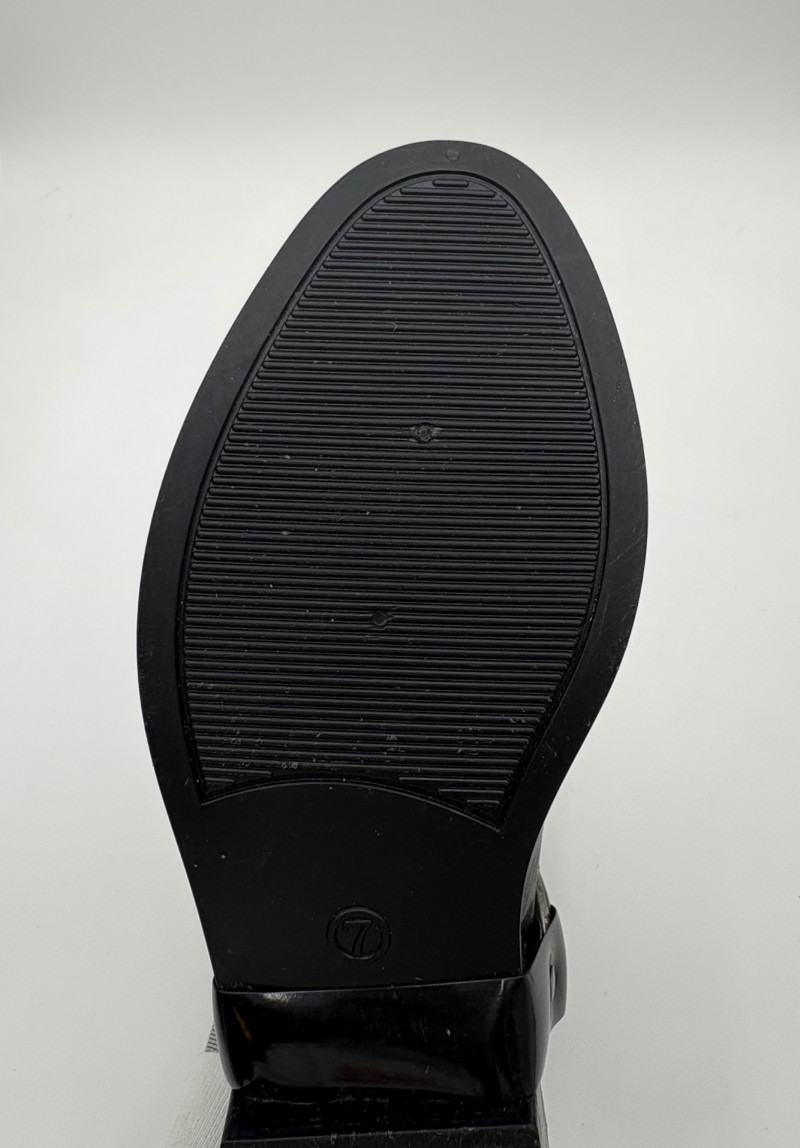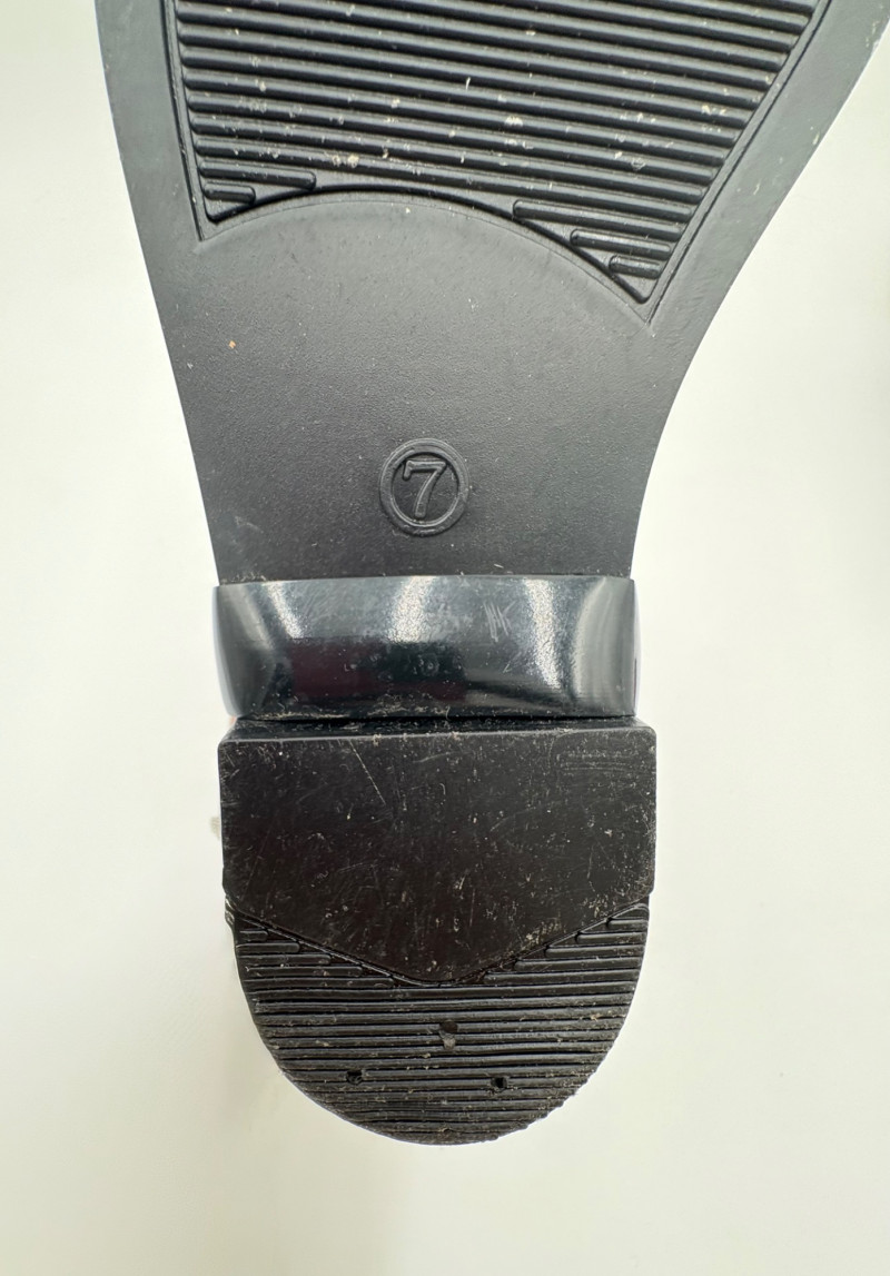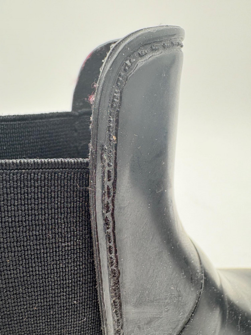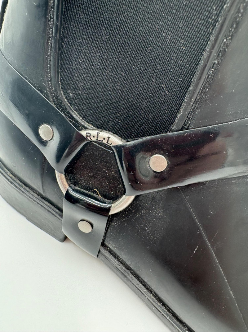Great pair of rubber rainboots from Ralph Lauren. Silver hardware, "engineer boot" detailing (also in rubber), and elasticated gussets on both inner and outer ankle. In excellent condition - show very little signs of use. Size 7