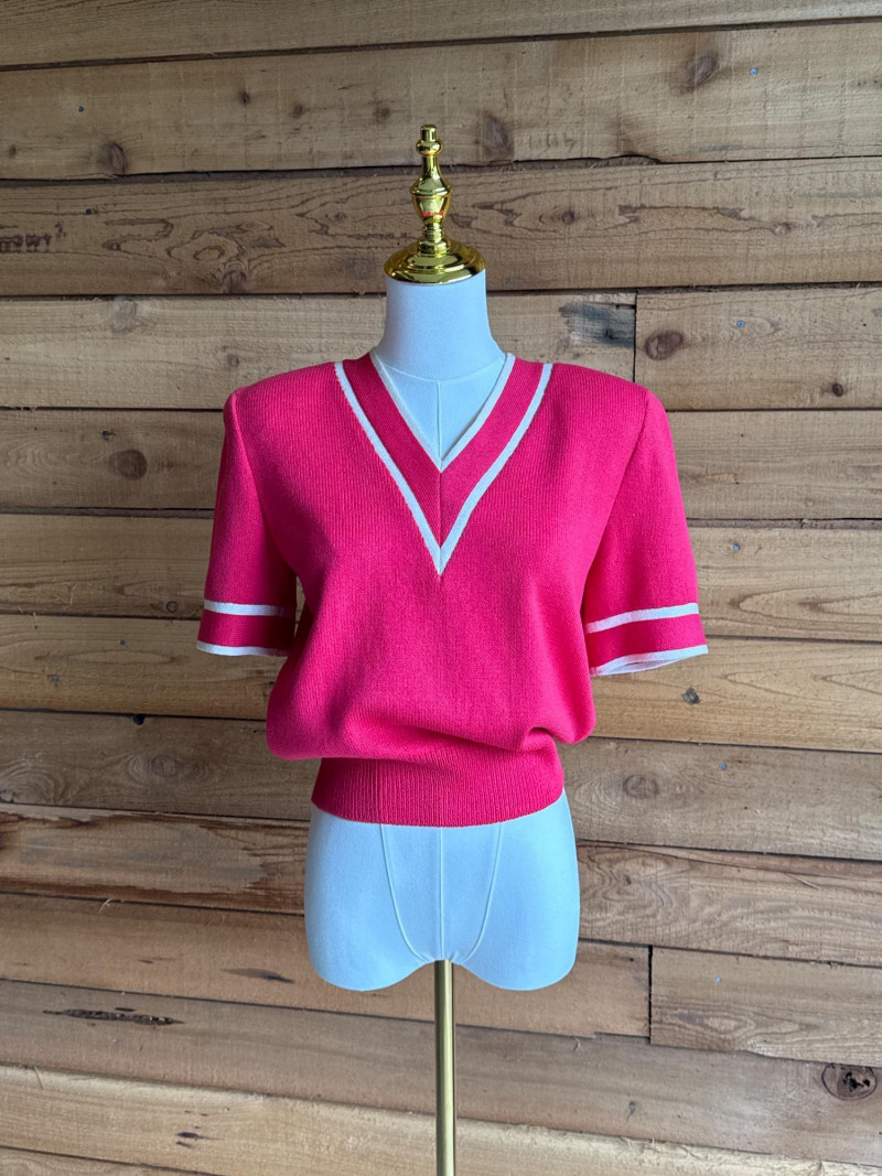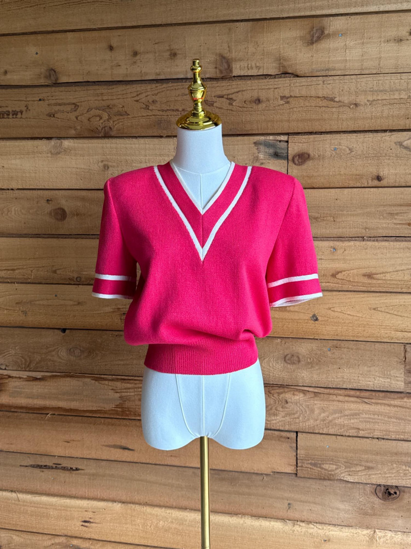ST JOHN by Marie Gray Vintage Bright Pink Sweater- Sz Small *Please note in wonderful vintage condition, exception faint spot in the back of the sweater.