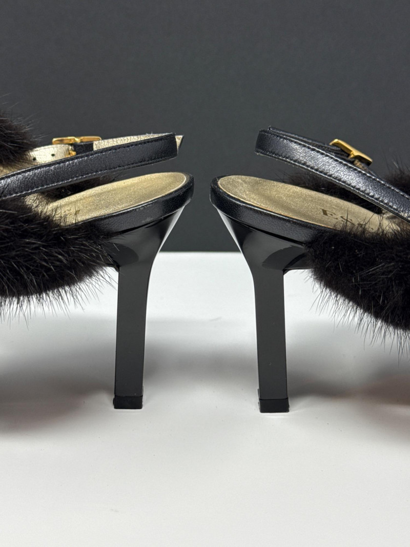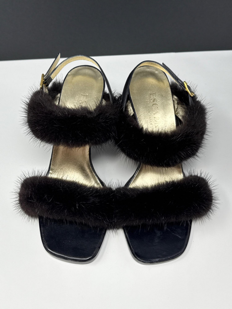 ESCADA Black Fur Heels *Excellent Condition- Sz 7.5 Matching bag in next lot!