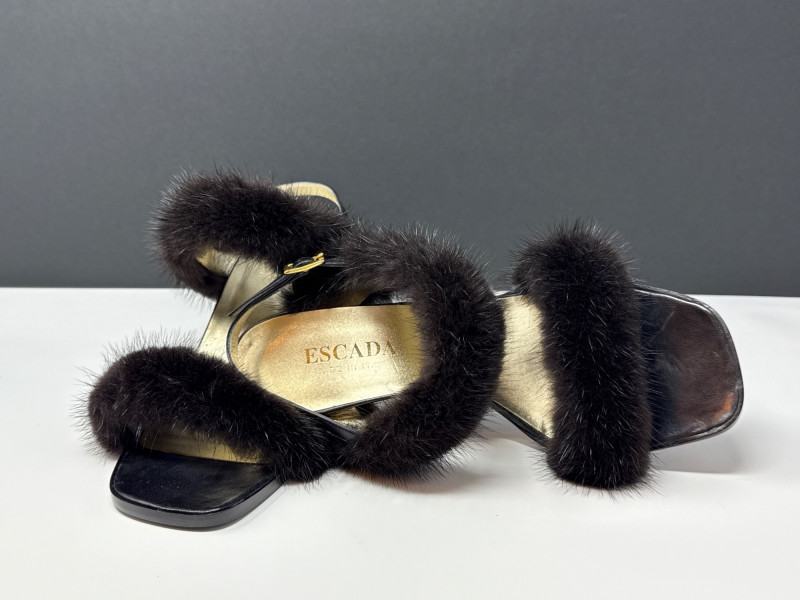 Lot # 7 - ESCADA Black Fur Heels *Excellent Condition- Sz 7.5