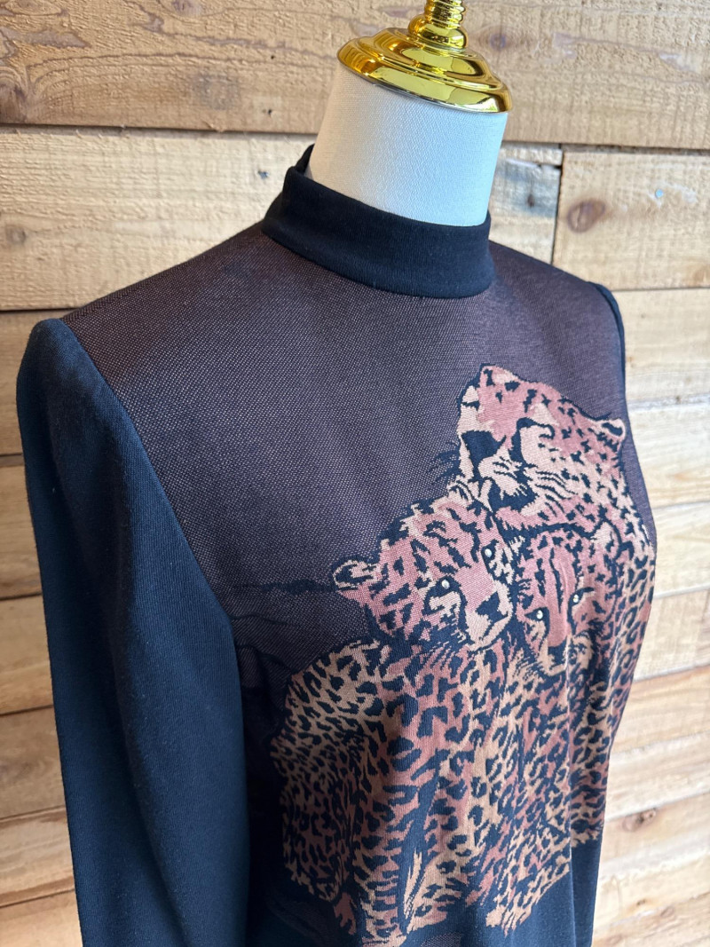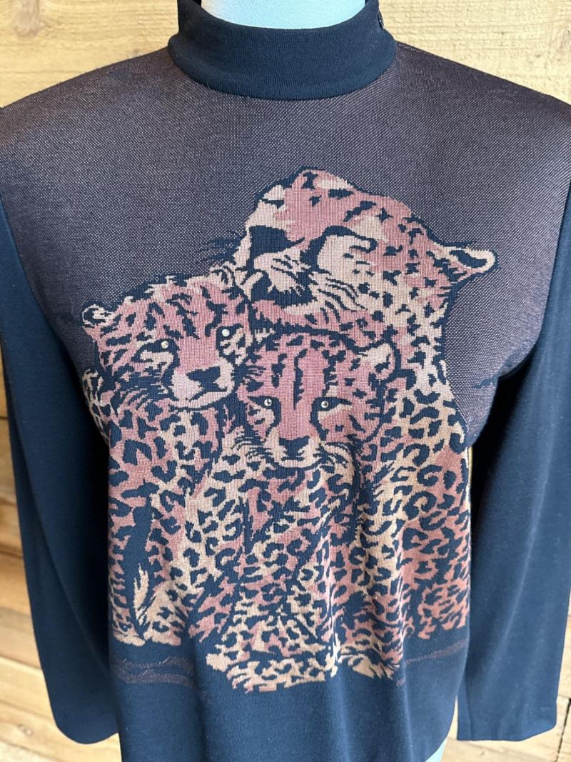 ST JOHN by Marie Gray Cheetah Mock Neck Sweater- Sz P