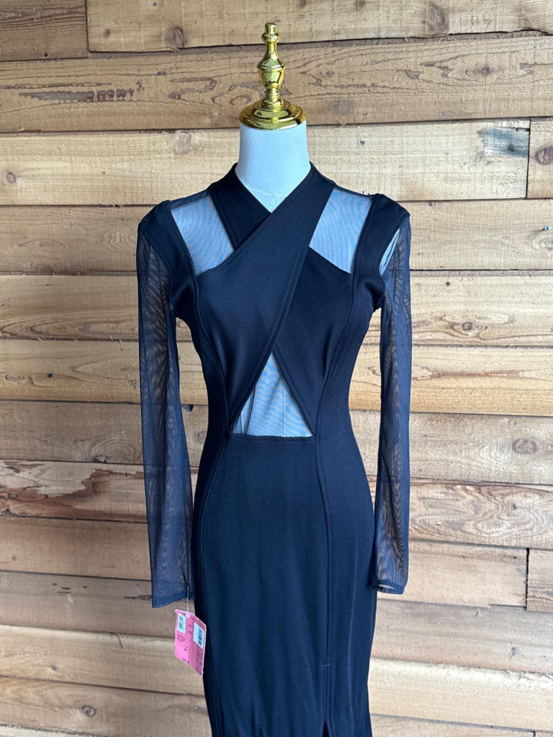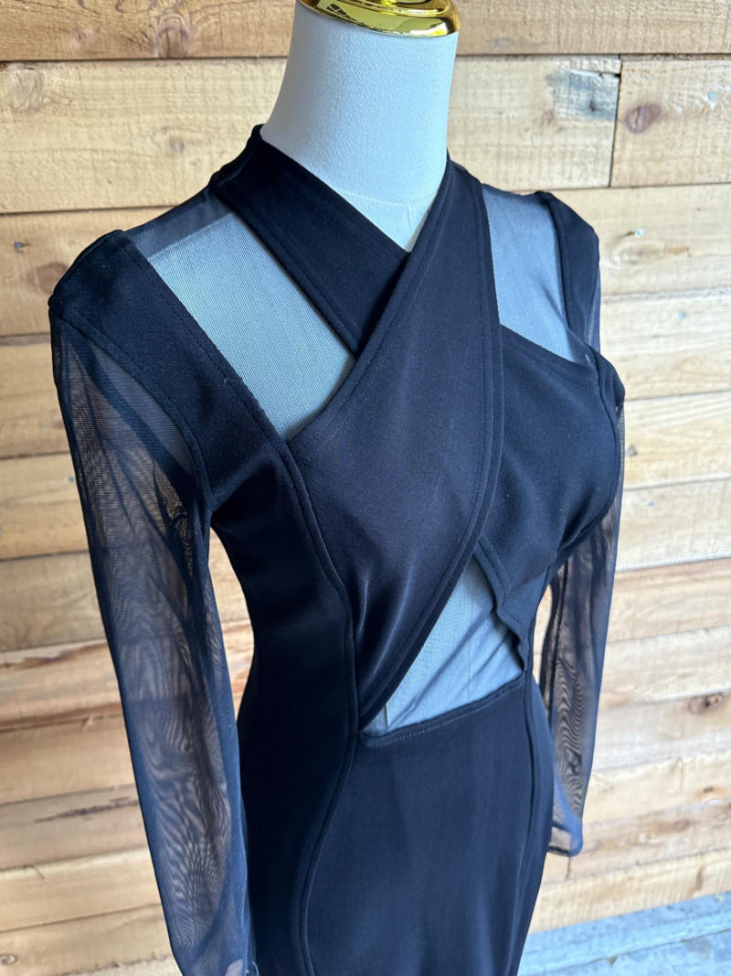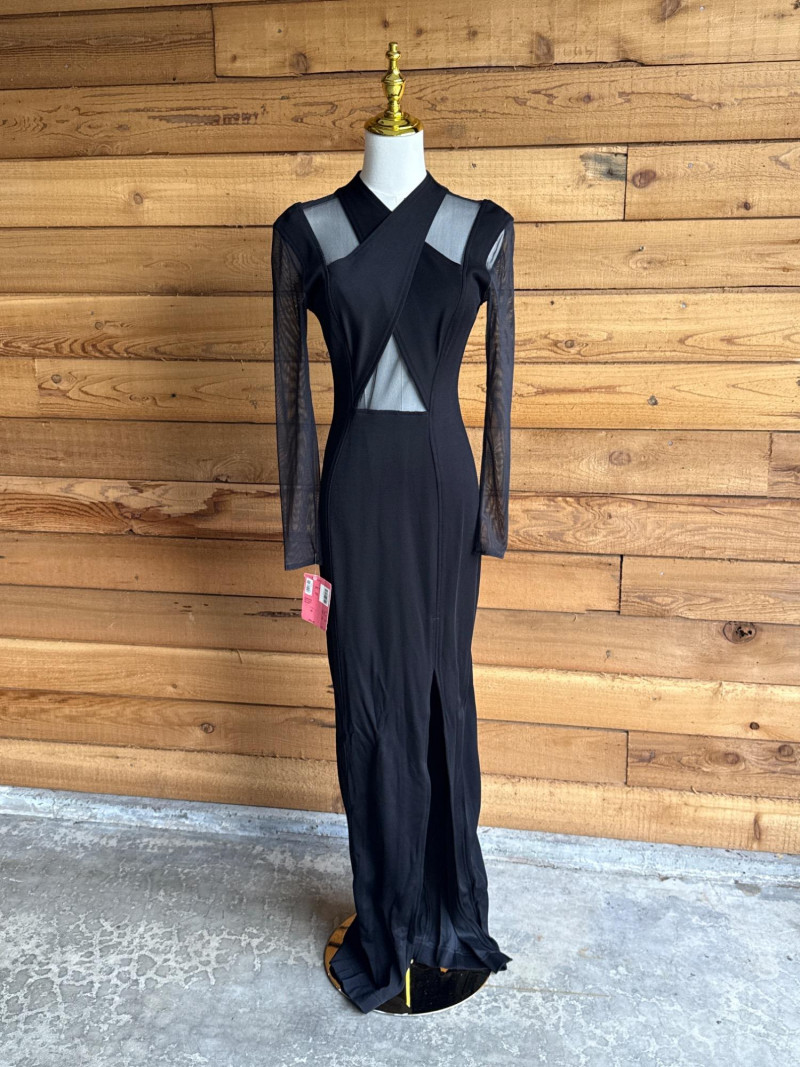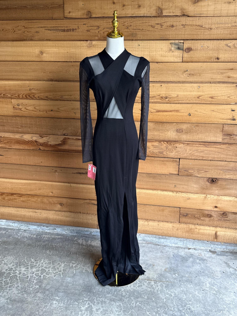 Lot # 12 - TADASHI 1990's Long Black Dress w/ Sheer Accents *NWT $278- Sz XS