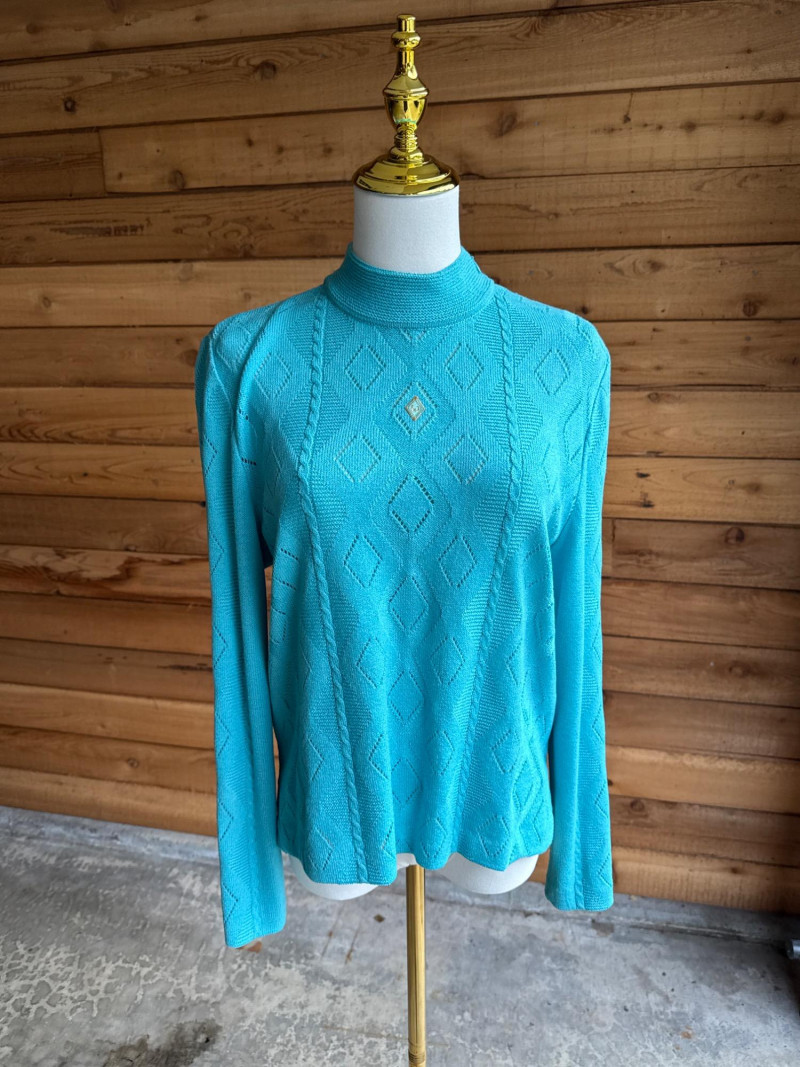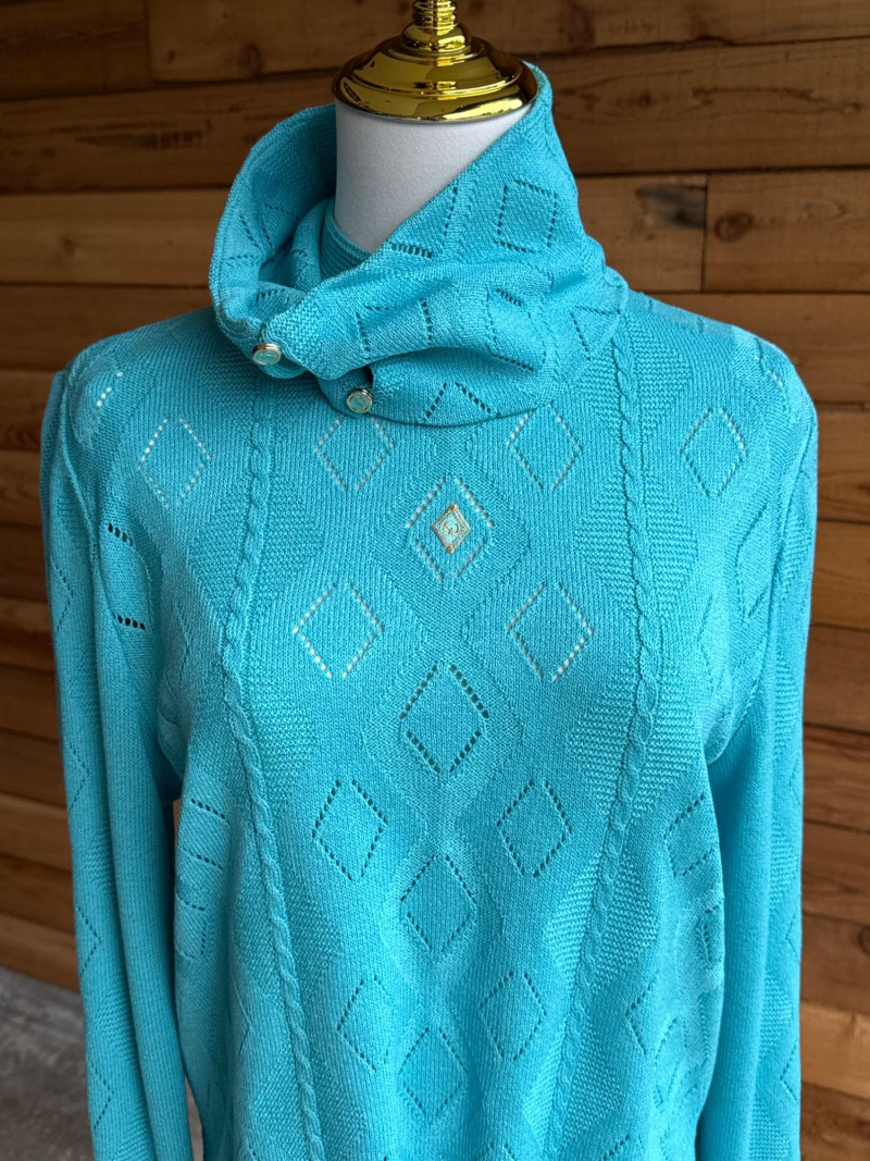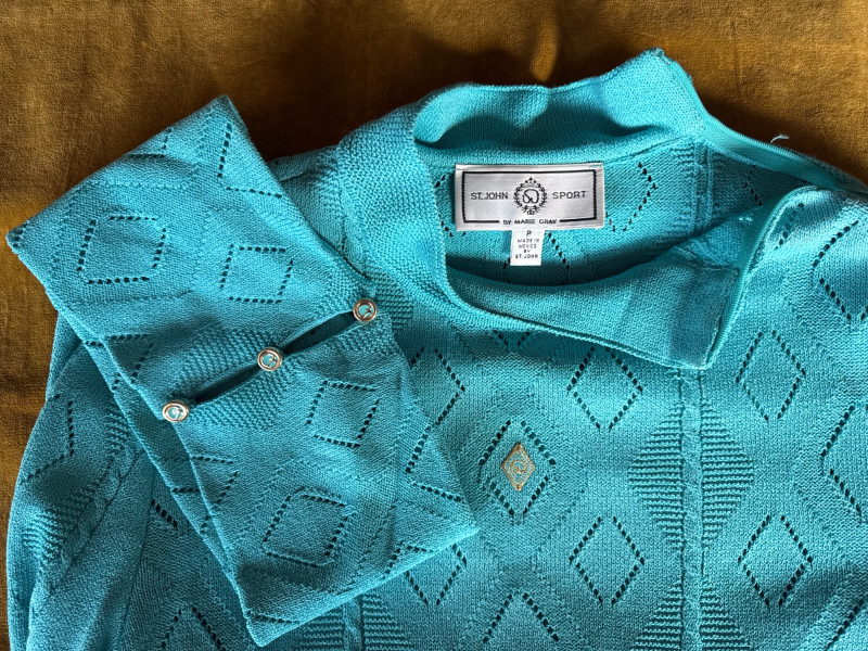 ST JOHN Sport Aqua Knit Sweater & Headband Duo- Sz P