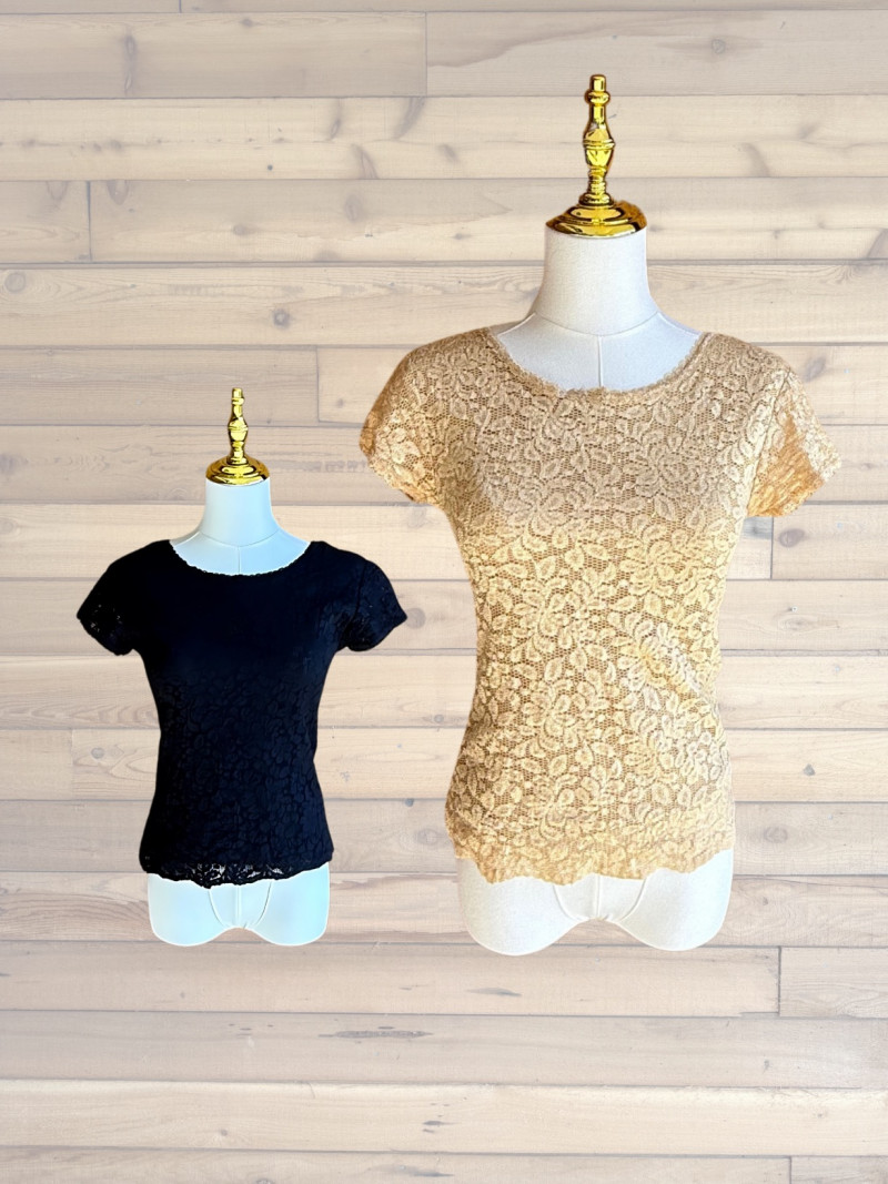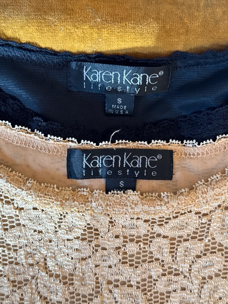 Lot # 26 - KAREN KANE Black & Gold Stretch Lace Tops - Sz S