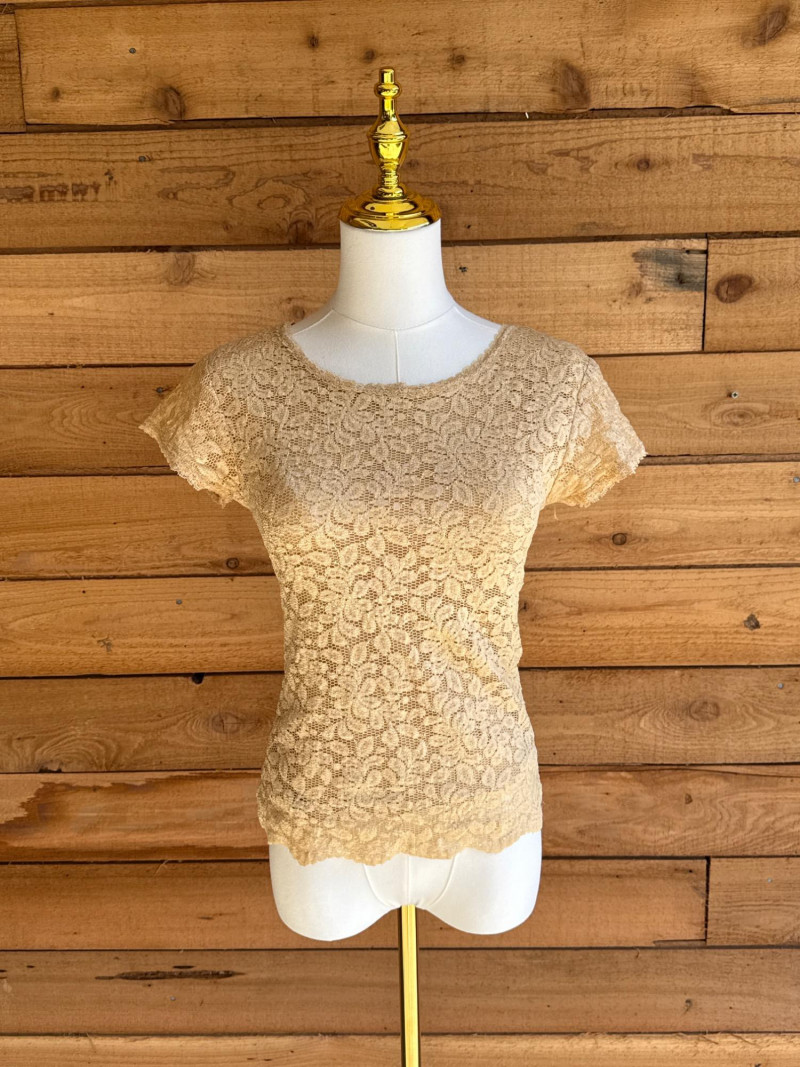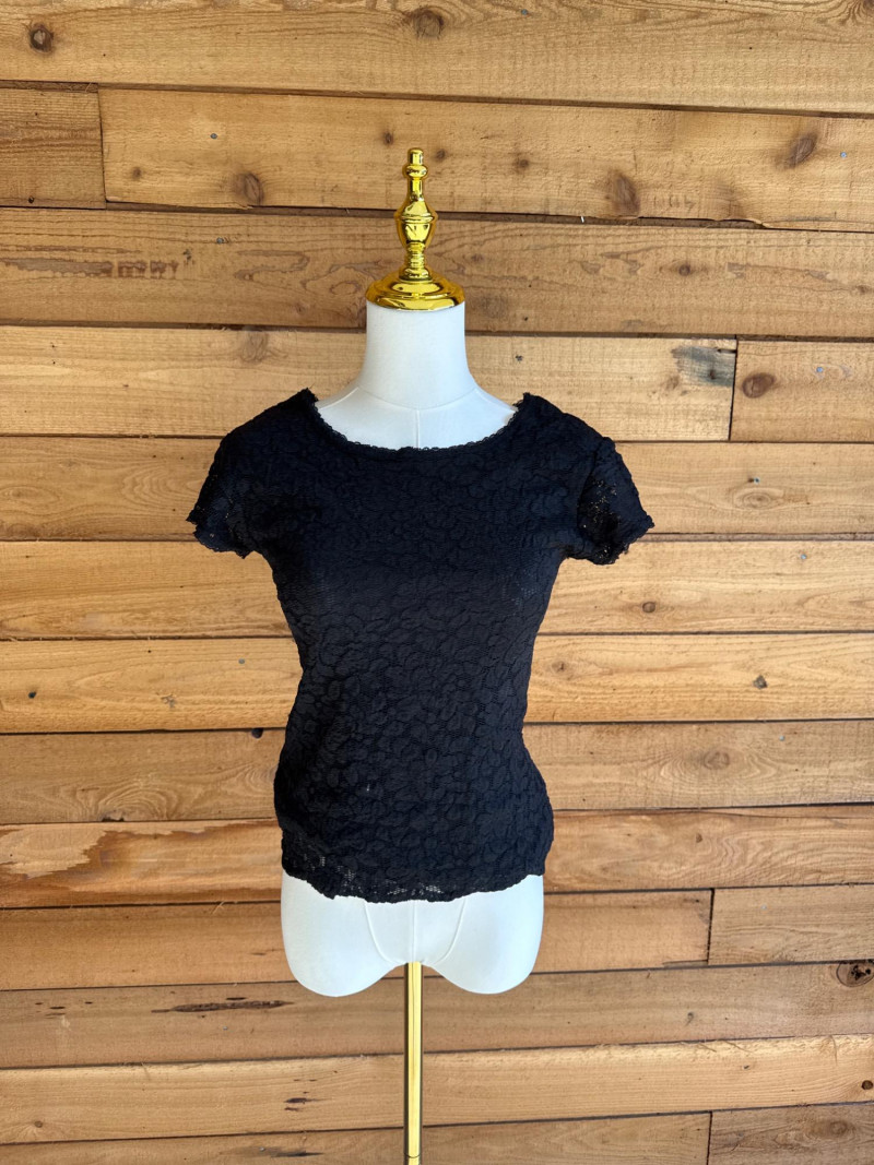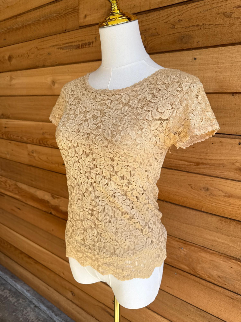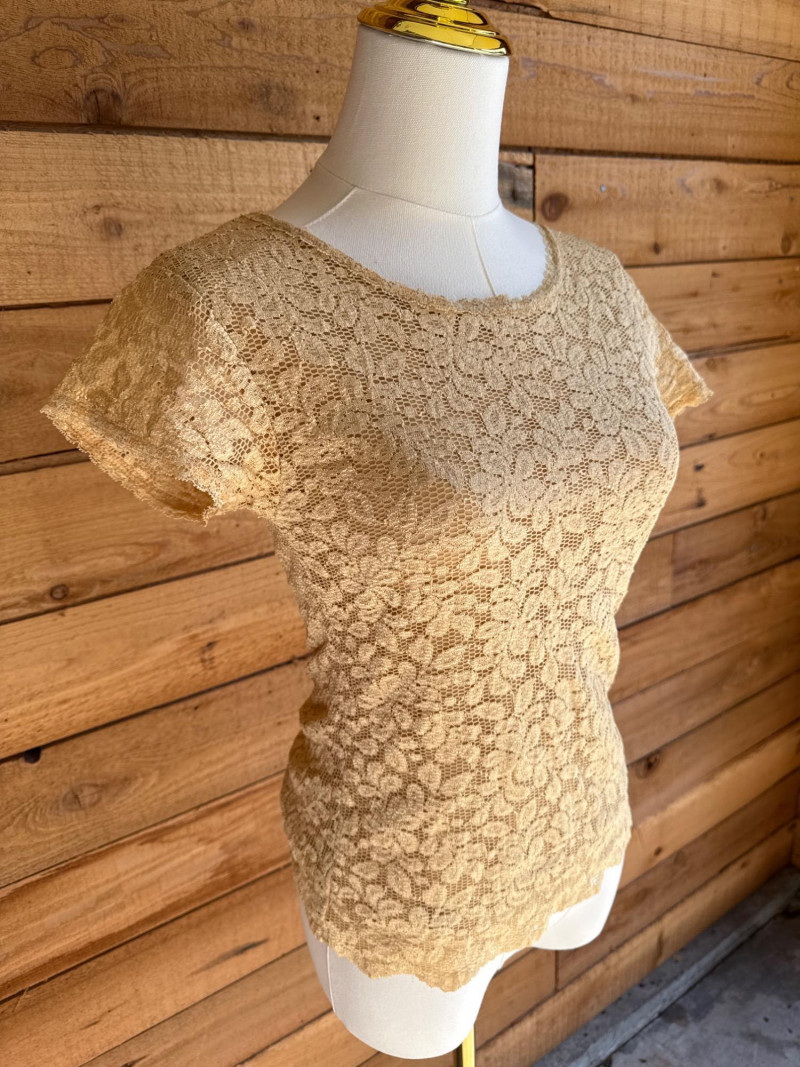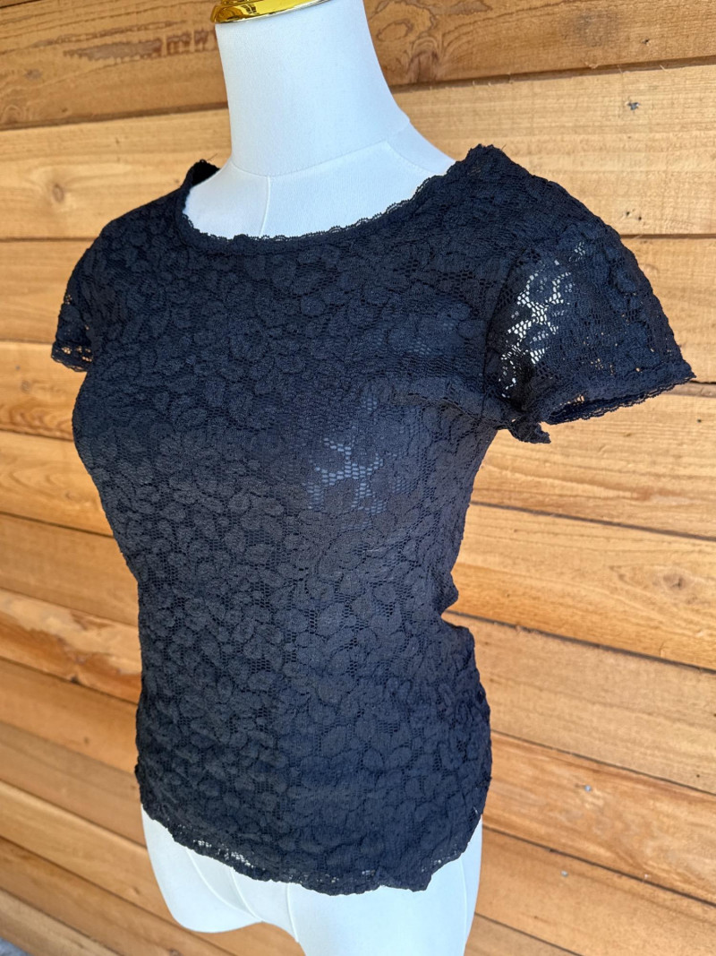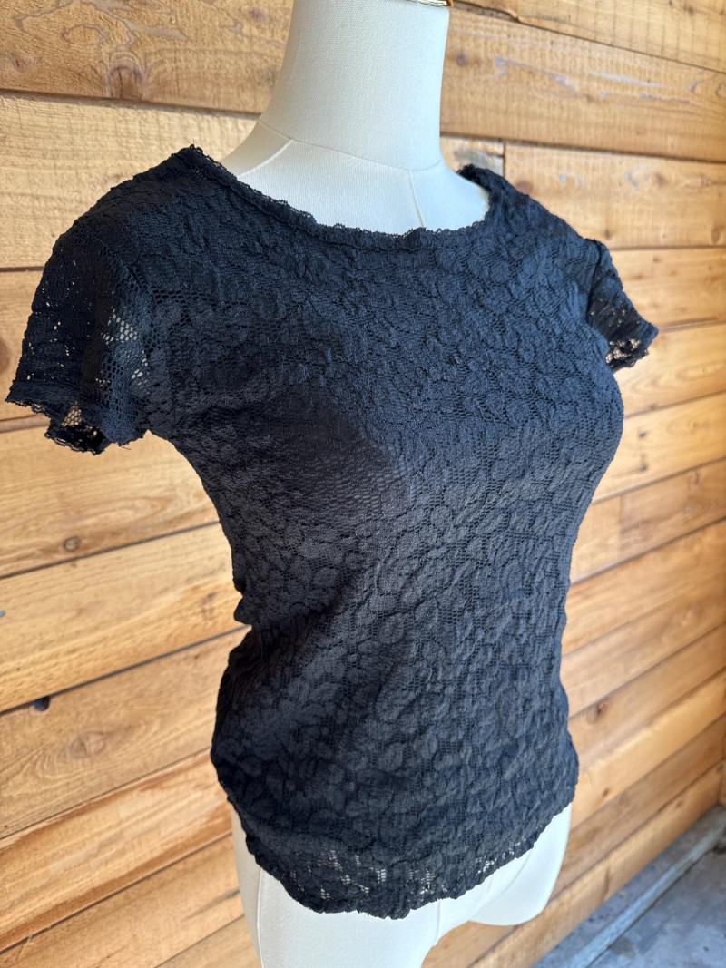 KAREN KANE Black & Gold Stretch Lace Tops - Sz S