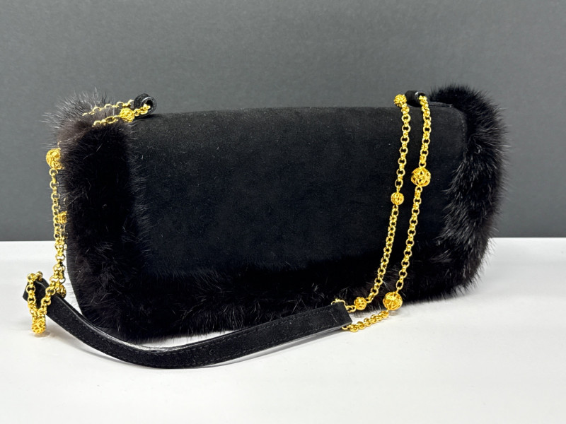 ESCADA Black Suede & Fur Handbag Matching Heels (sz 7.5) in lot #7!