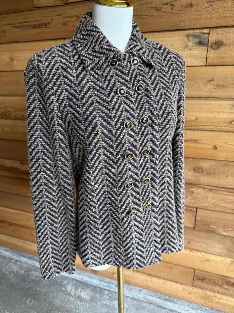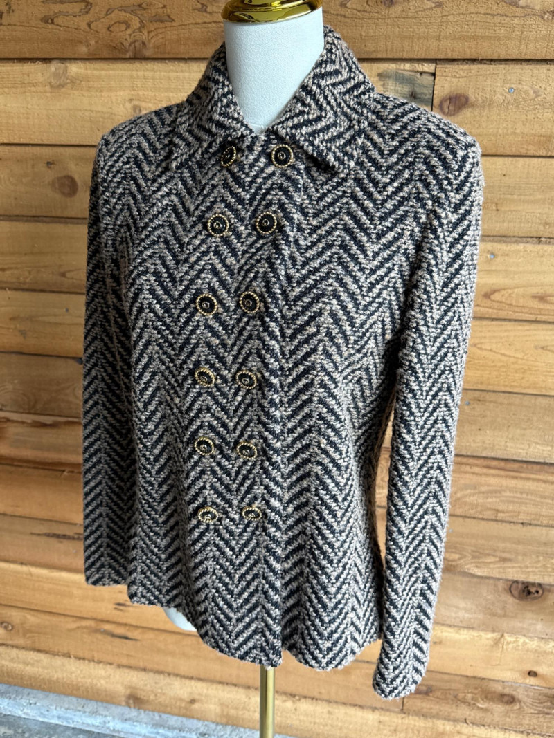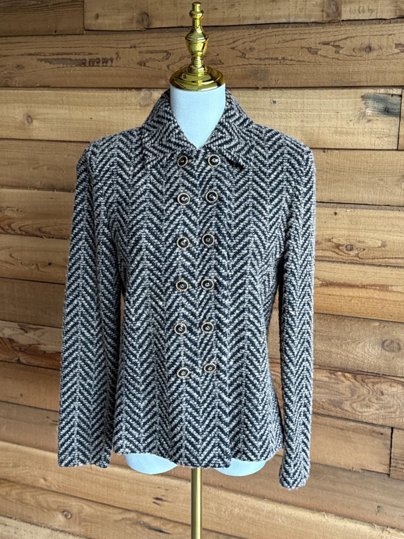 ST JOHN Black & Tan Double-breasted Jacket- Sz P