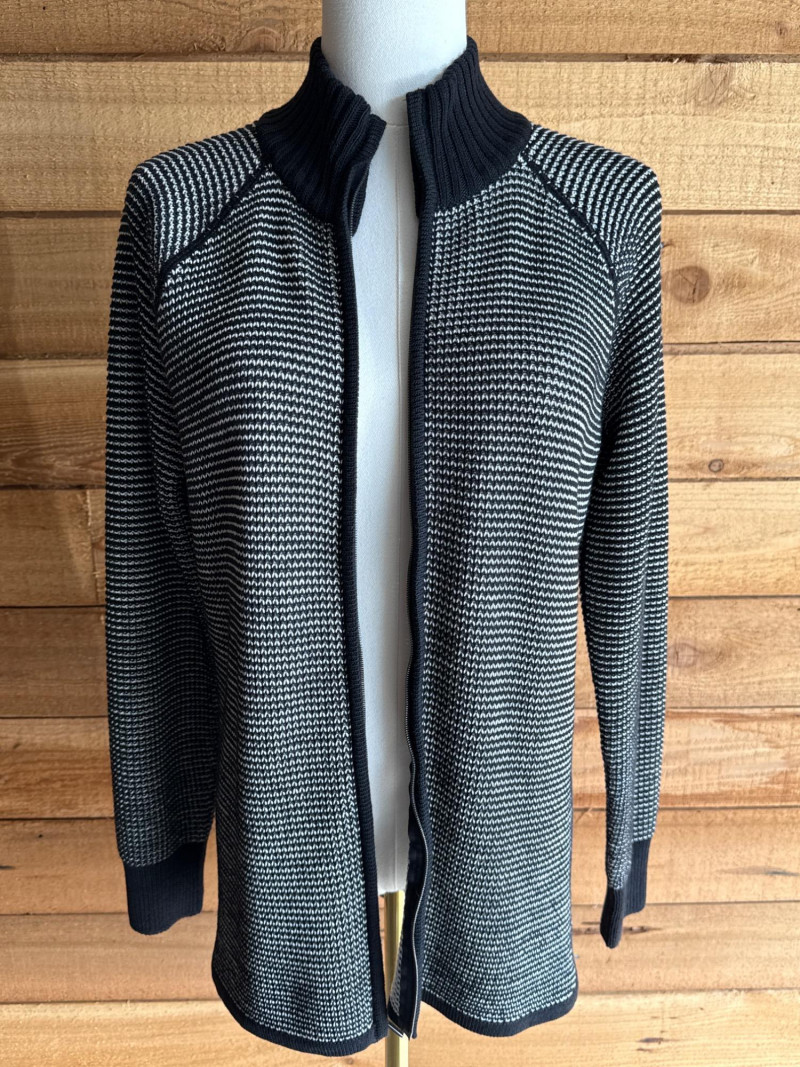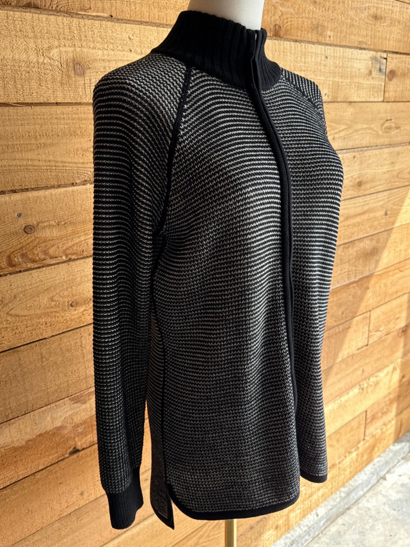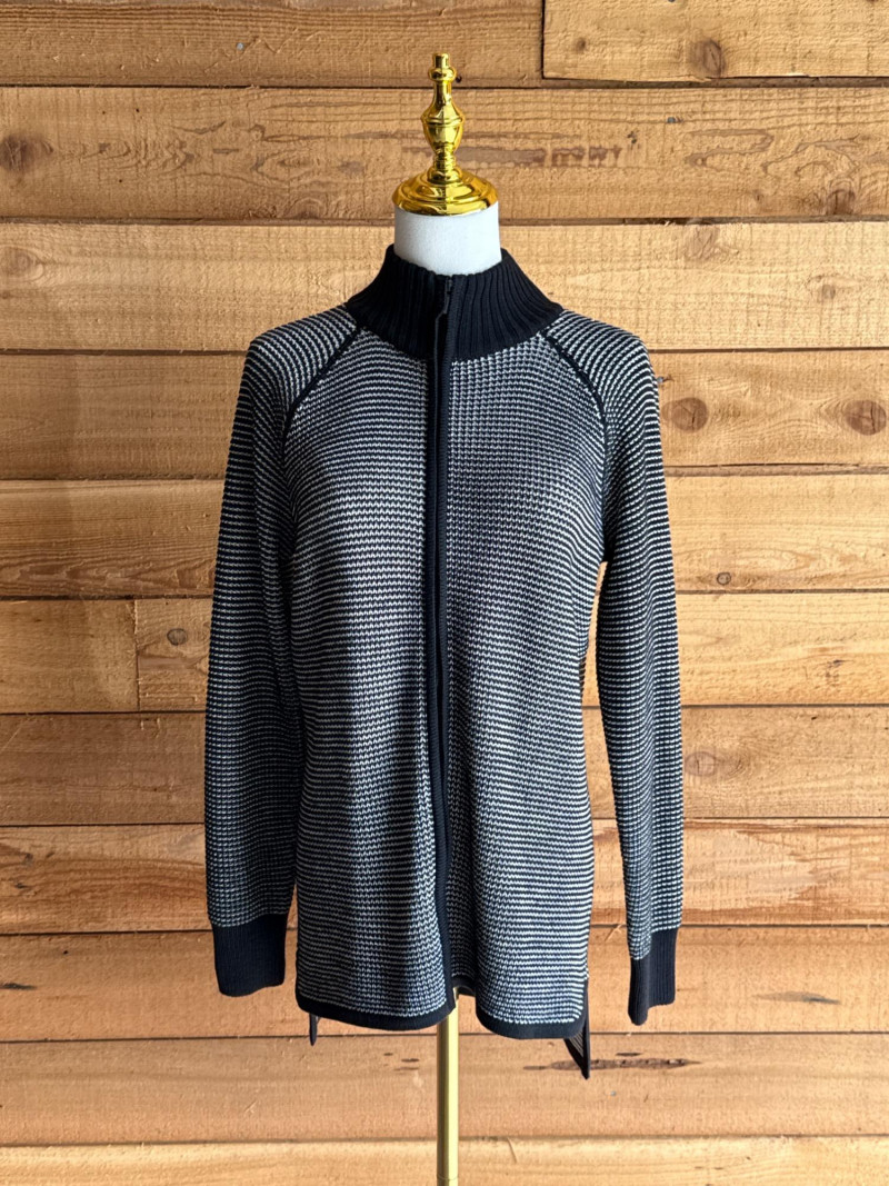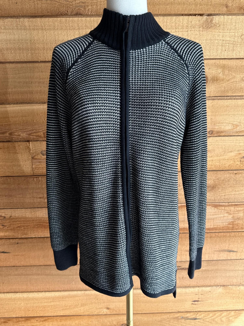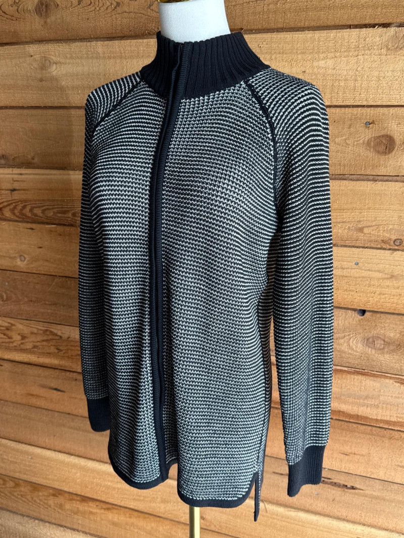 ST JOHN Black & White Sweater Zip Cardigan- Sz 8