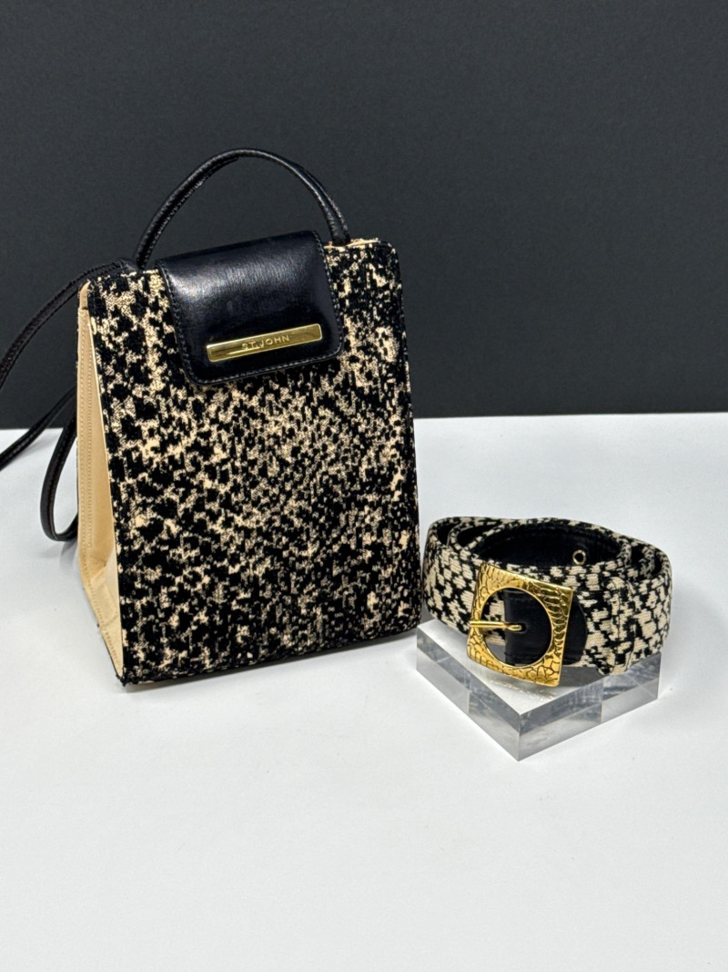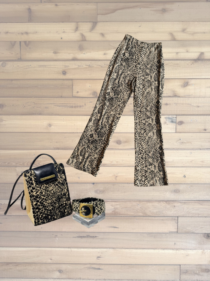 ST JOHN Animal Print Slacks, Bag & Belt Trio