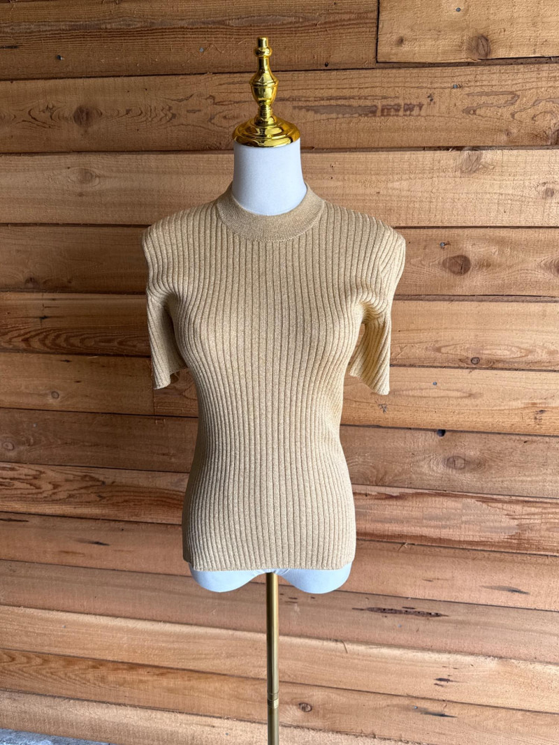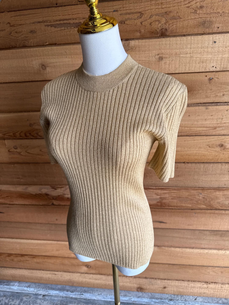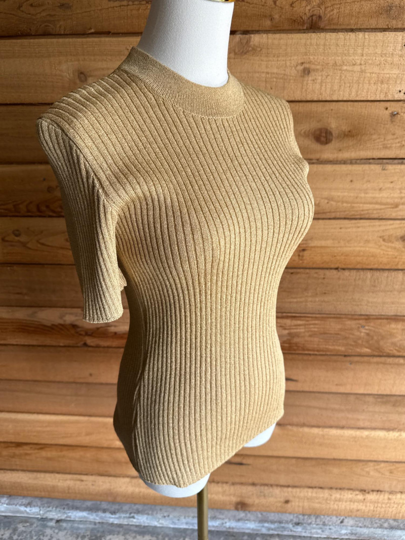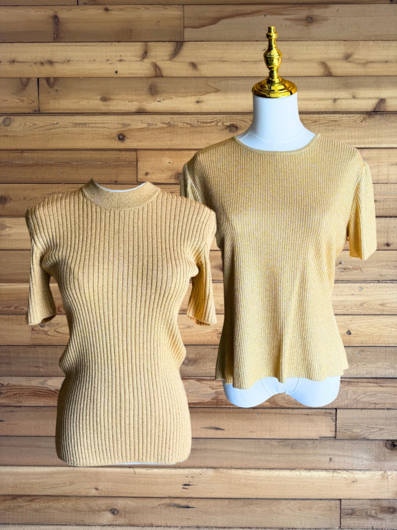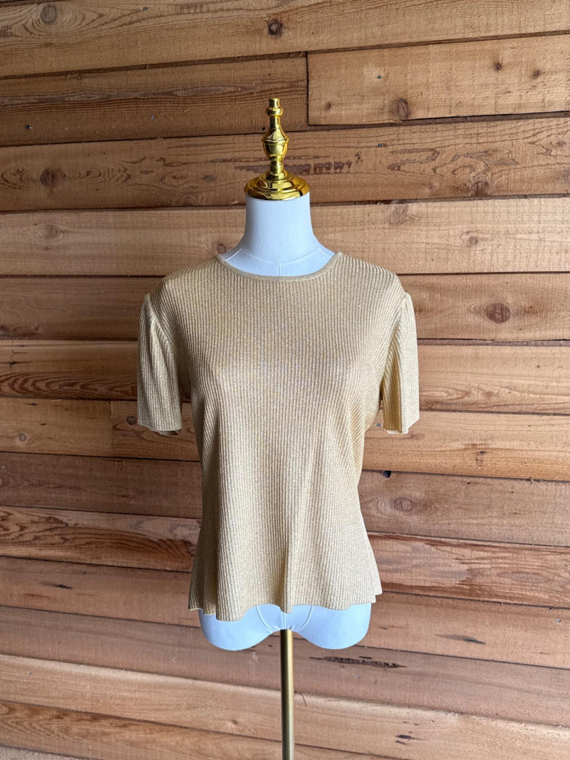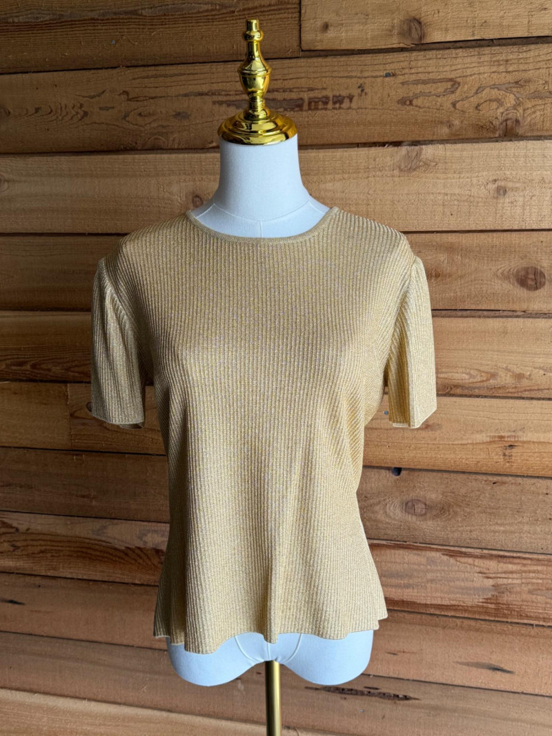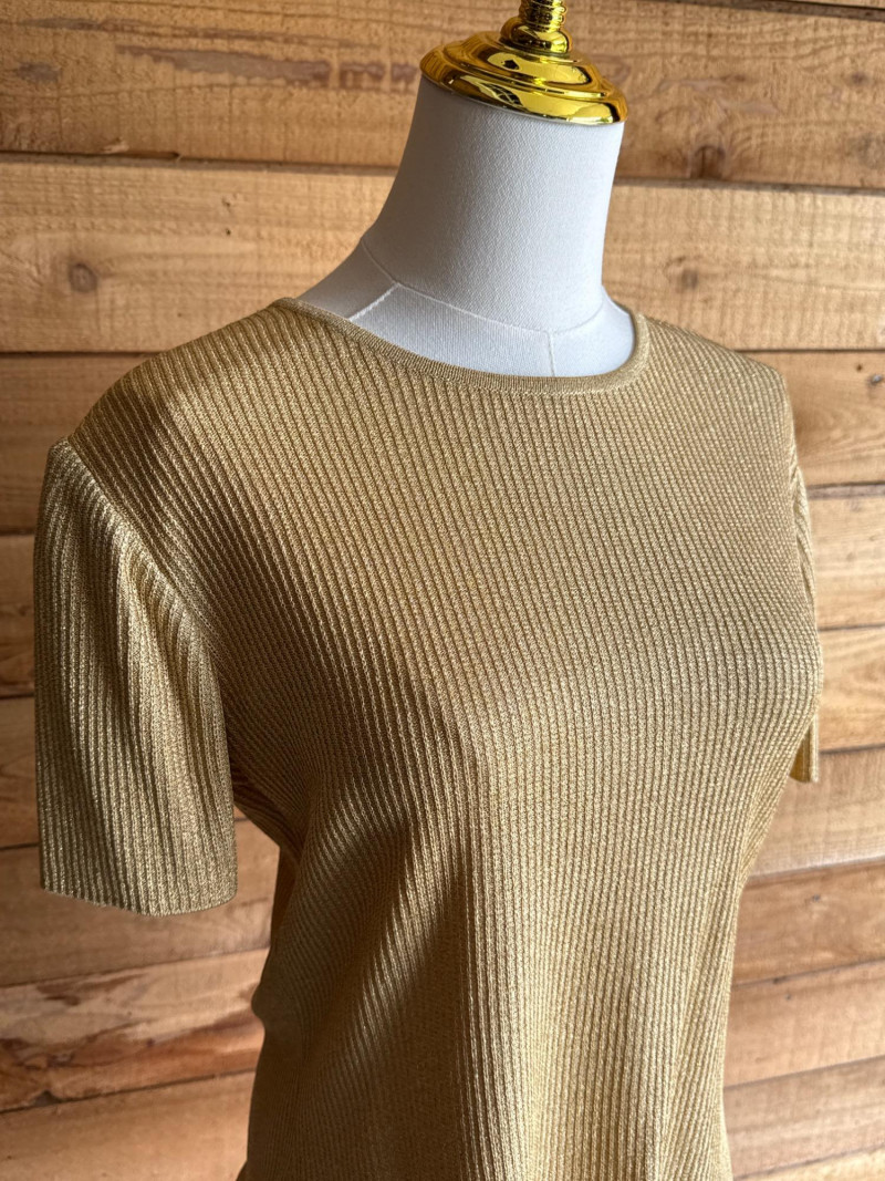 Lot # 56 - ST JOHN Gold Ribbed Metallic Sweaters- Sz S