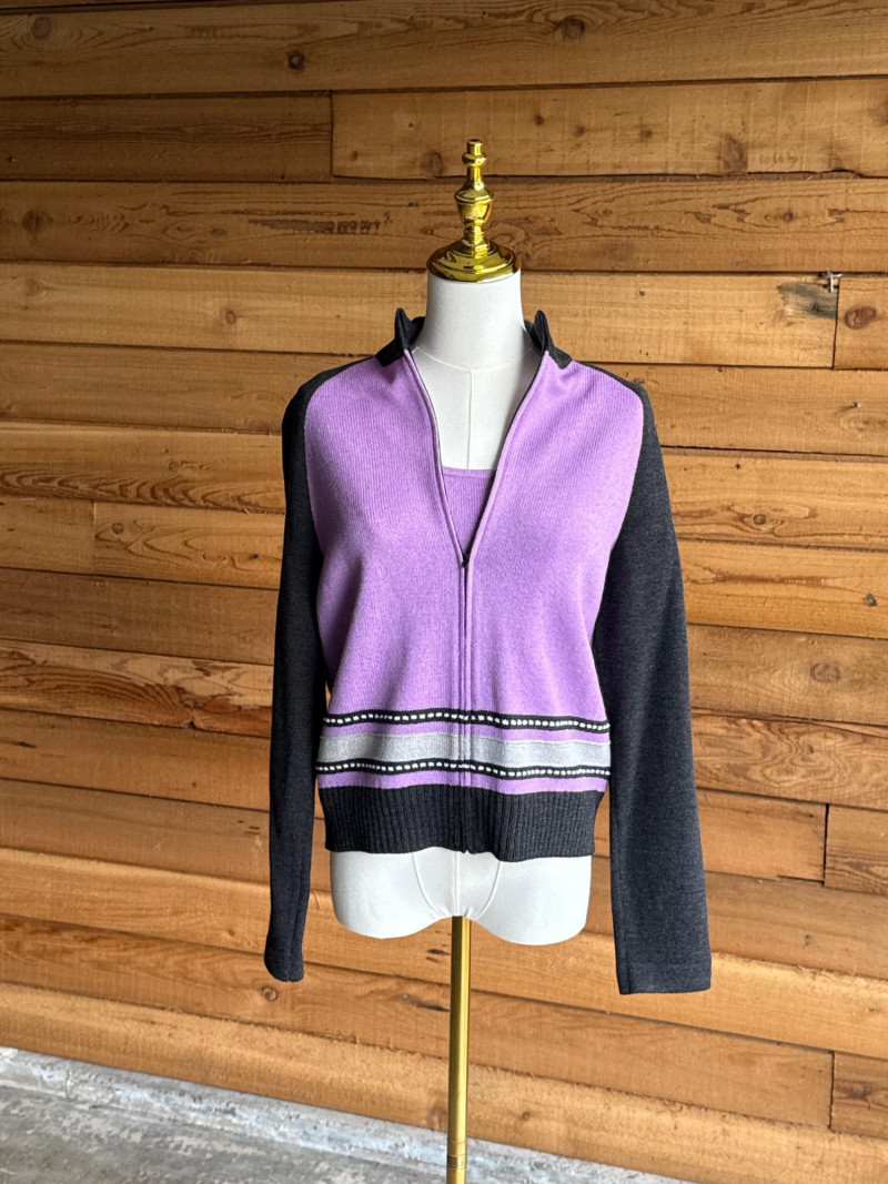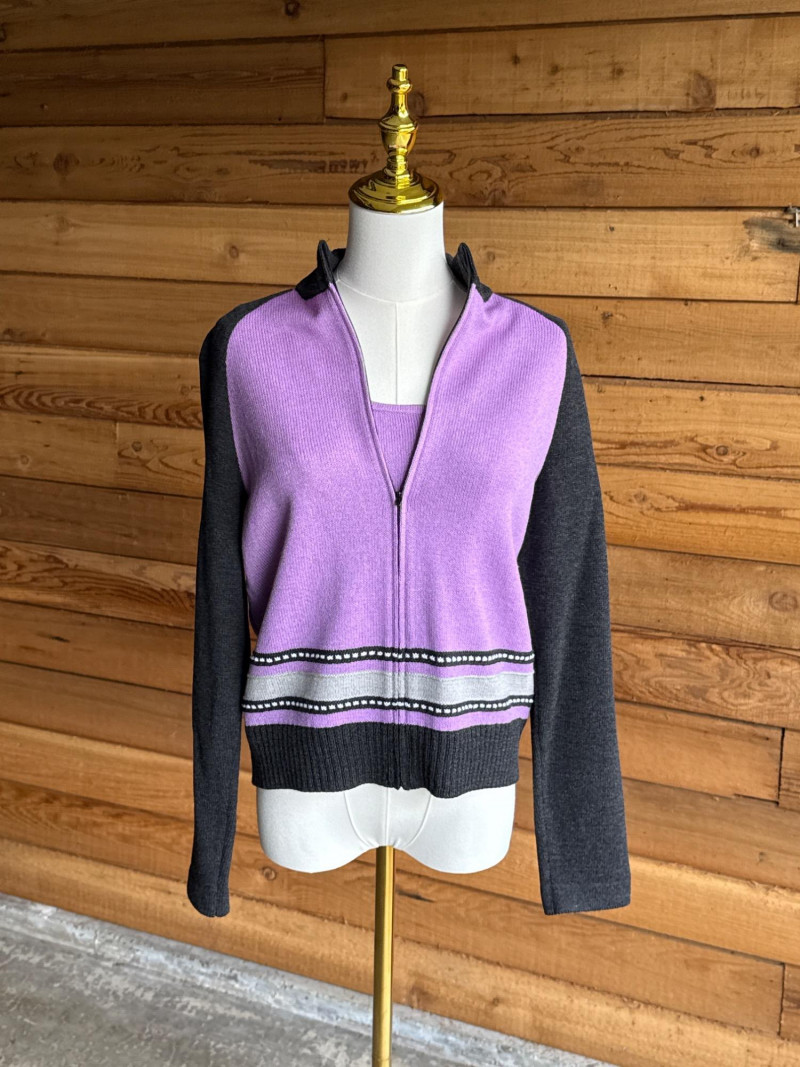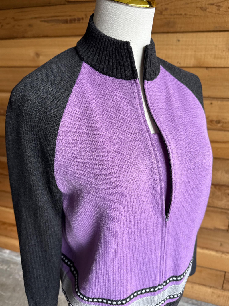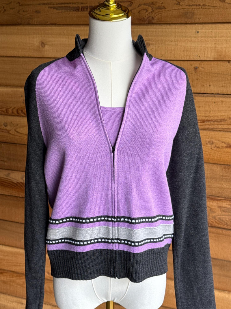 ST JOHN Sport Zipper Purple & Gray Sweater Set- Sz S/P