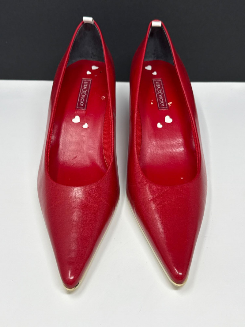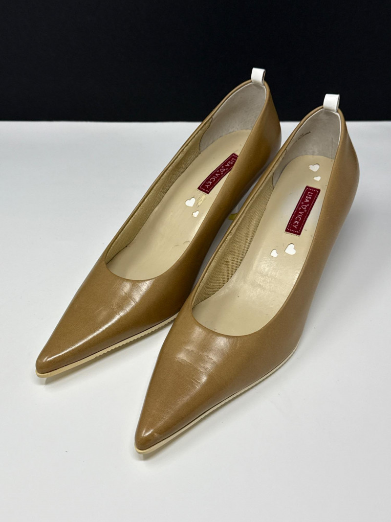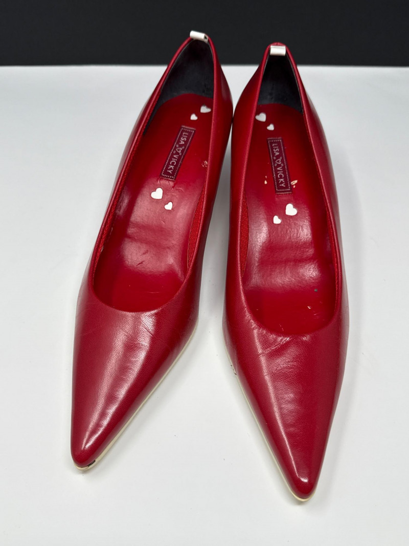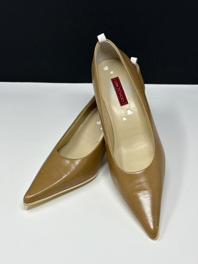 LISA VICKY Leather Pointy Toe Kitten Heel Duo- Sz 8 *gently used condition- please note photos carefully