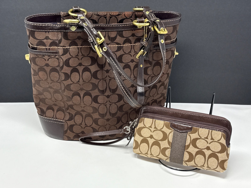 Lot # 80 - COACH Chocolate Brown Handbag & Wristlet