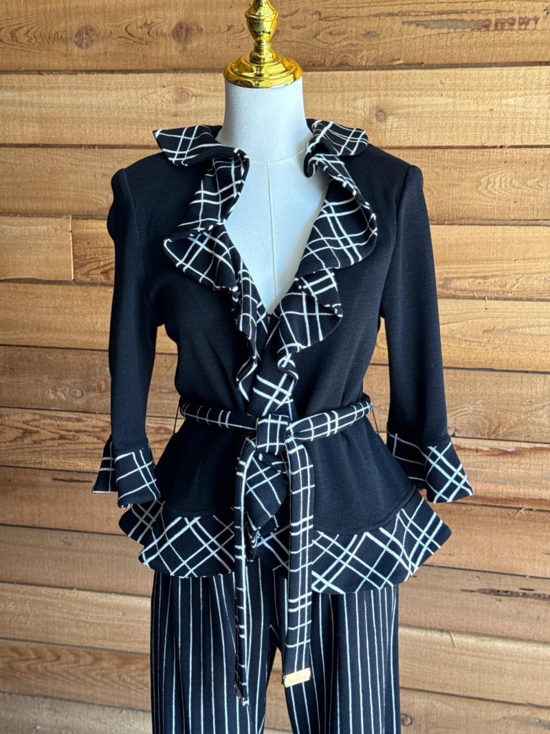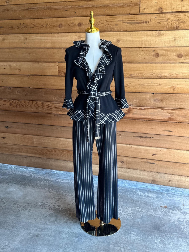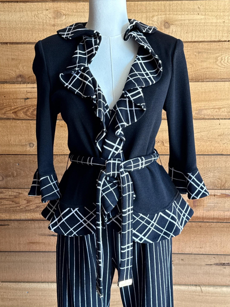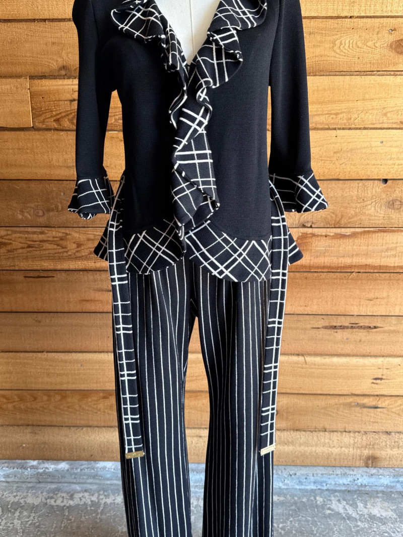 ST JOHN Collection Black & White Striped Pant Set- Sz 2