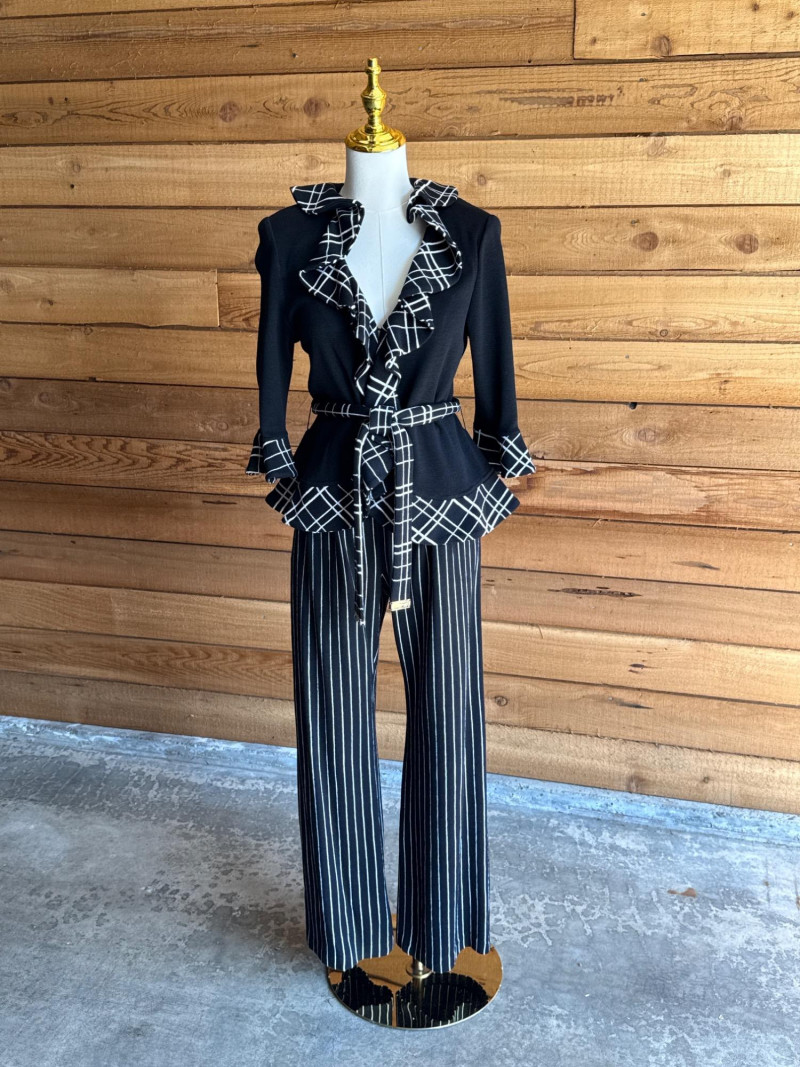 Lot # 85 - ST JOHN Collection Black & White Striped Pant Set- Sz 2