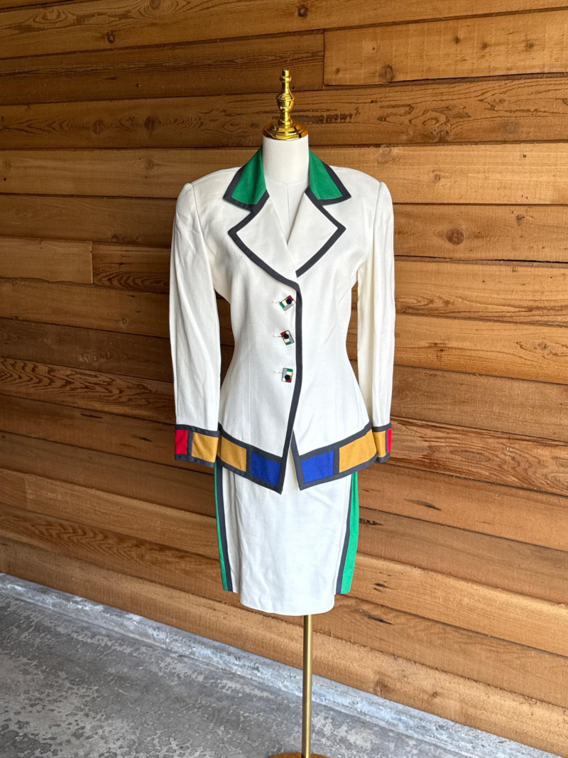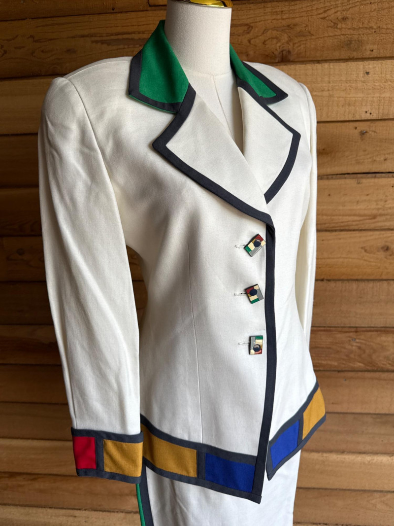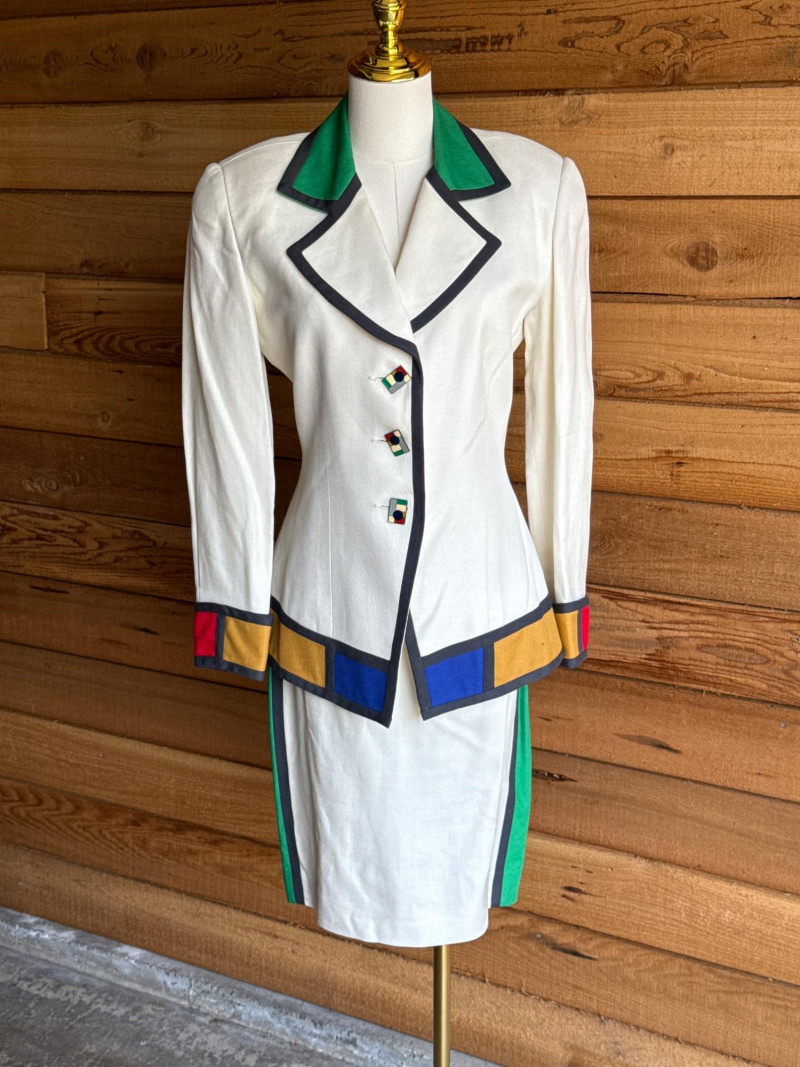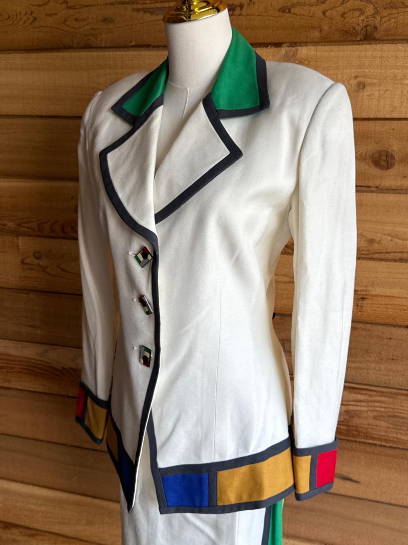 Lot # 95 - KATHRYN DIANOS Vintage Color Block Skirt Suit- Sz 6