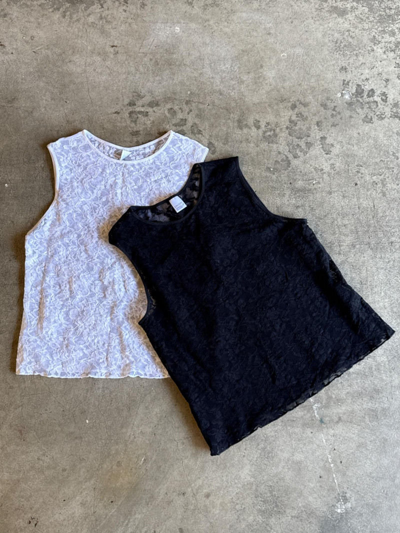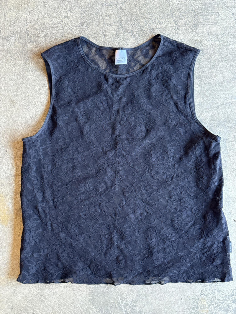 DKNY Black & White Stretchy Lace Tees- Sz M