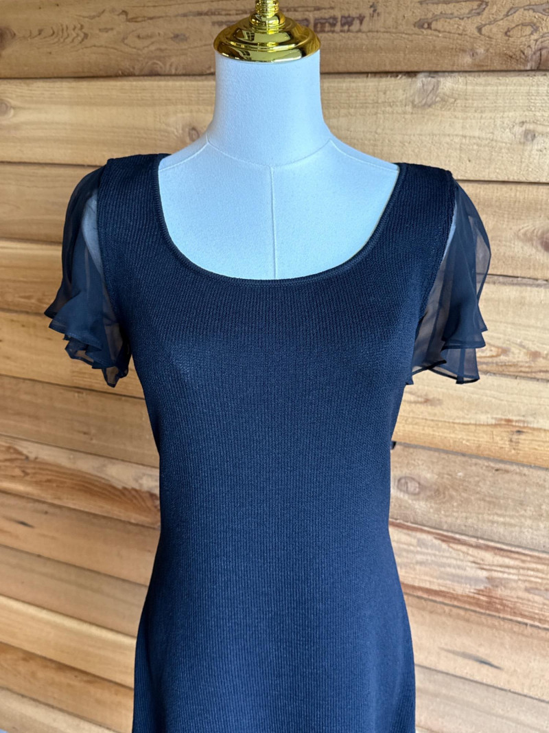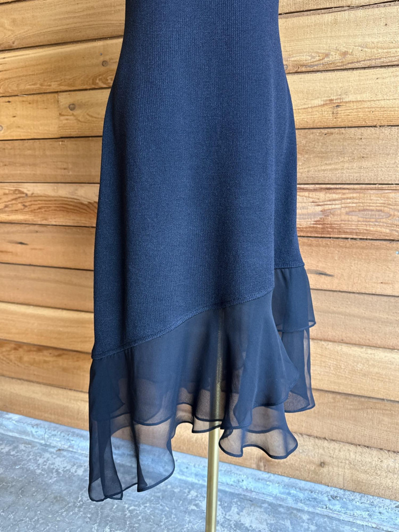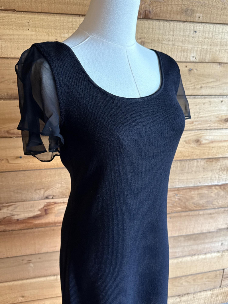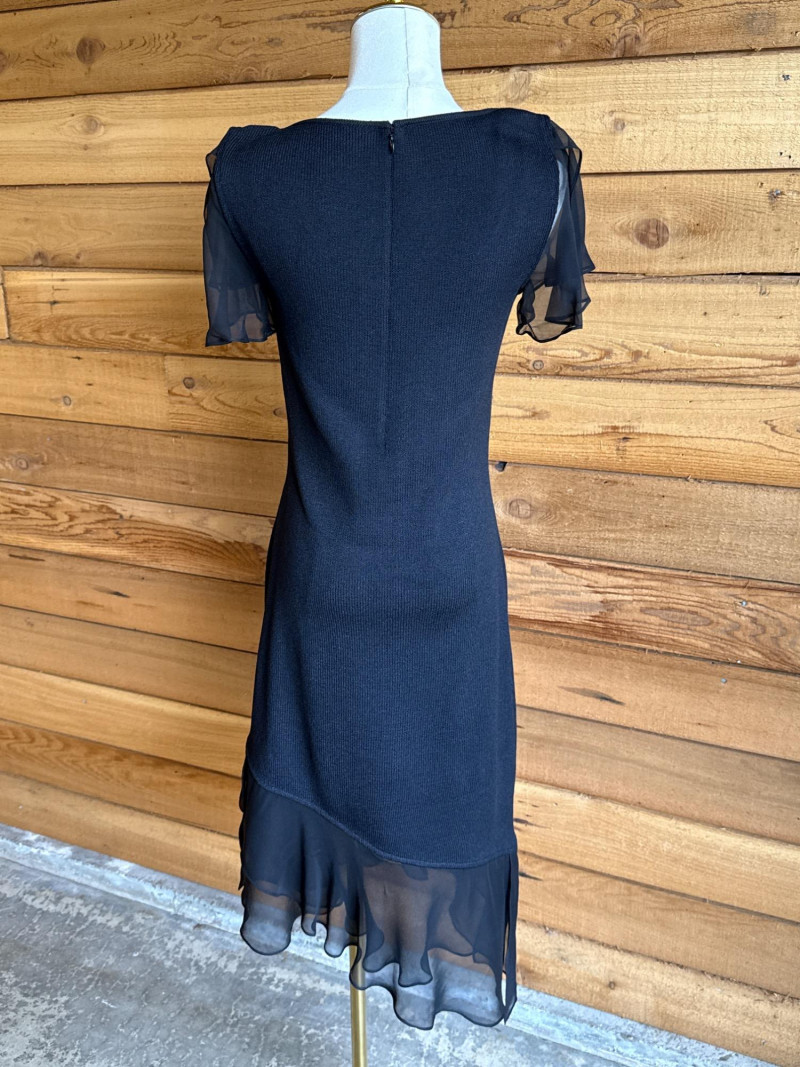 ST JOHN Evening Black Knit Dress w/ Chiffon Ruffles- Sz 2