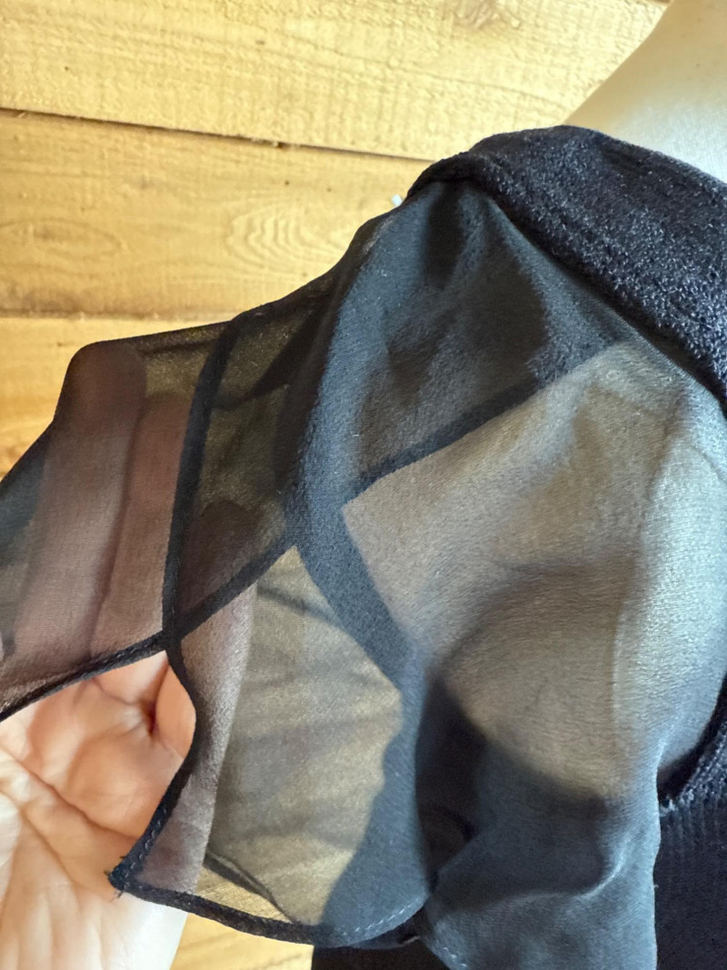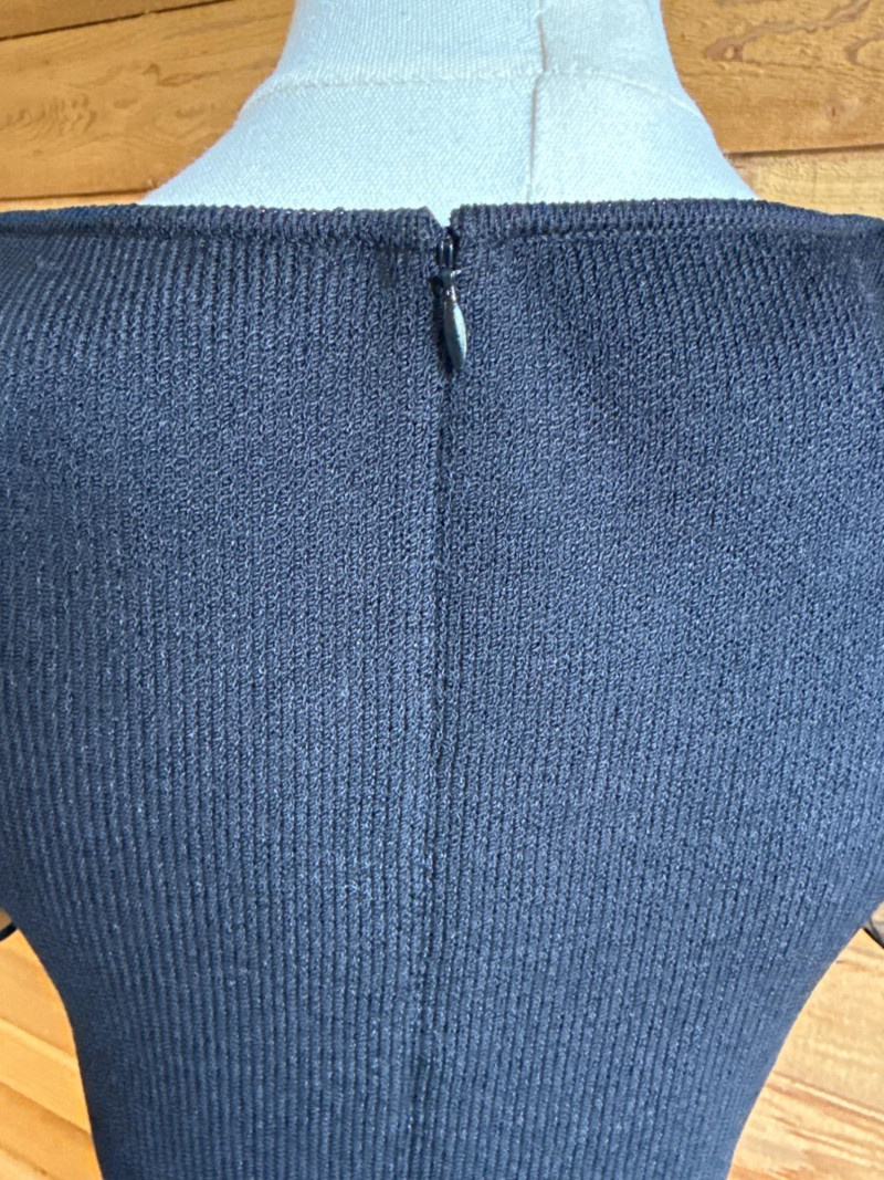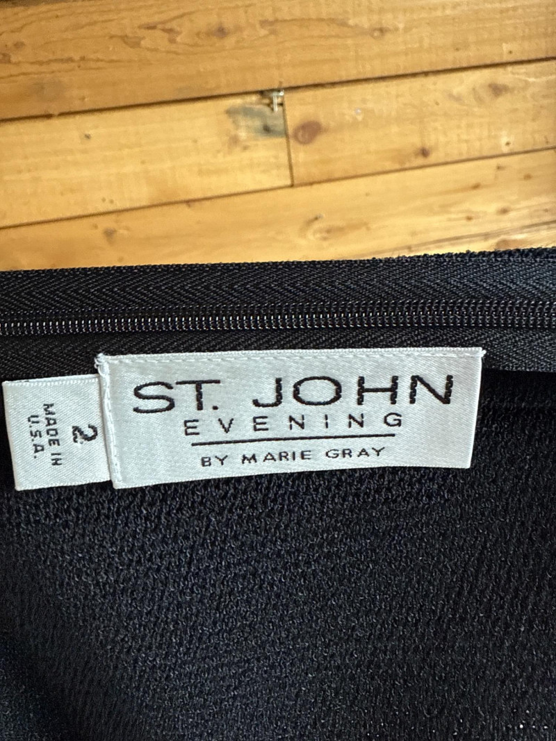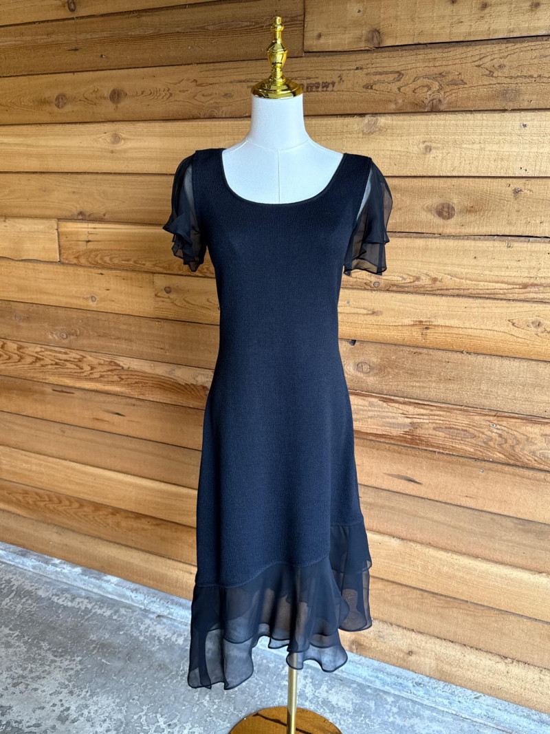 ST JOHN Evening Black Knit Dress w/ Chiffon Ruffles- Sz 2