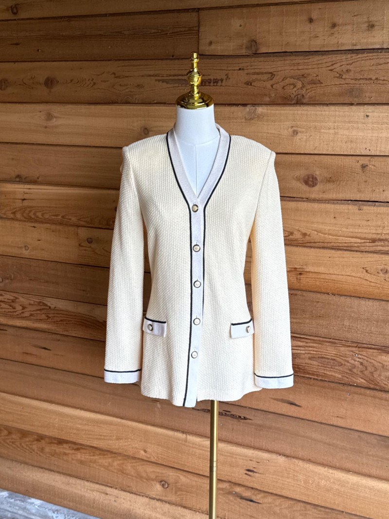 ST JOHN Ivory & Black Cardigan- Sz 4