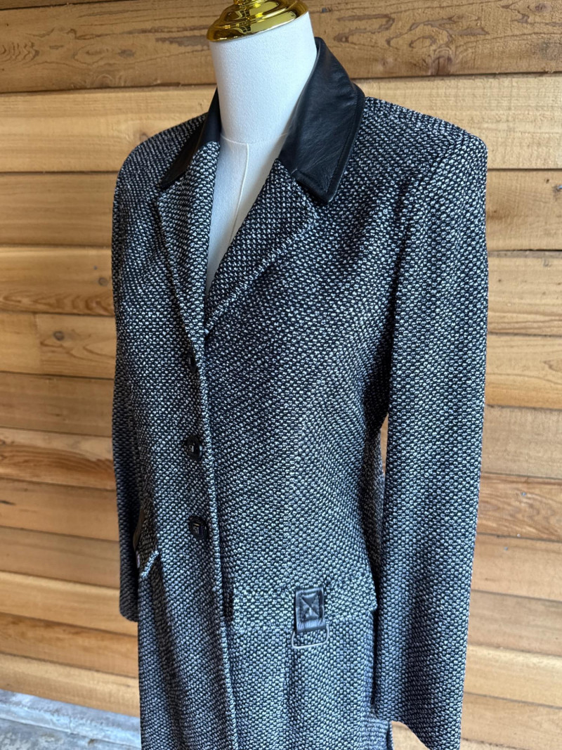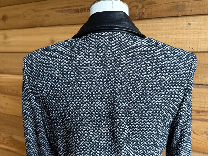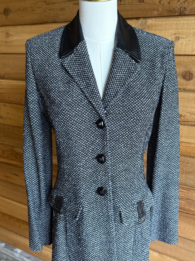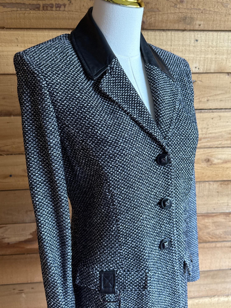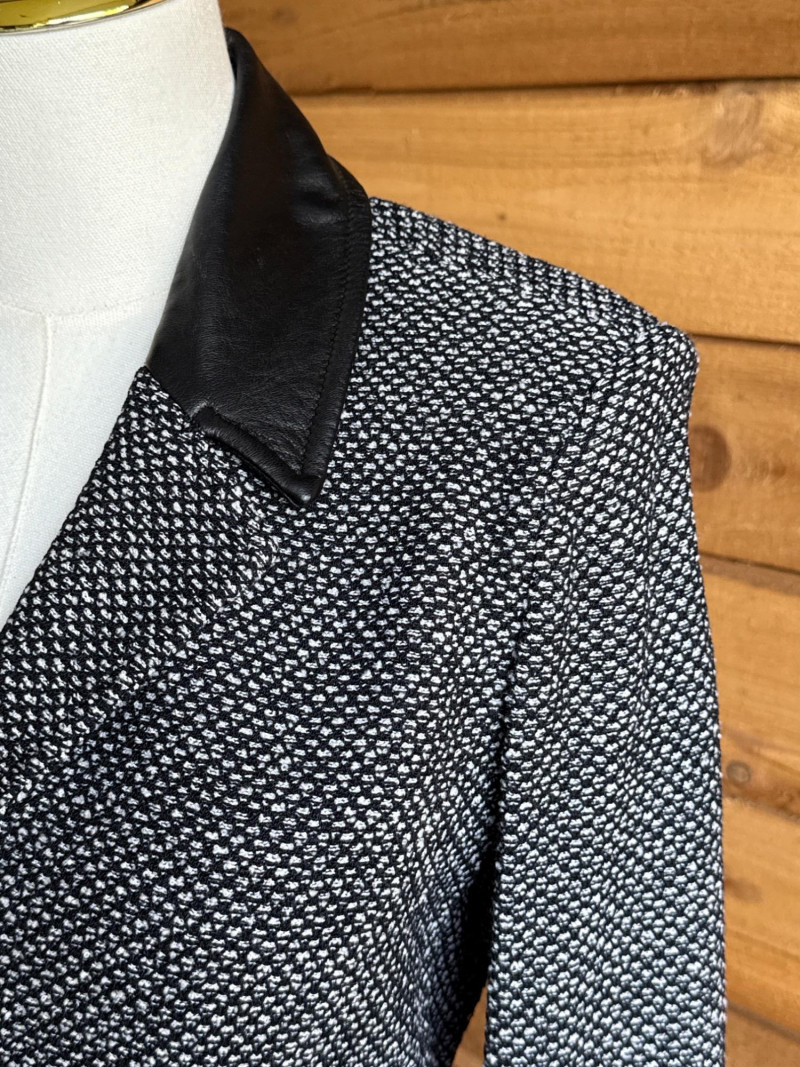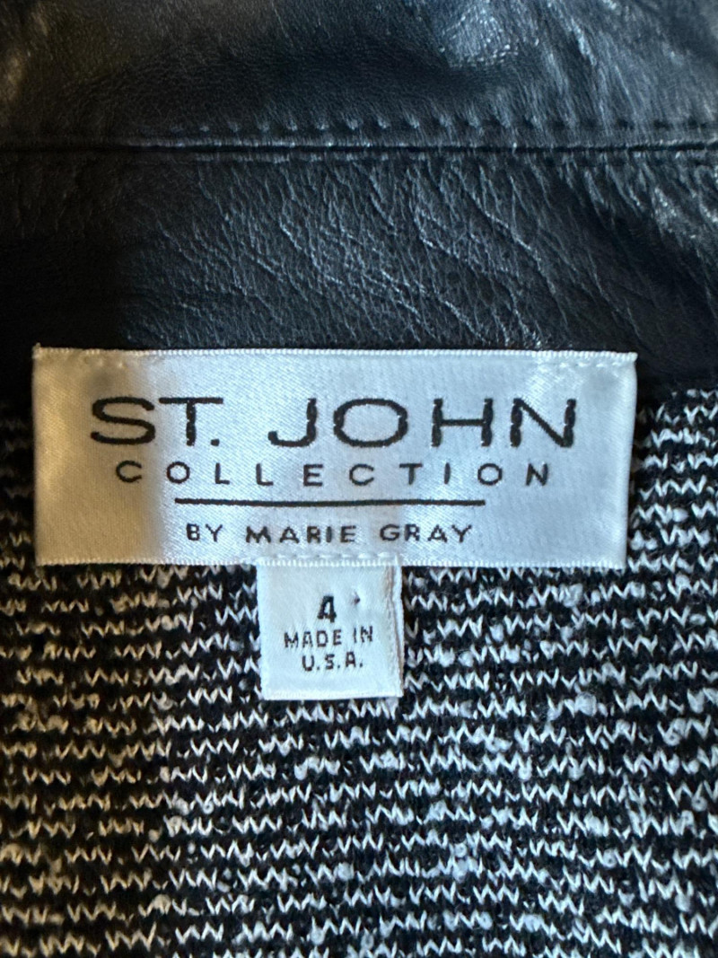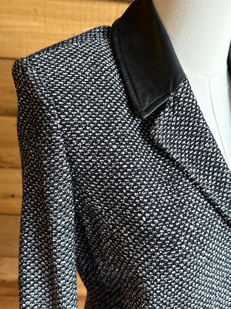 ST JOHN Black & White Knit Coat w/ Leather Accents- Sz 4