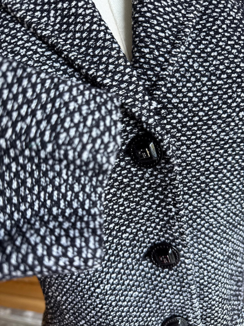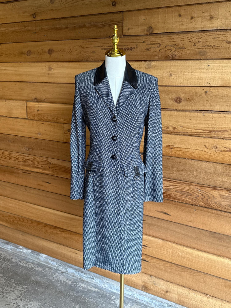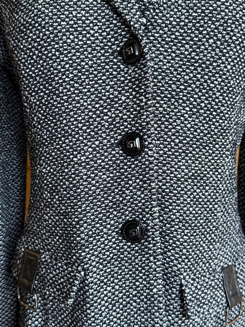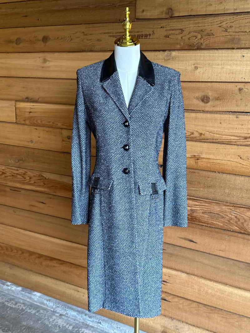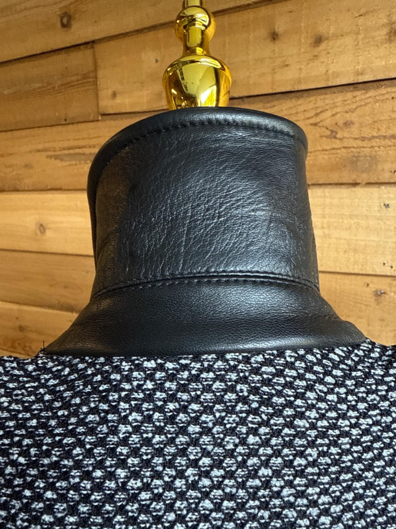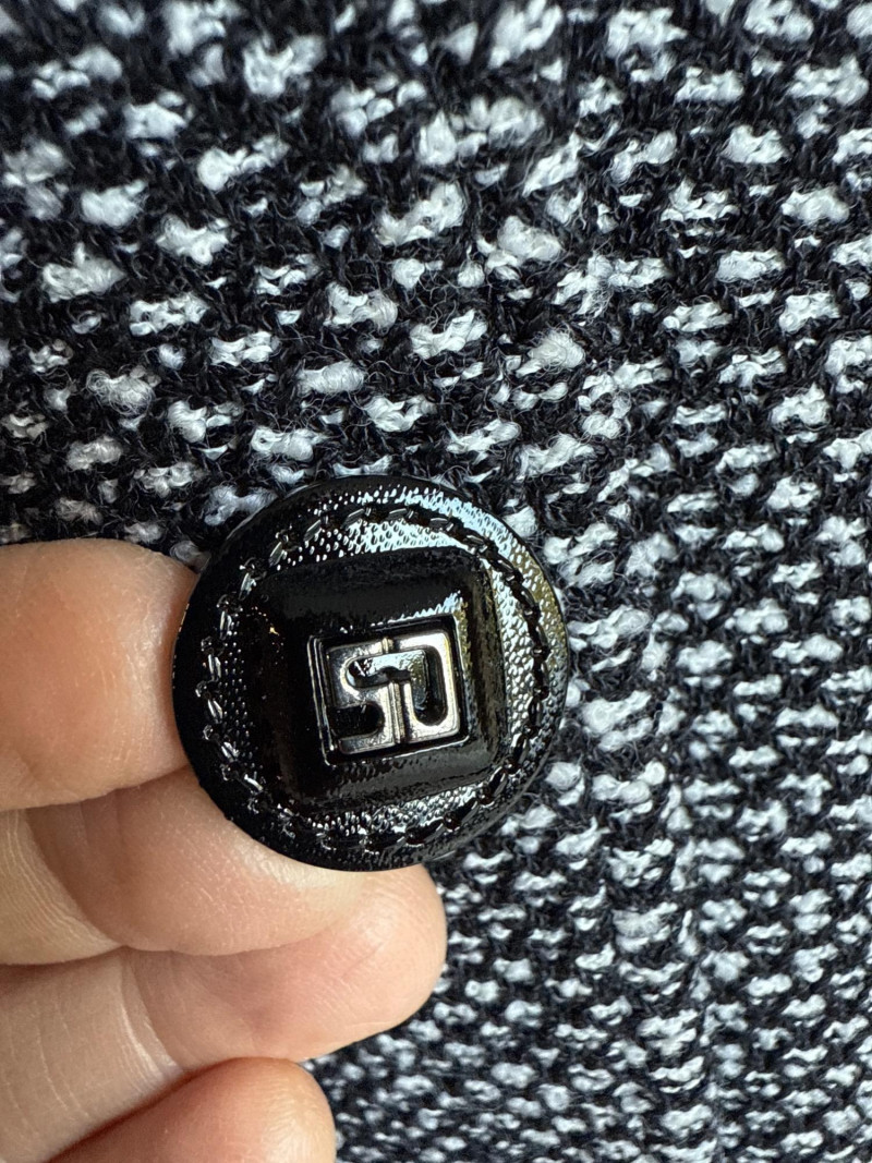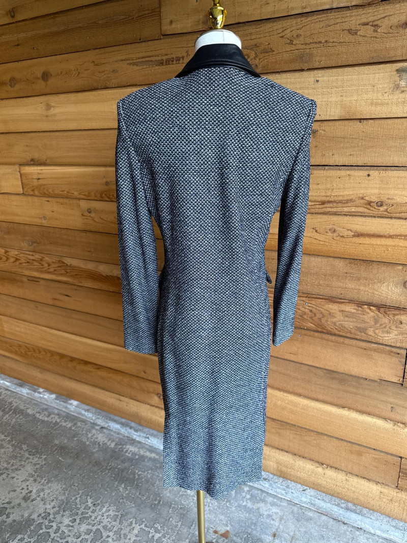 ST JOHN Black & White Knit Coat w/ Leather Accents- Sz 4