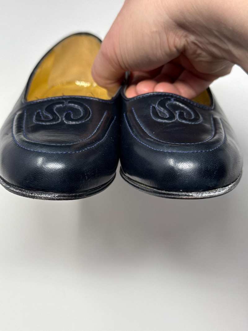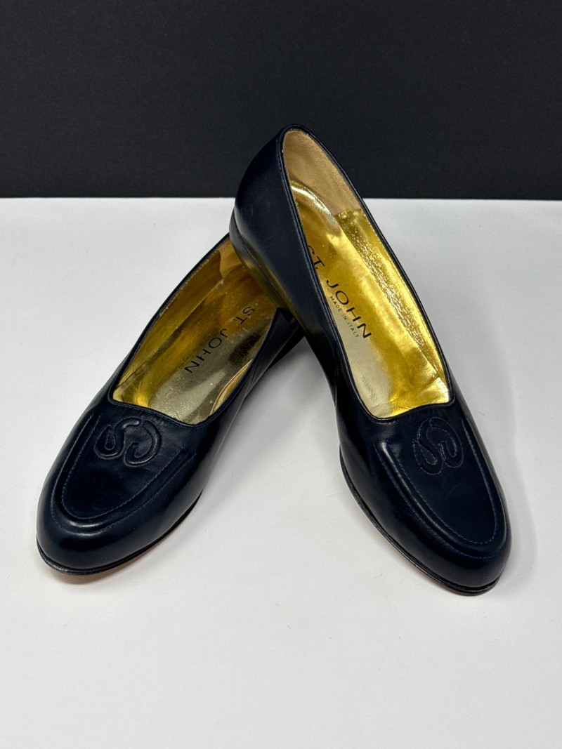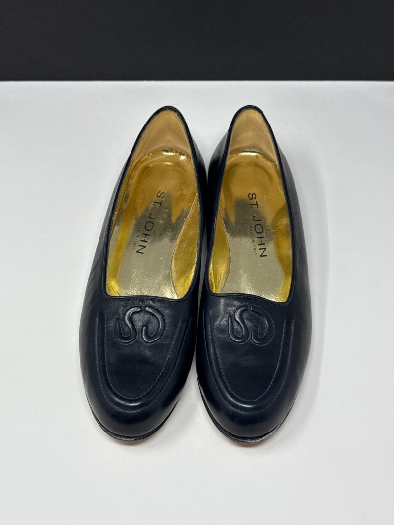 ST JOHN Navy Leather Loafers- Sz 7.5
