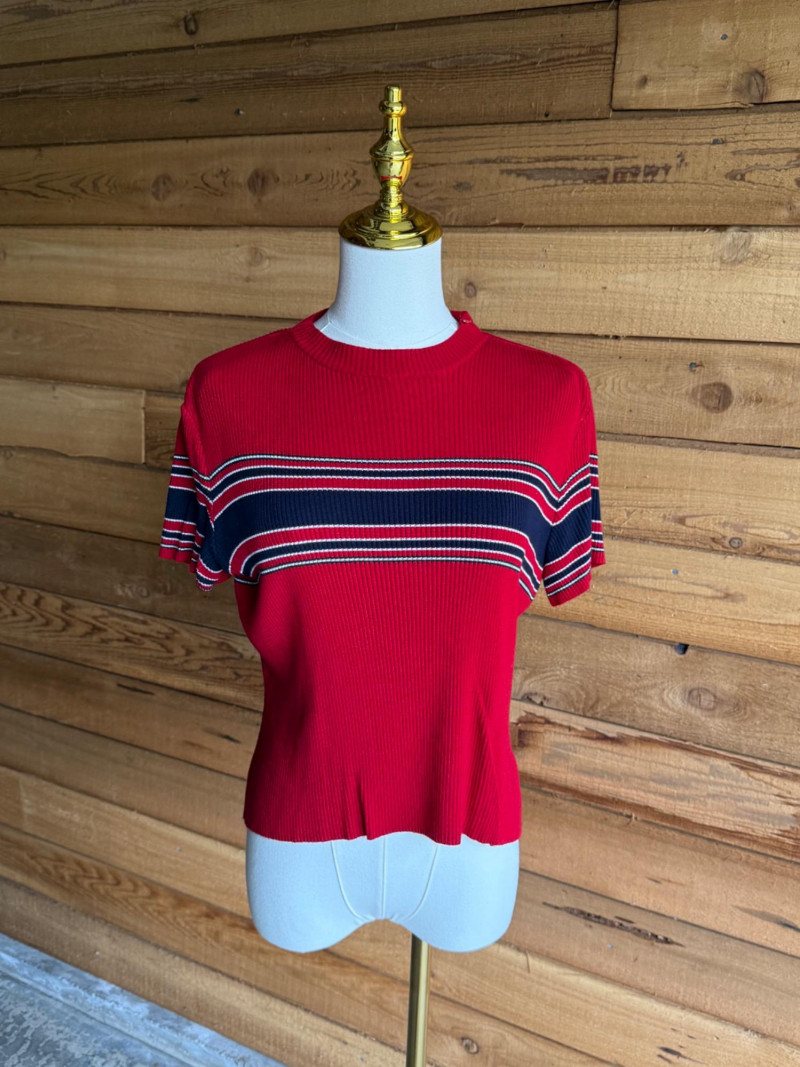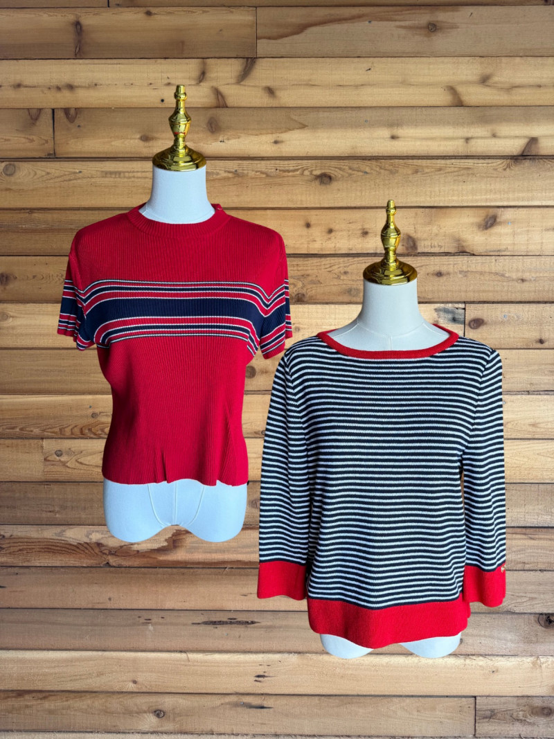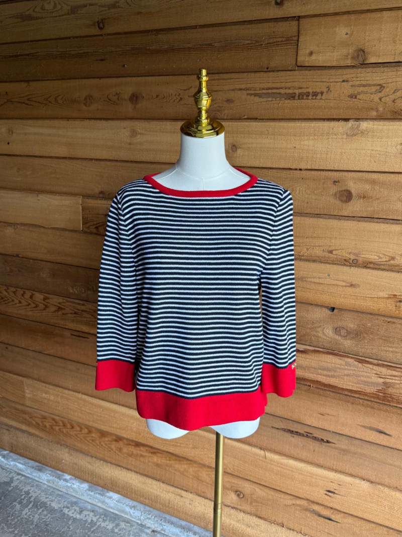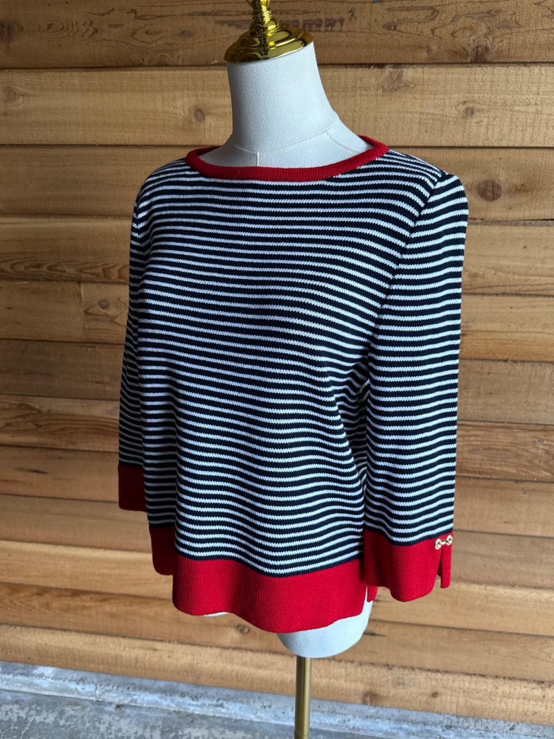 ST JOHN Sport Red White & Blue Striped Sweaters- Sz S