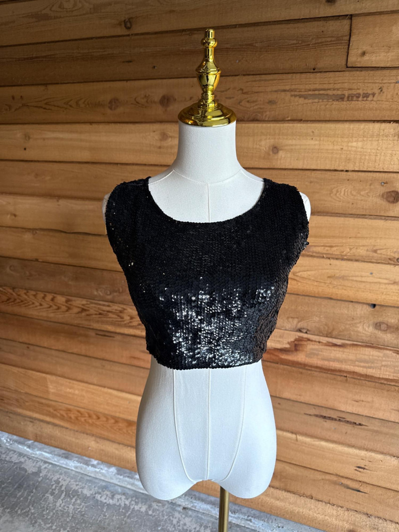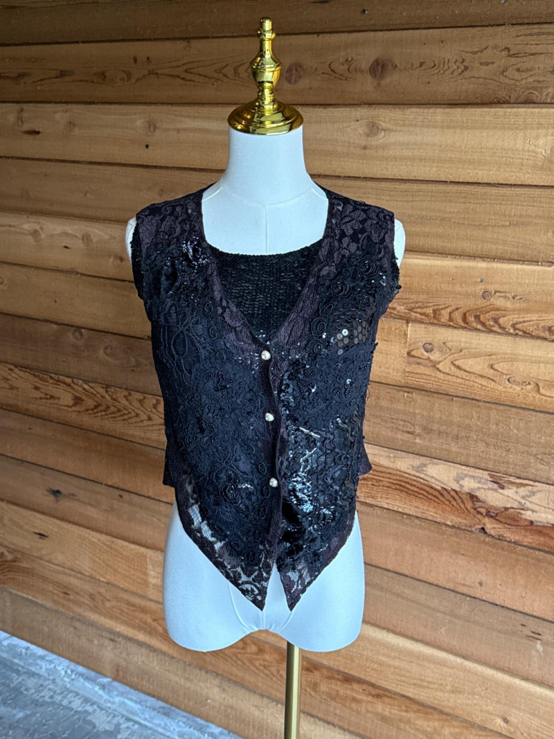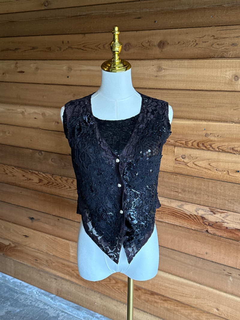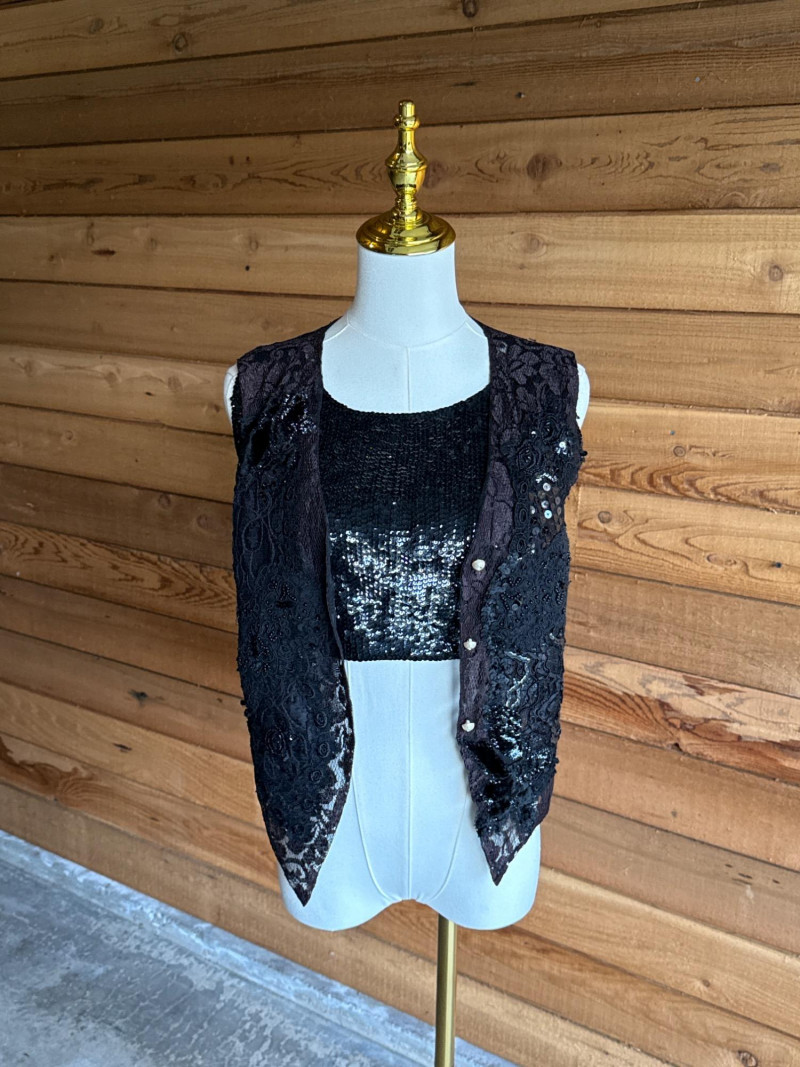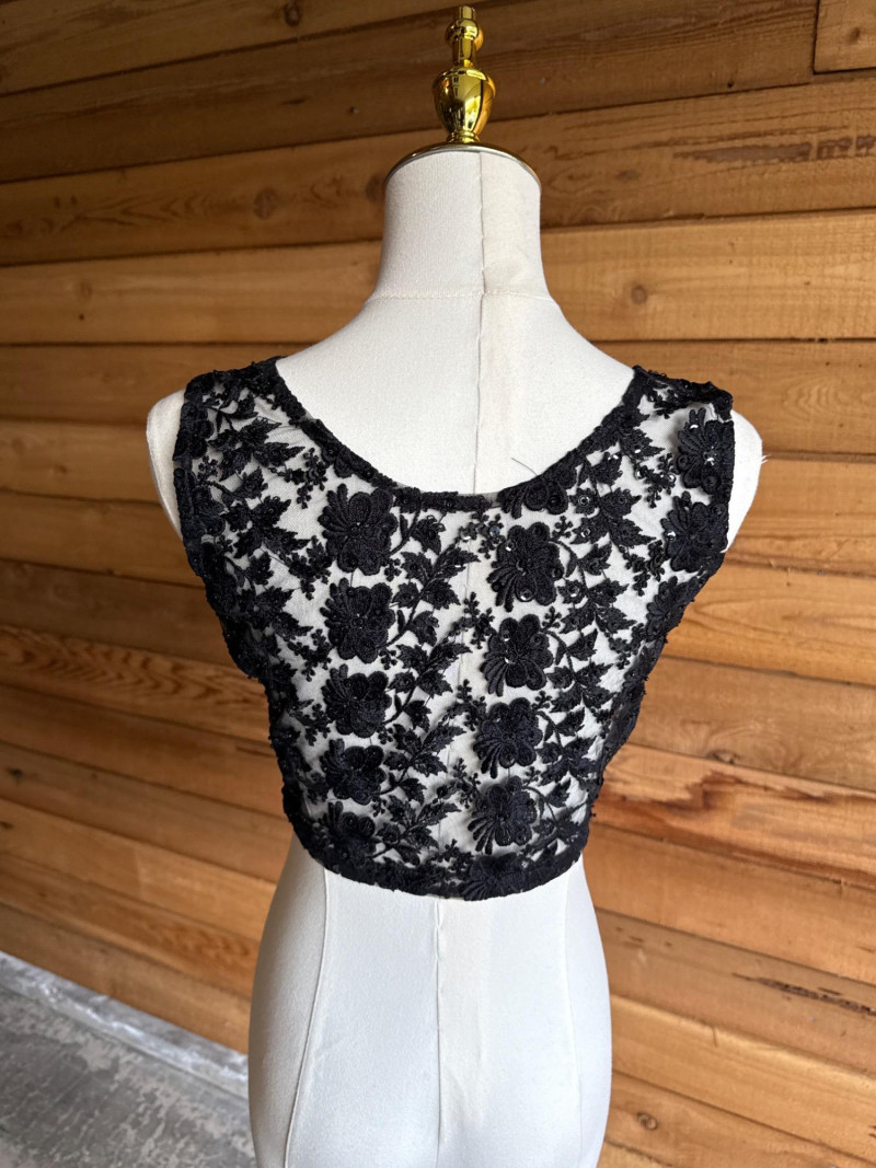 Vintage Black Beaded Lace Vest & Crop Top- Sz S? *Size tags are missing