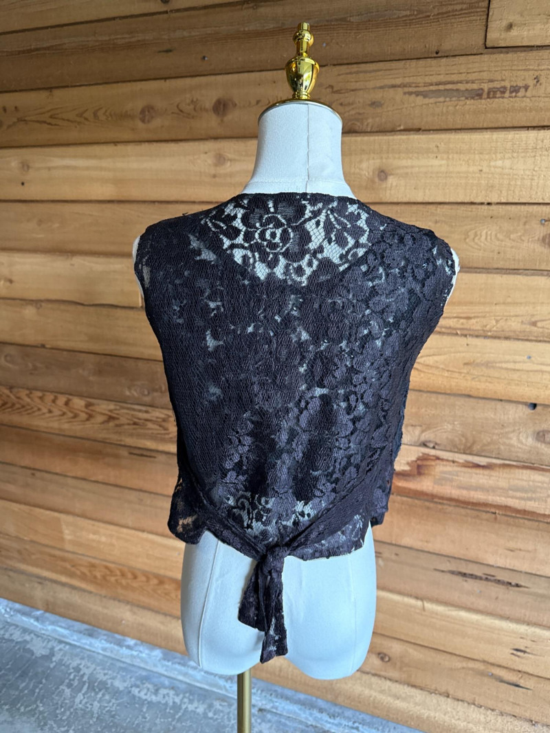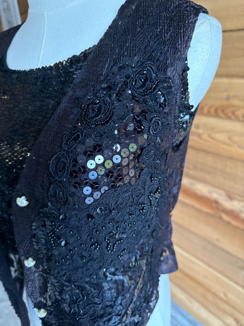 Lot # 126 - Vintage Black Beaded Lace Vest & Crop Top- Sz S?