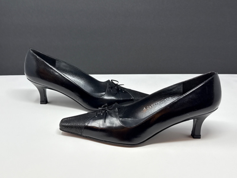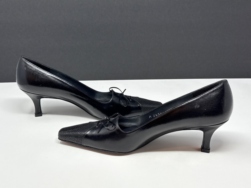 Lot # 141 - STUART WEITZMAN Black Leather Heels- Sz 7.5