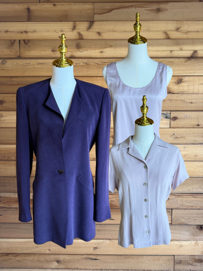 DANA BUCHMAN Purples Silk Jacket, Blouse & Shell- Sz 4 *gently worn condition- please note photos for more details