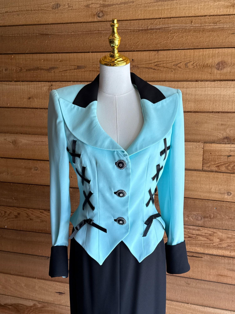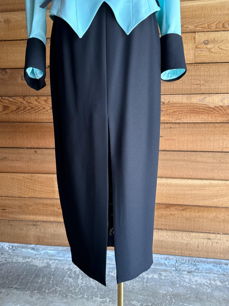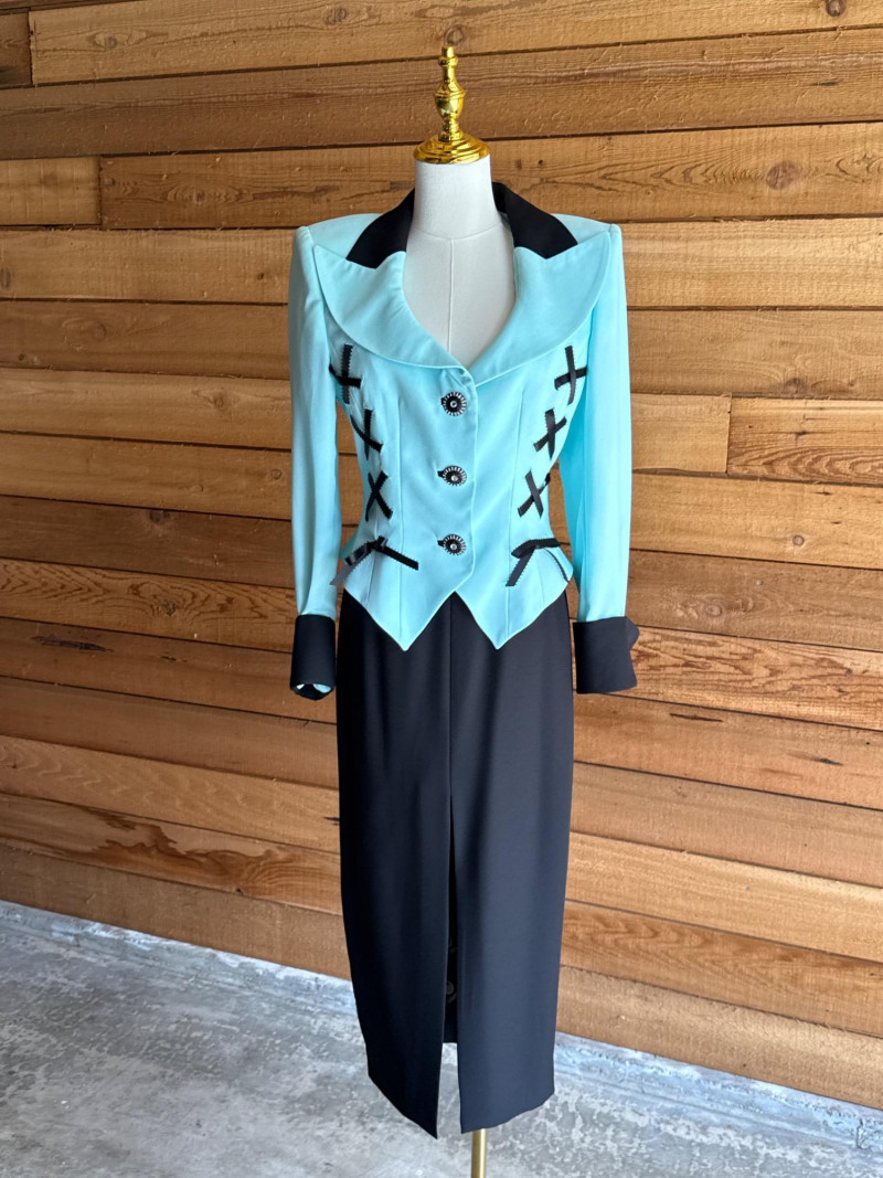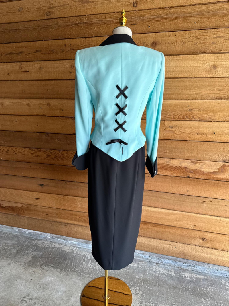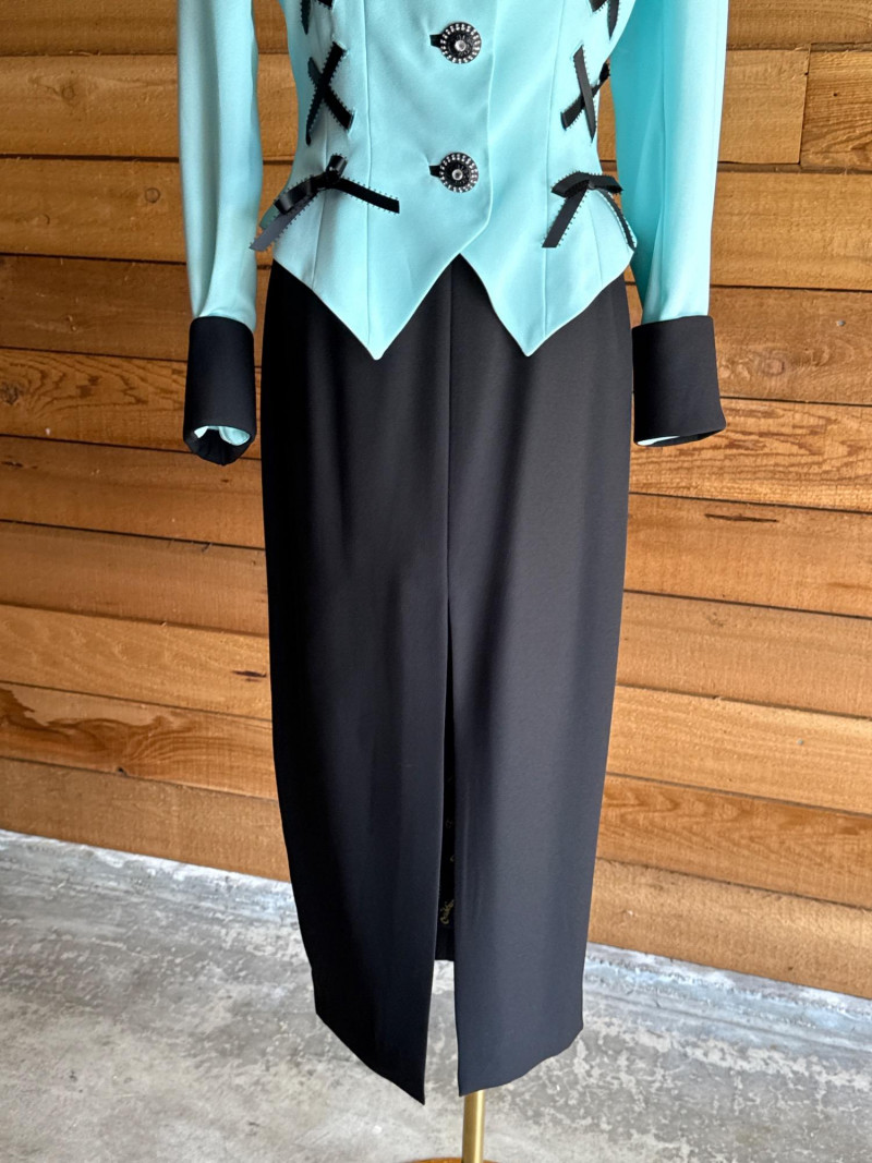 CRISCOINE Vintage Black & Aqua 2pc Skirt Suit- Sz XS