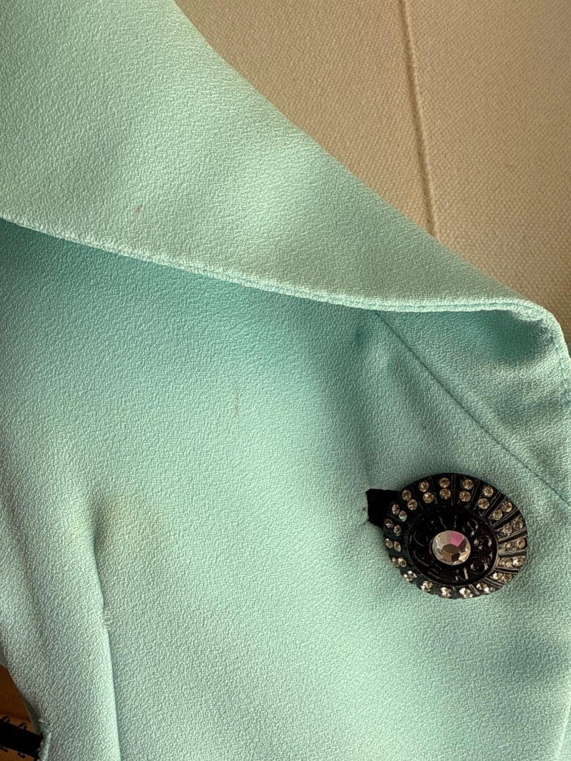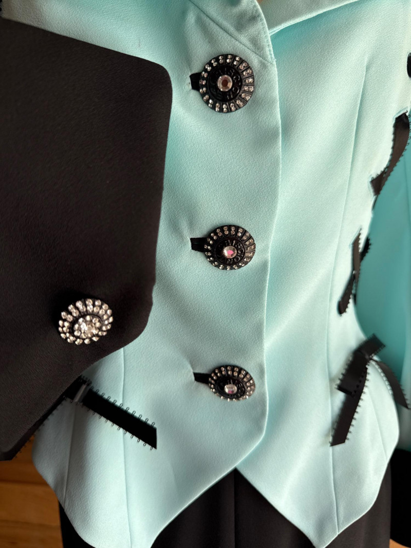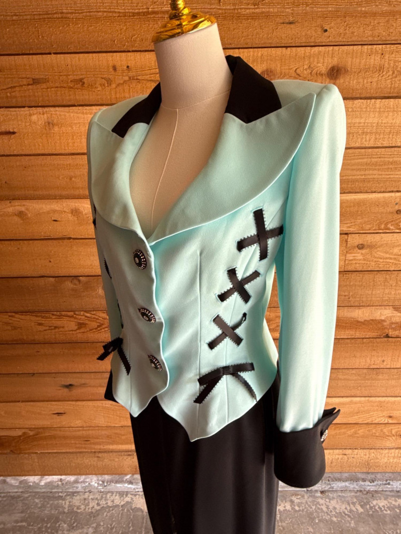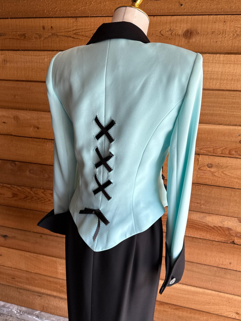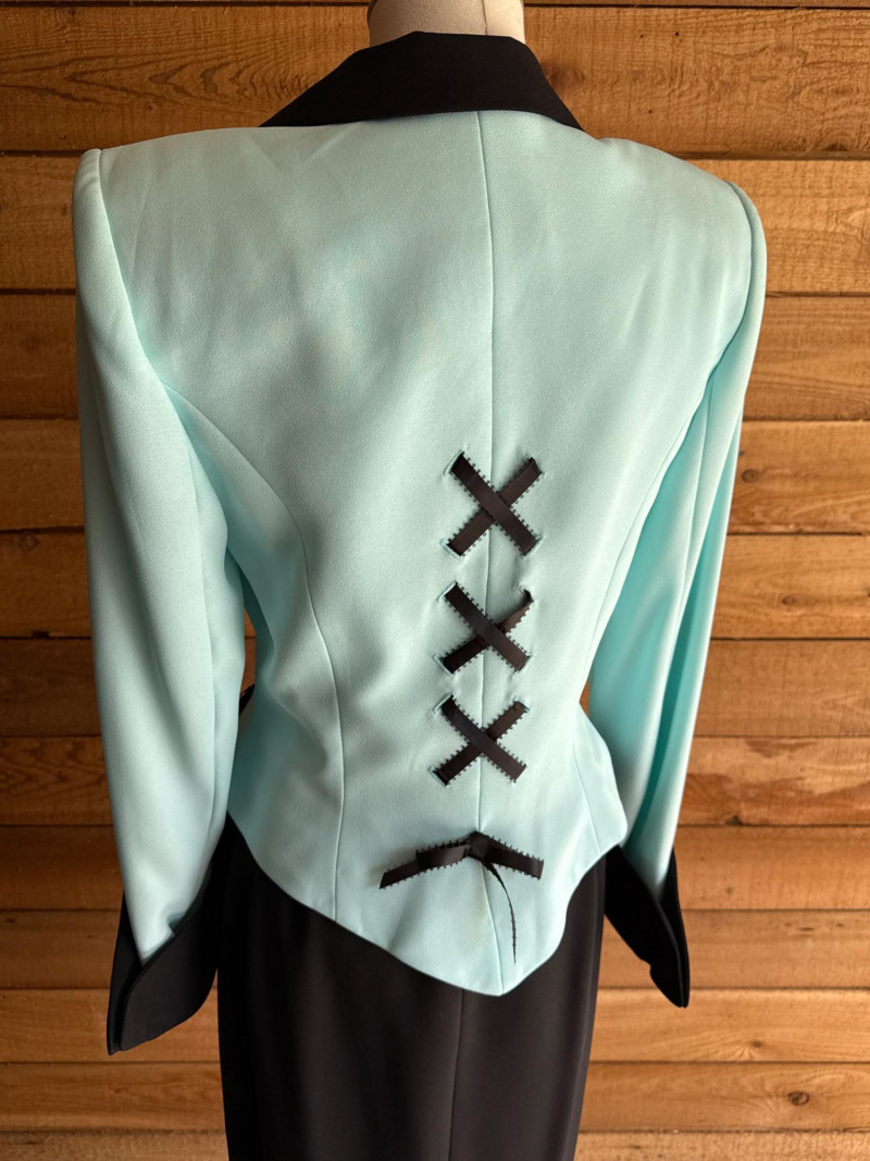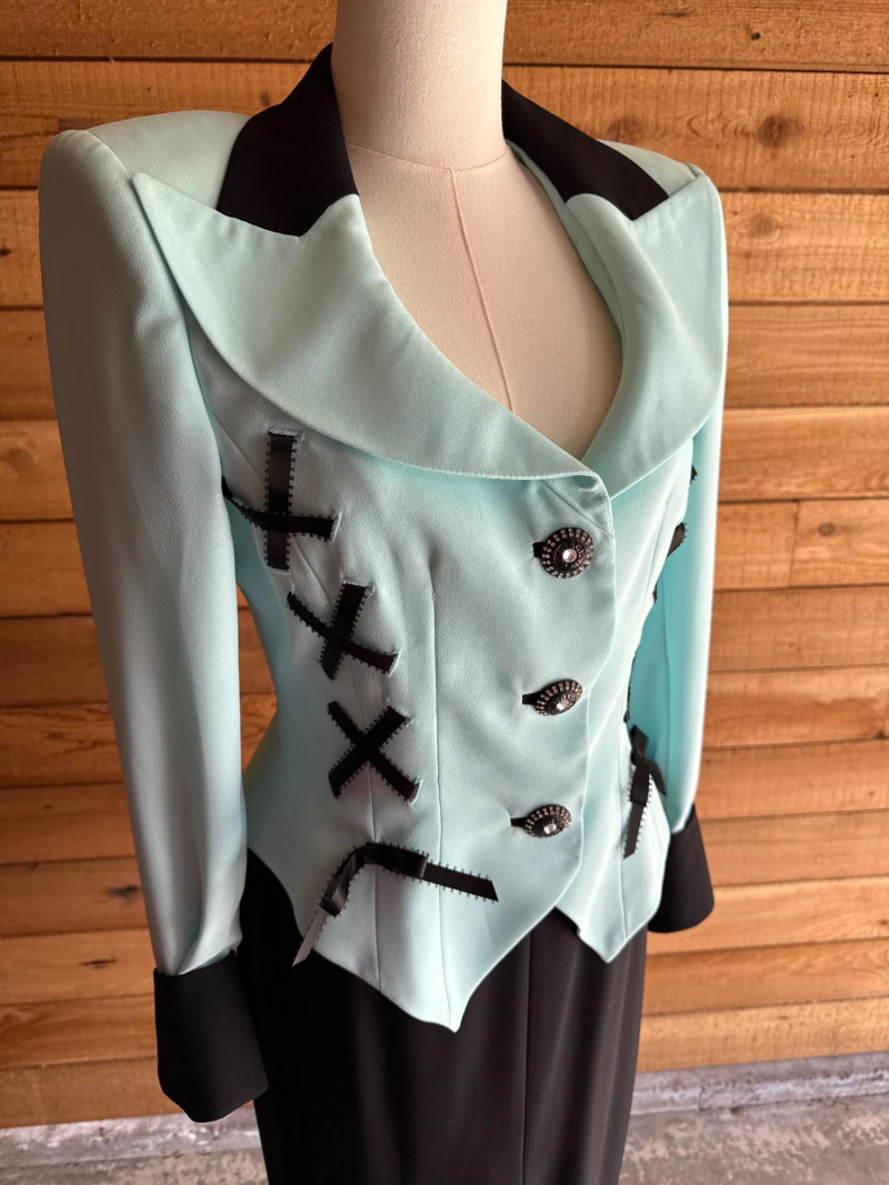 CRISCOINE Vintage Black & Aqua 2pc Skirt Suit- Sz XS