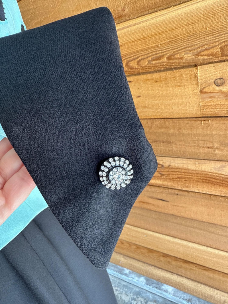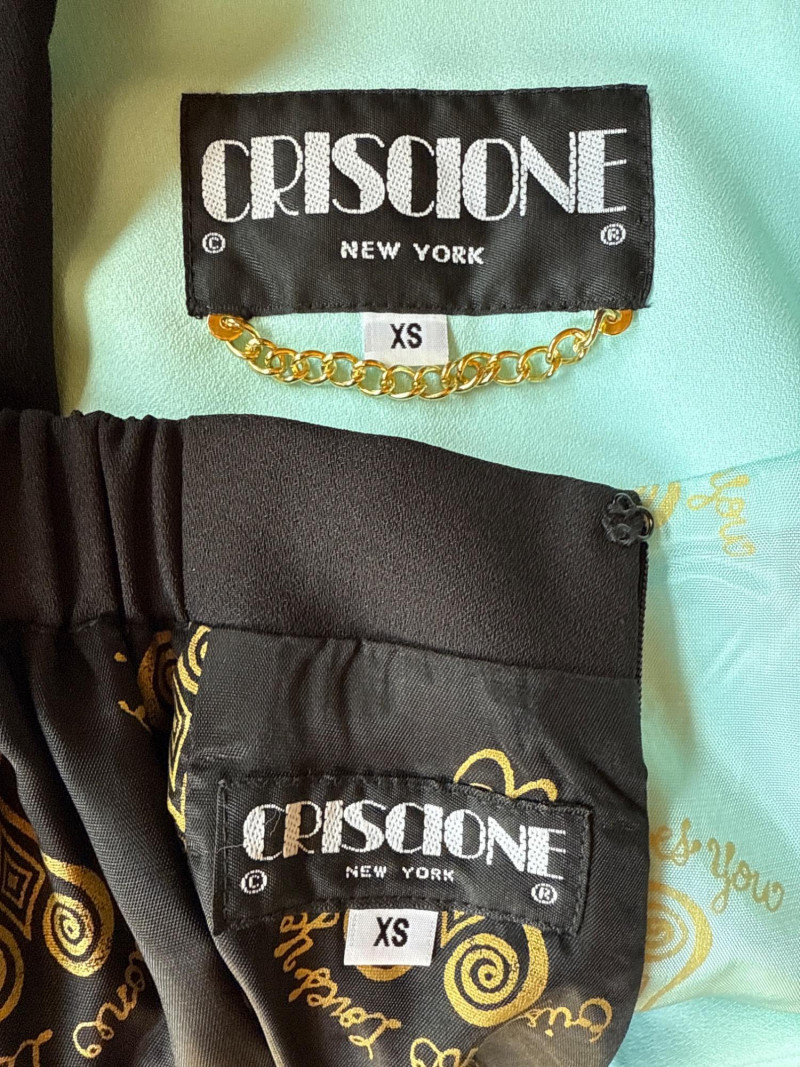 Lot # 156 - CRISCOINE Vintage Black & Aqua 2pc Skirt Suit- Sz XS