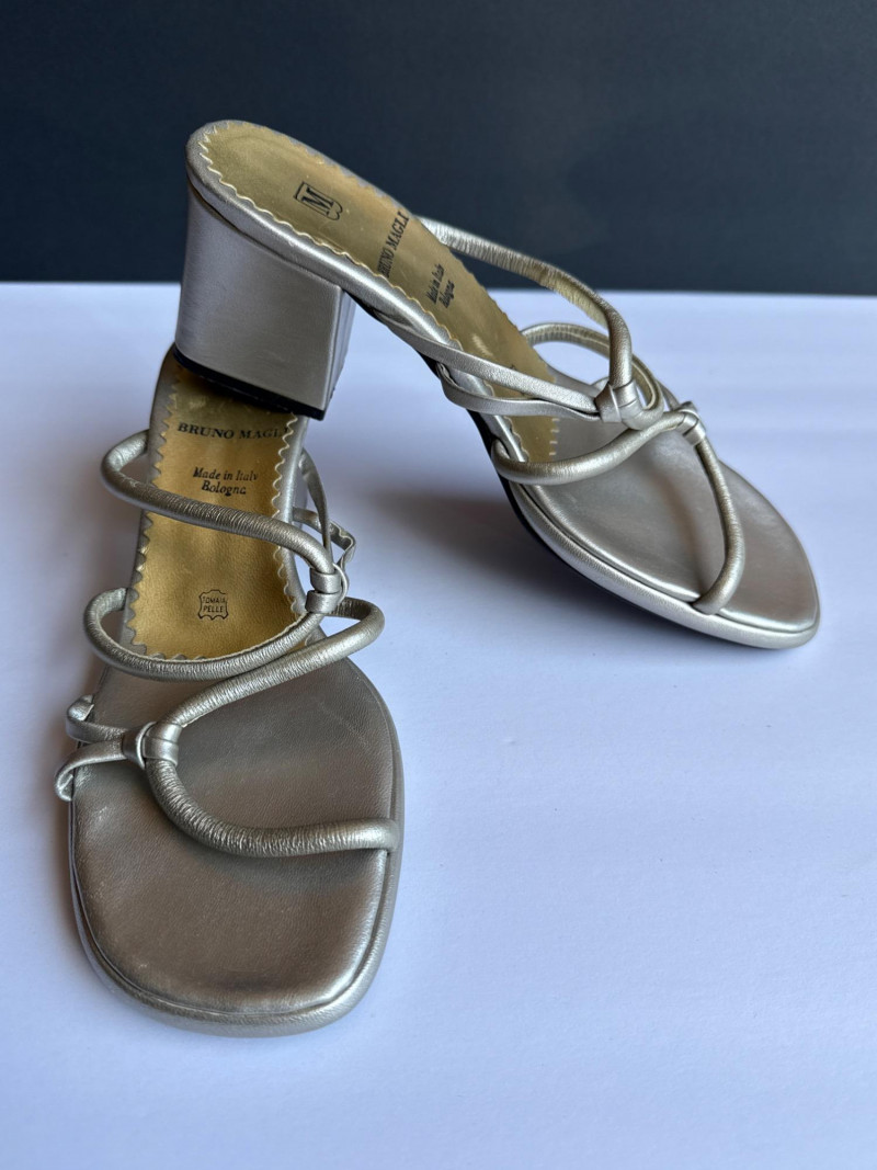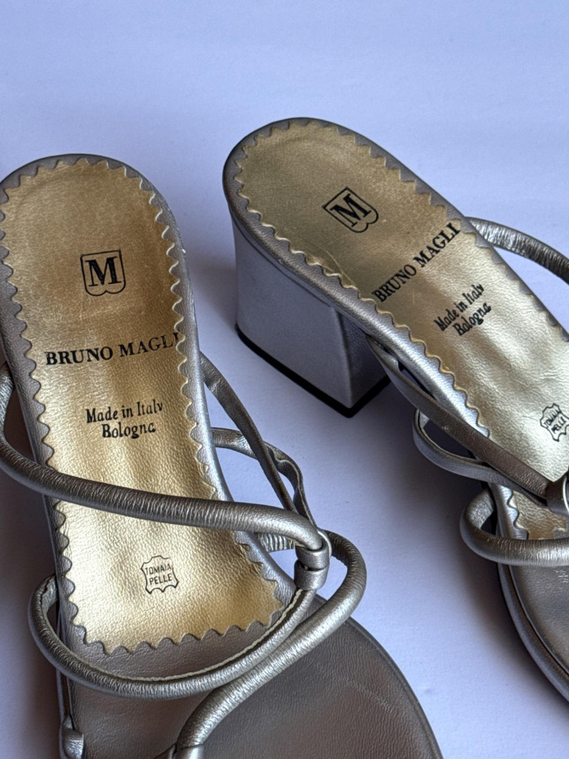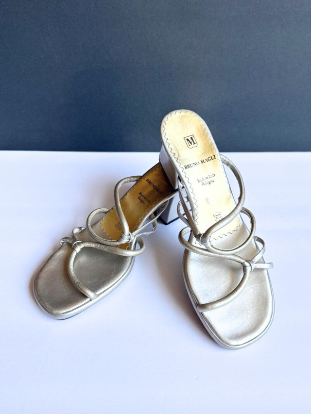 BRUNO MAGLI Silver Leather Sandals- Sz 7.5 *vintage condition, don't appear to have been worn much. Please look closely at the photos for more details.