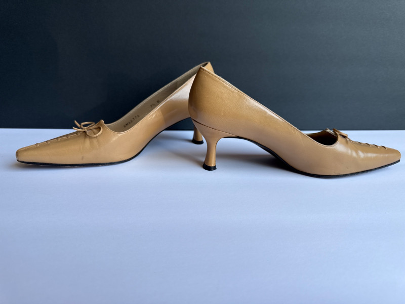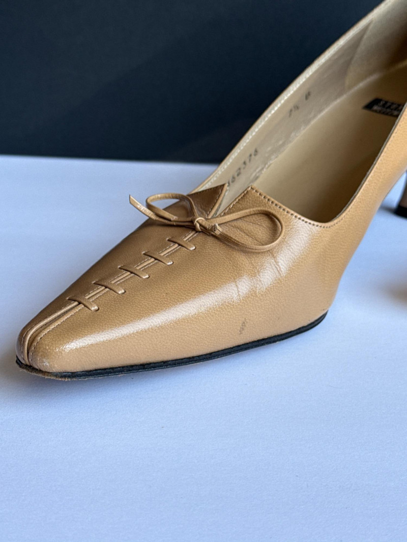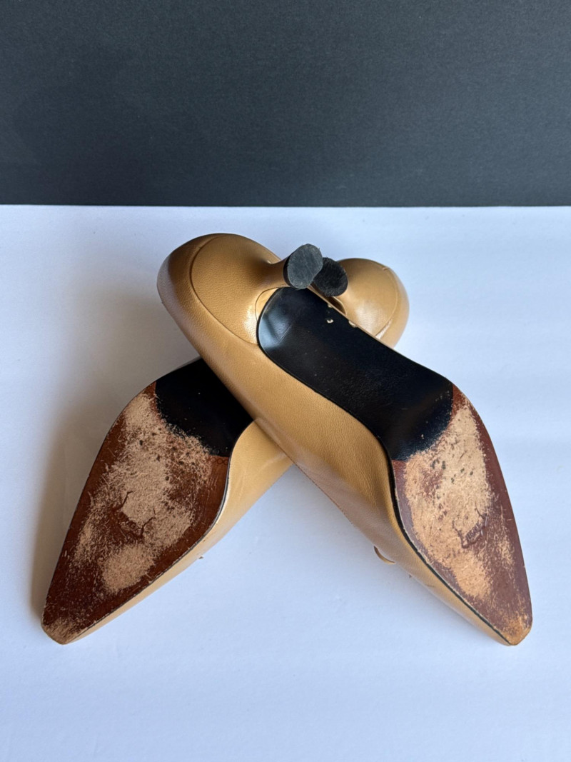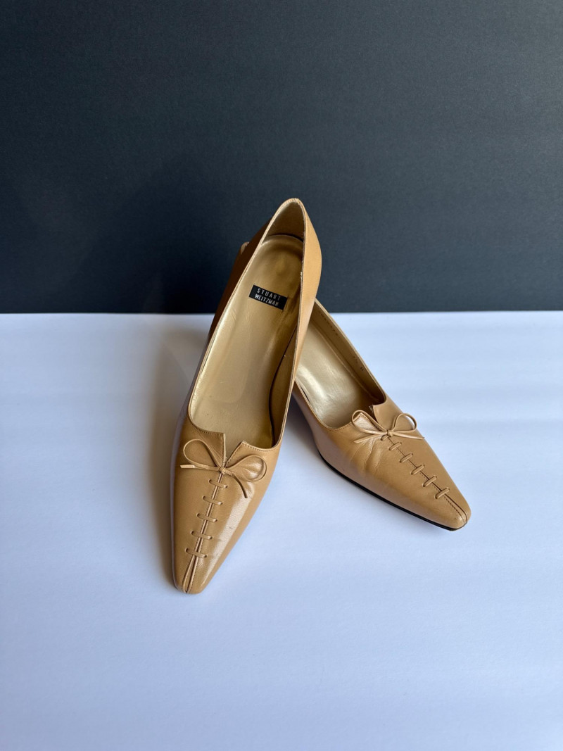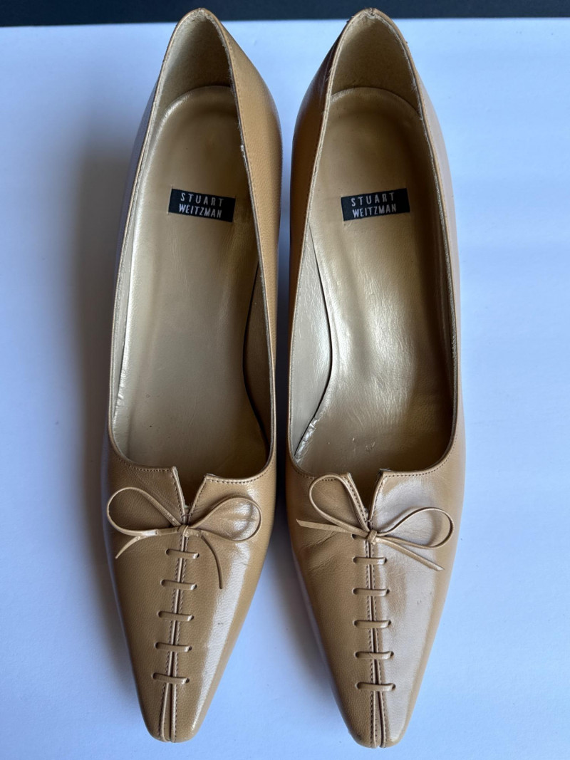 STUART WEITZMAN Tan Leather Heels- Sz 7.5 *gently worn condition, please note photos for more details.