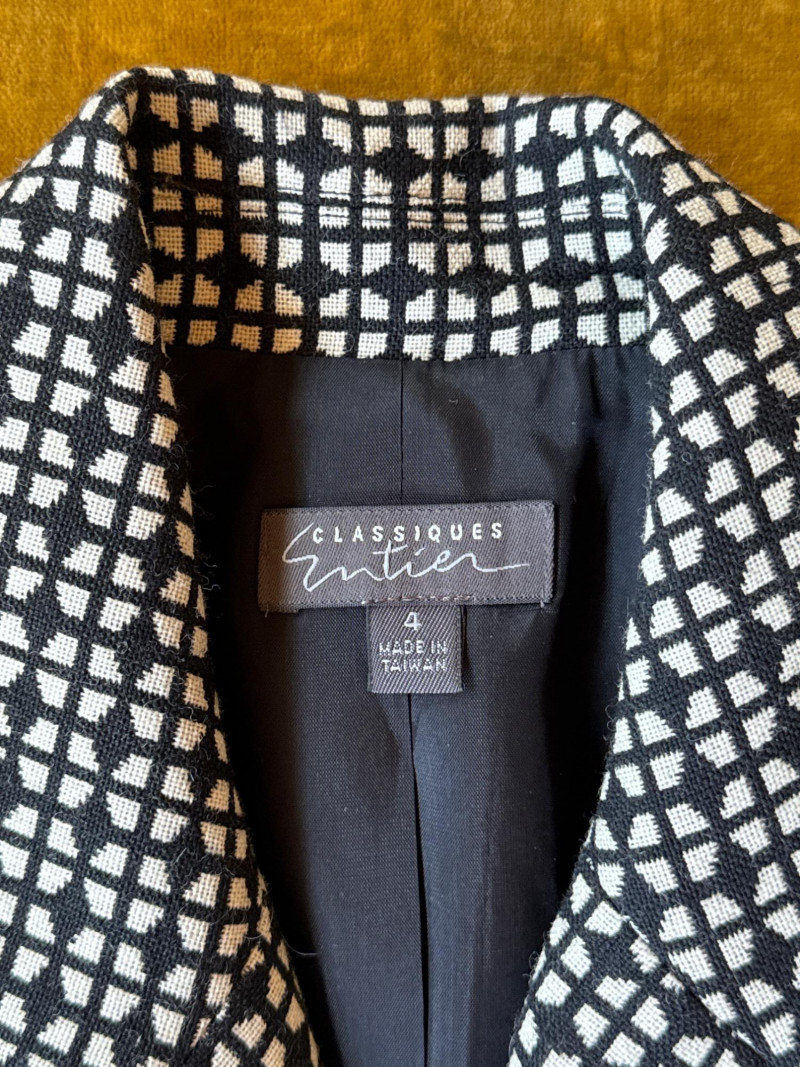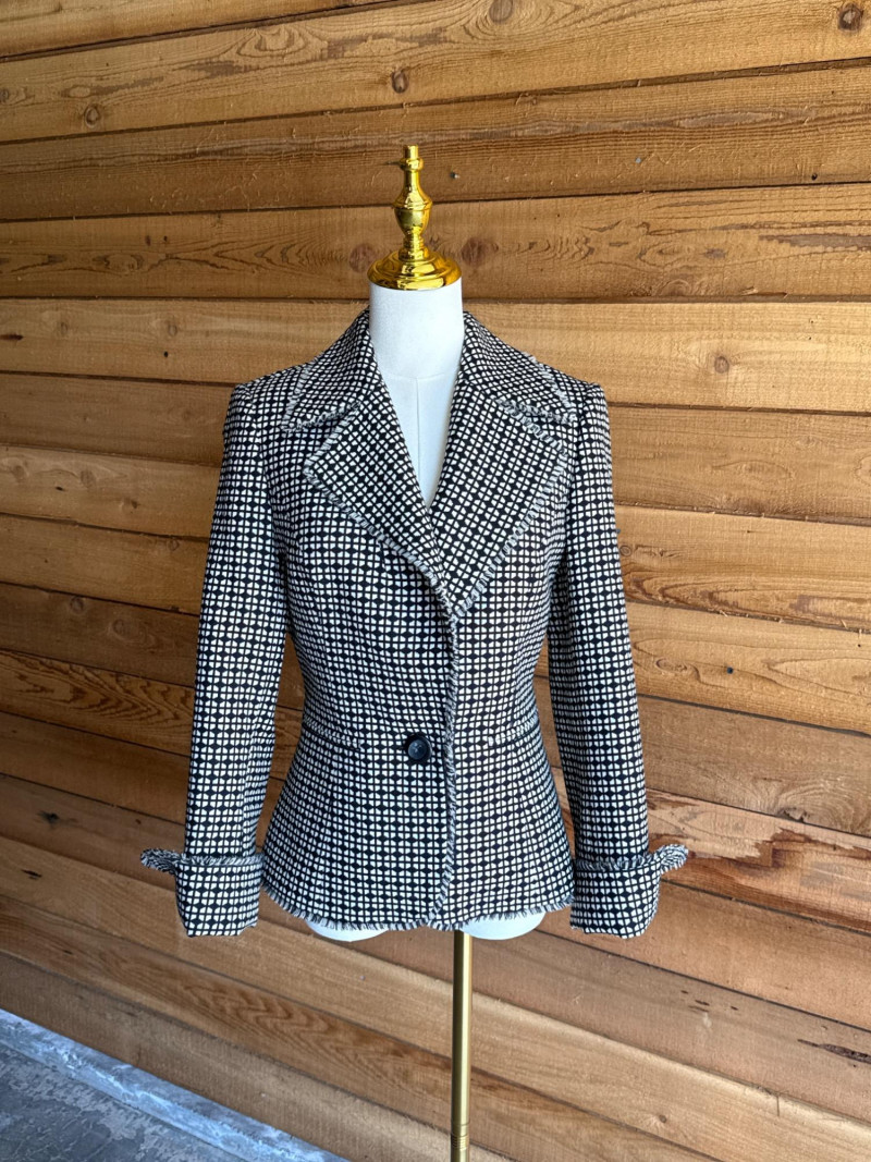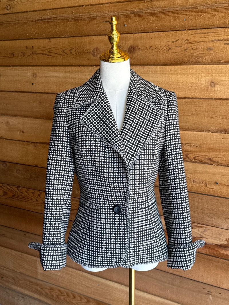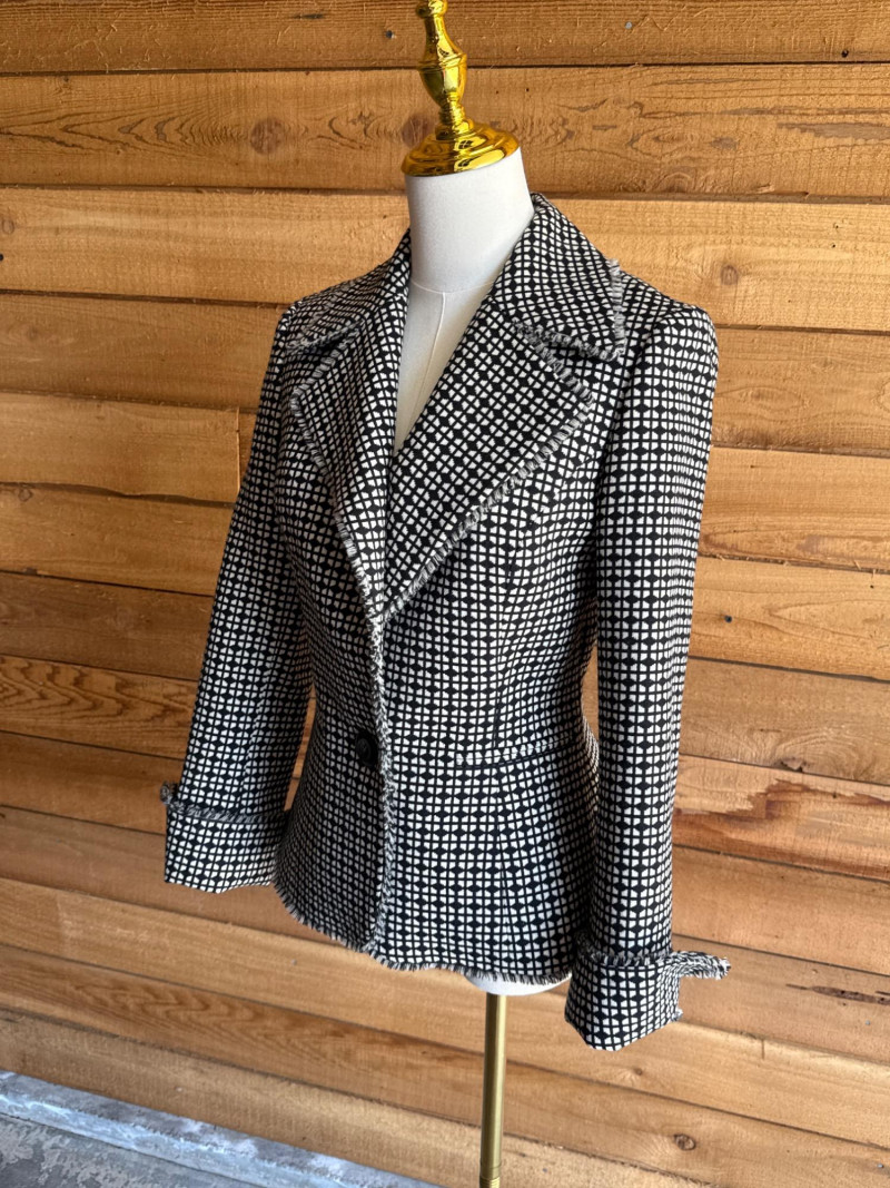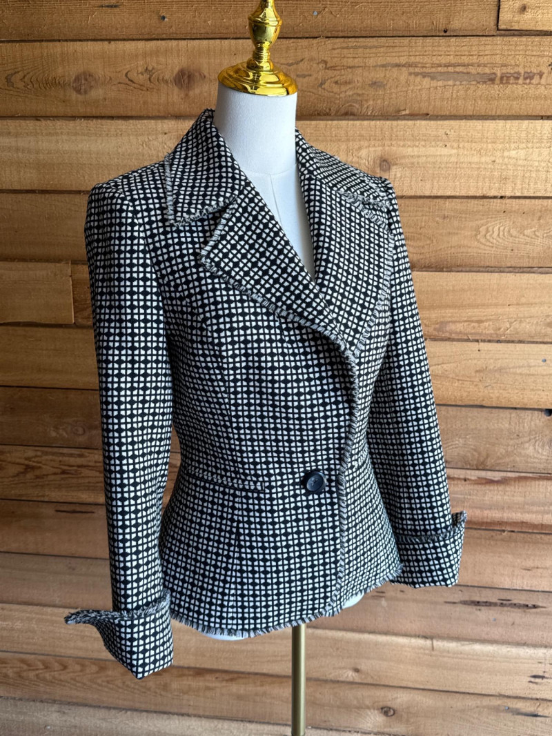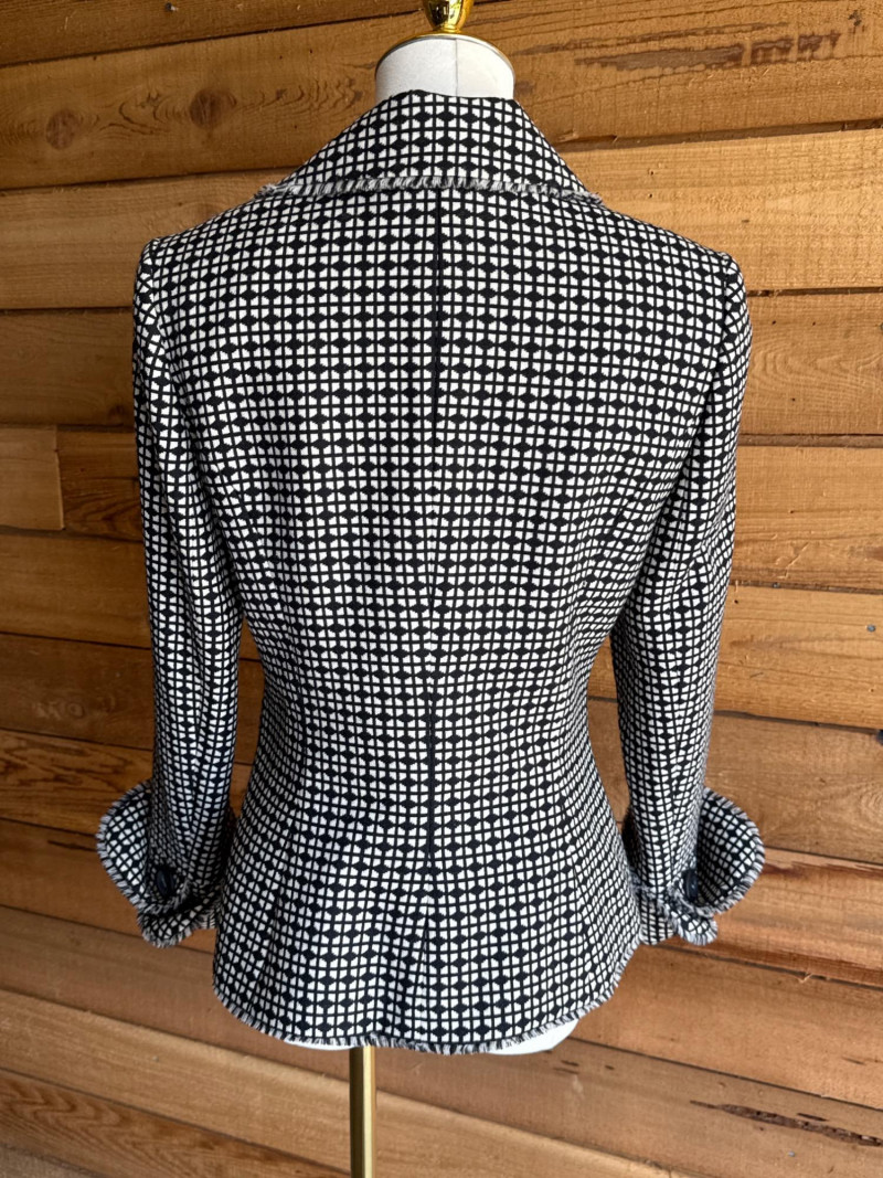CLASSIQUES Black & White Checked Jacket w/ Fringe- Sz 4
