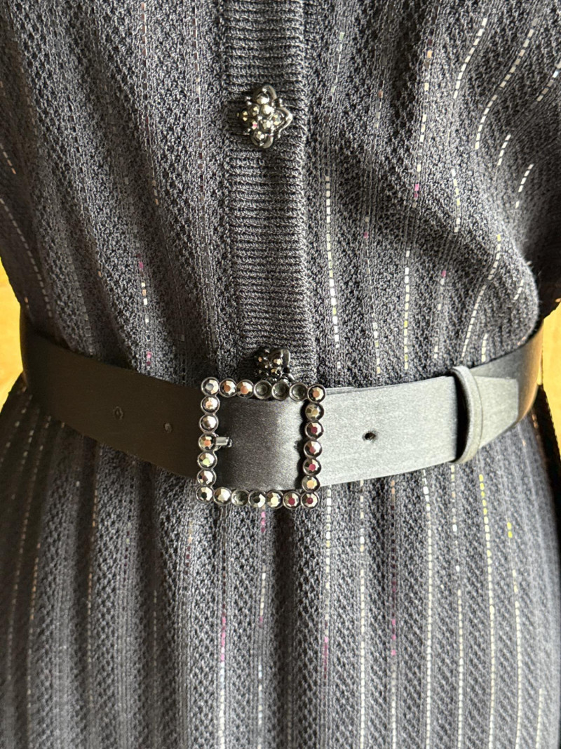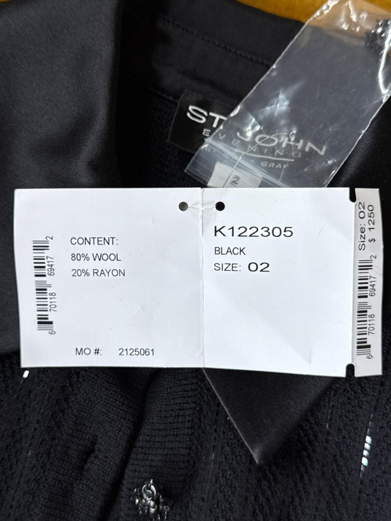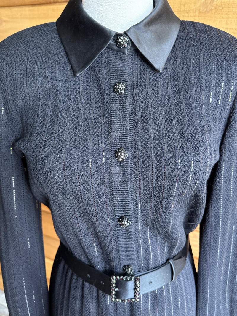 ST JOHN Evening Black Dress w/ Belt *NWT $1250- Sz 2 *some of the black gems appear to be missing from belt buckle