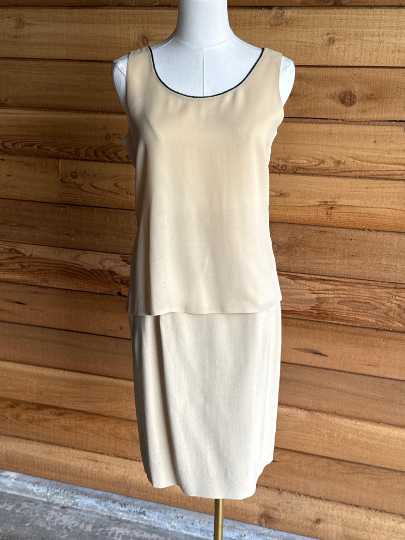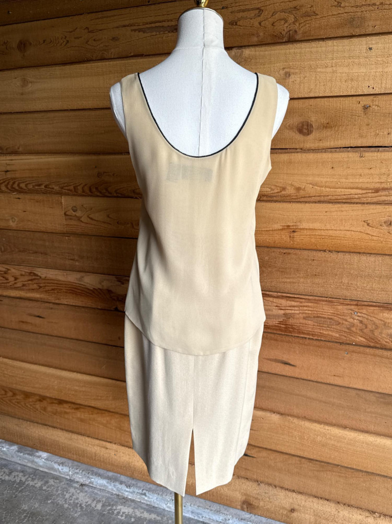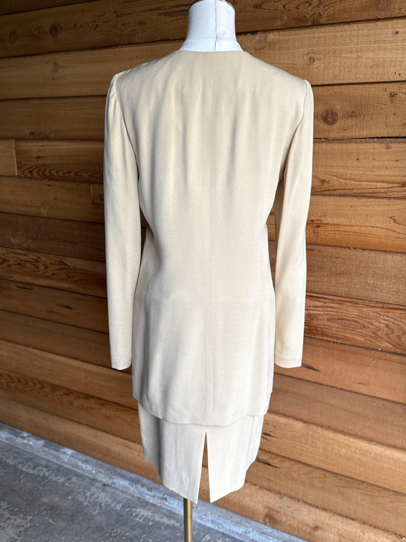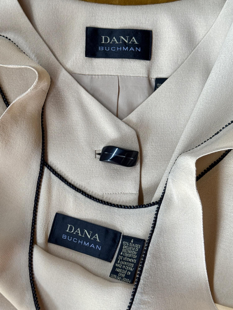 DANA BUCHMAN Beige Silk 4pc Set -Sz 4 Skirt, Camisole/Shell, Jacket, Dress Slacks *gently worn, vintage condition. Please note photos carefully for more details