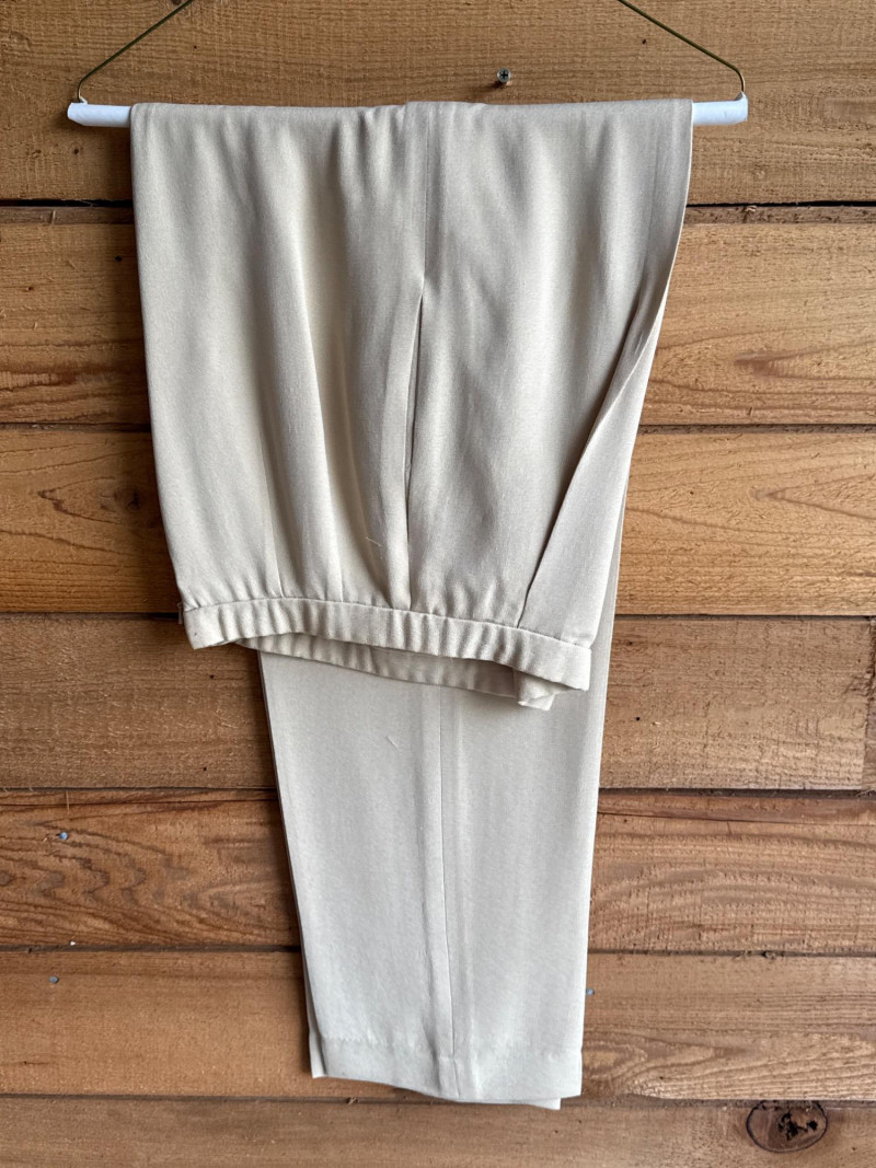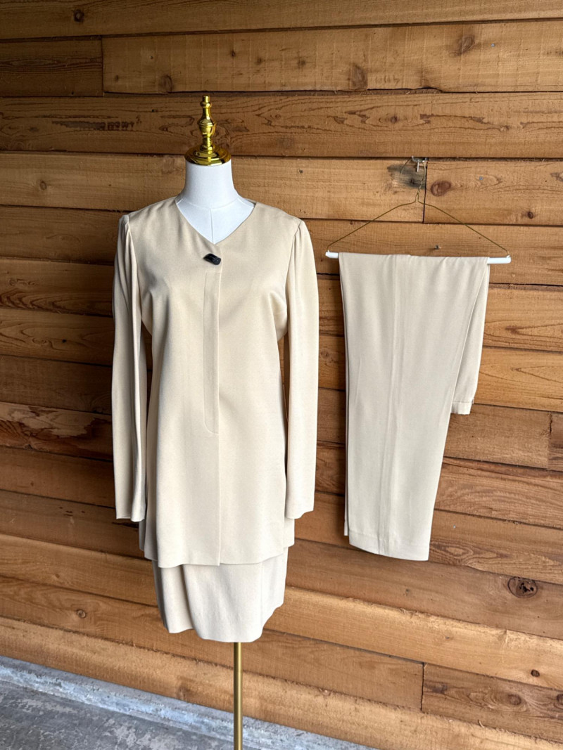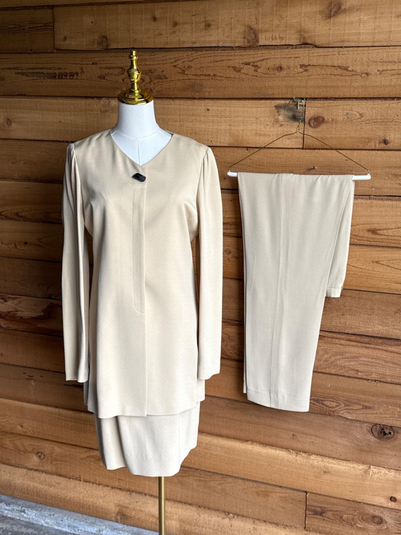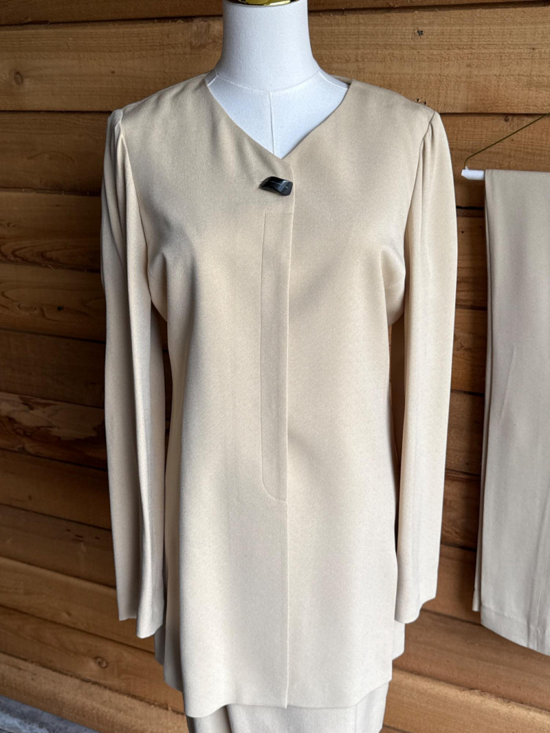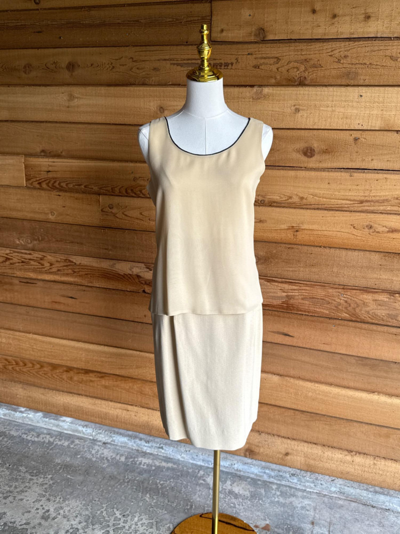 DANA BUCHMAN Beige Silk 4pc Set -Sz 4 Skirt, Camisole/Shell, Jacket, Dress Slacks *gently worn, vintage condition. Please note photos carefully for more details