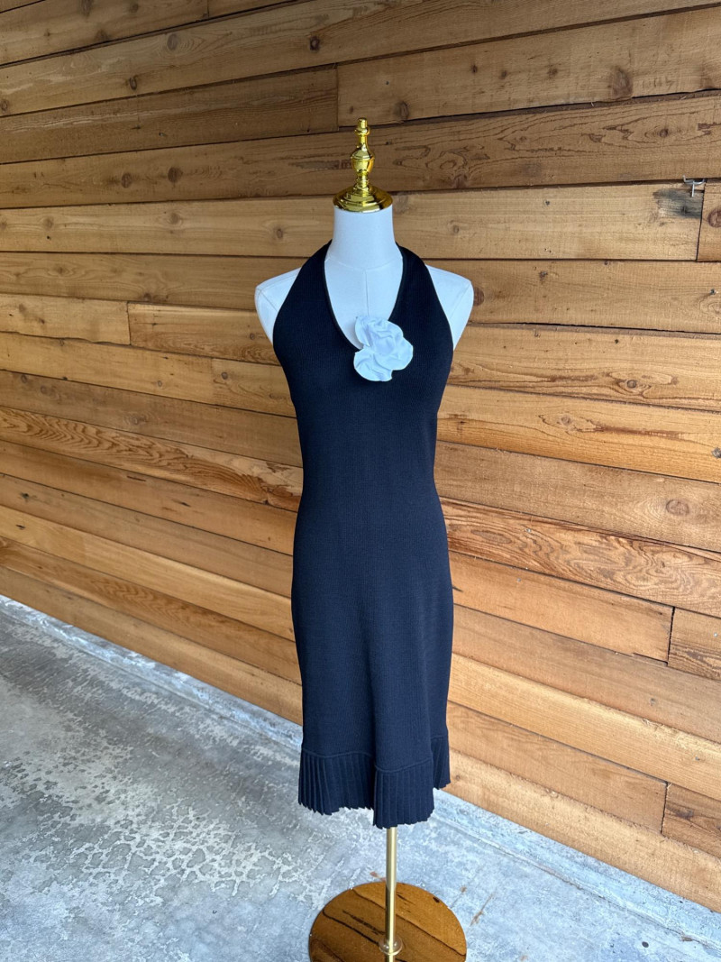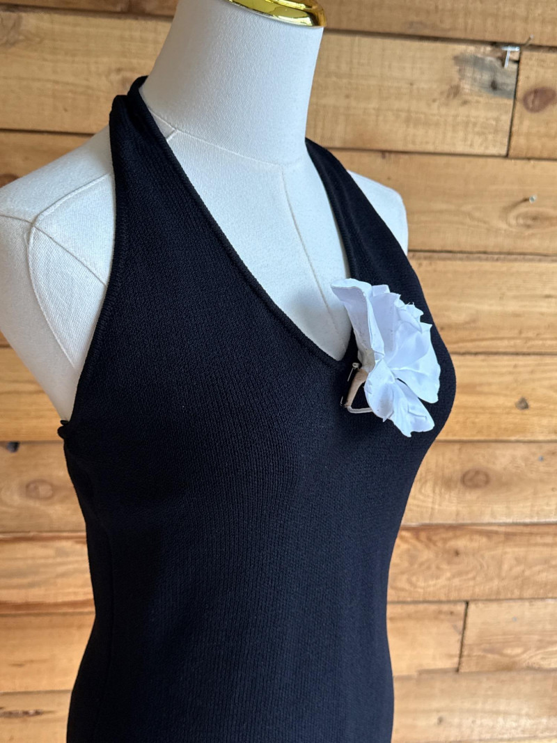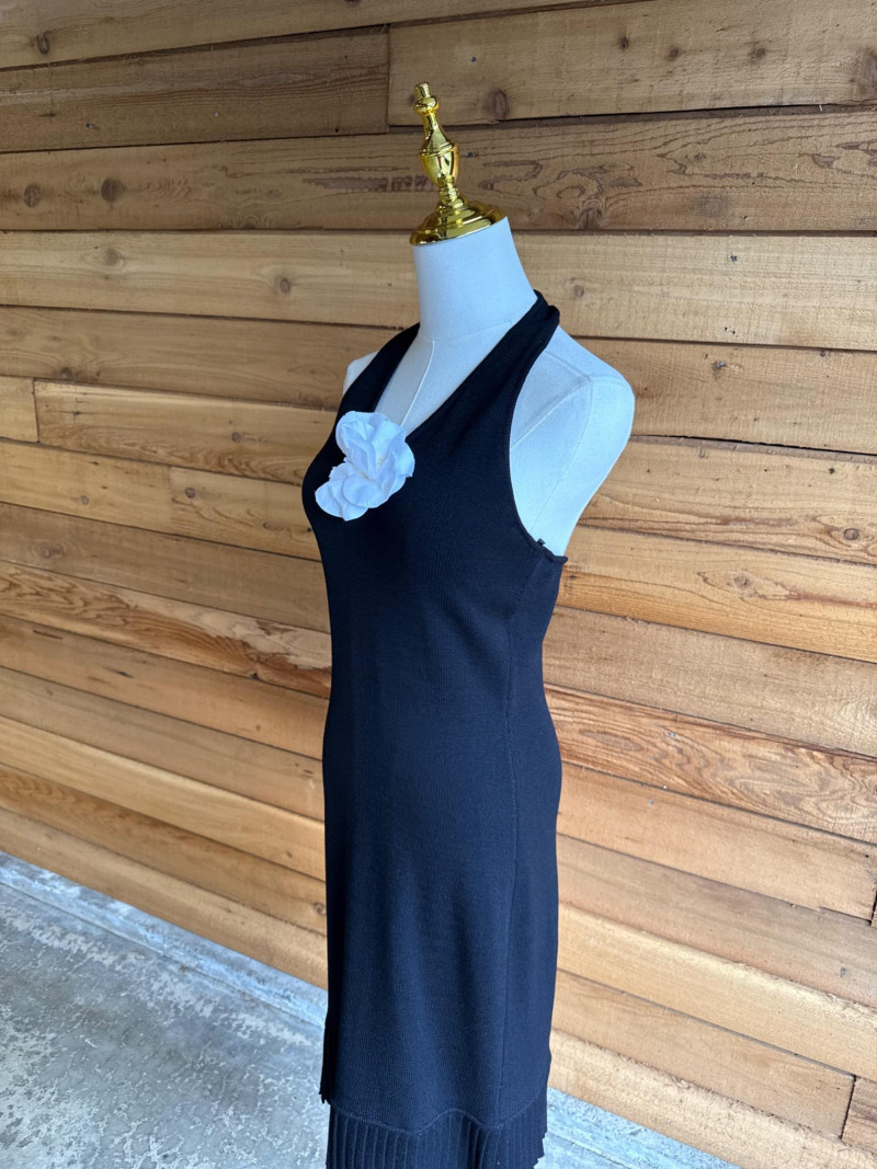 ST JOHN Black Pleated Knit Halter Dress *NWT $795- Sz 2