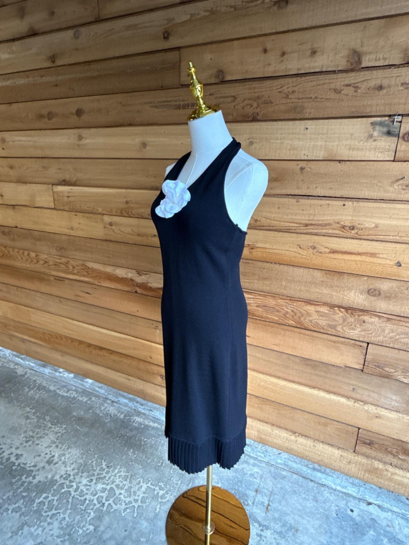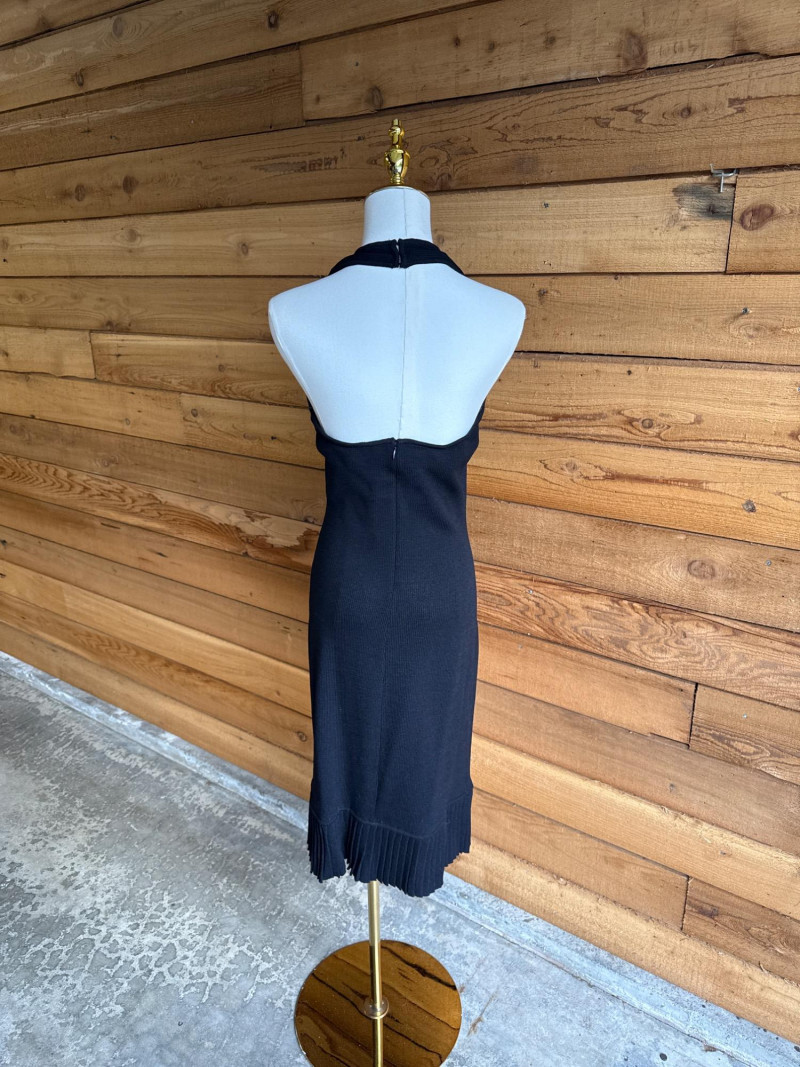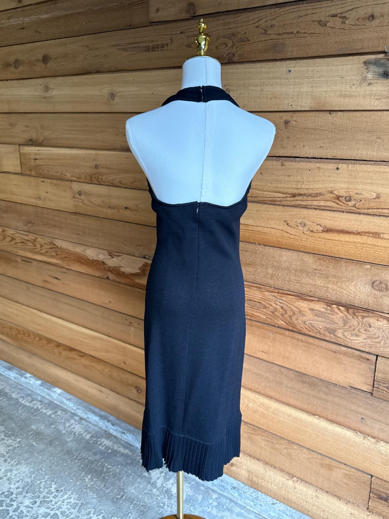 Lot # 18 - ST JOHN Black Pleated Knit Halter Dress *NWT $795- Sz 2